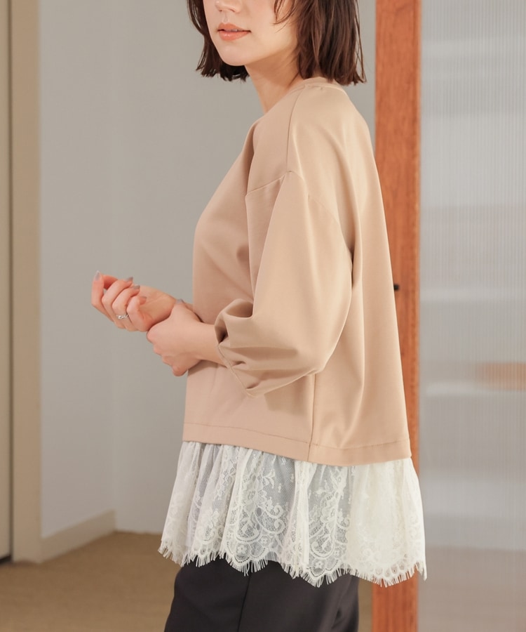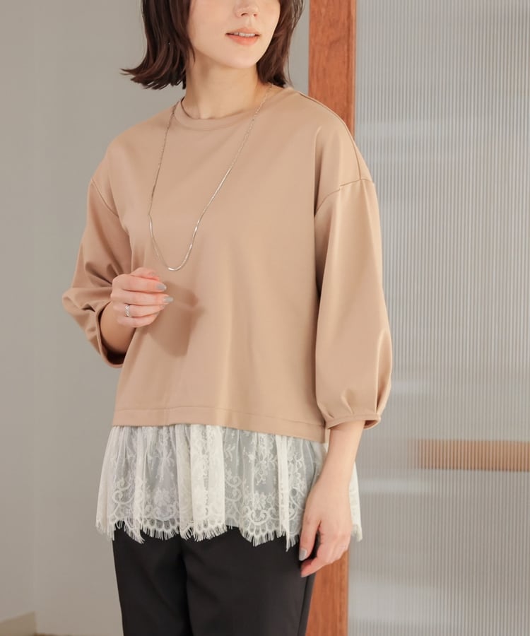 7分袖レースレイヤードトップス