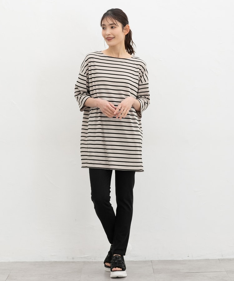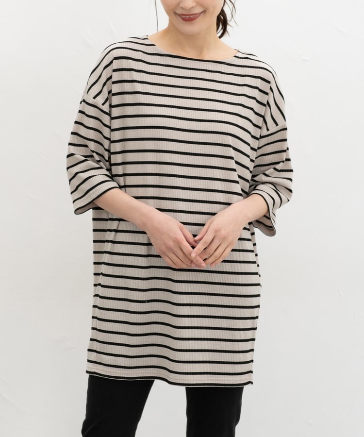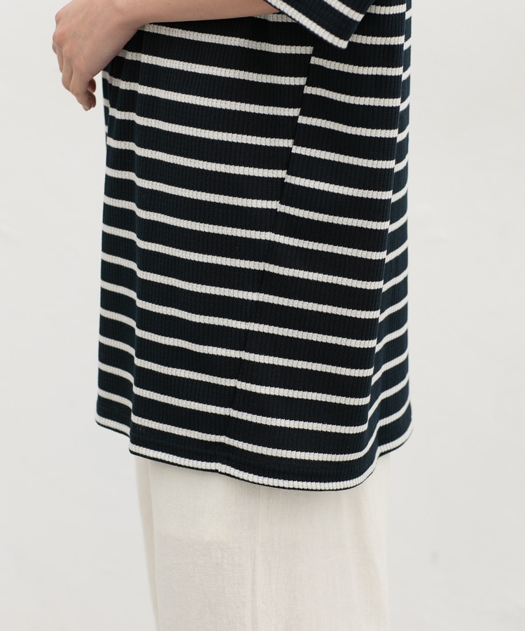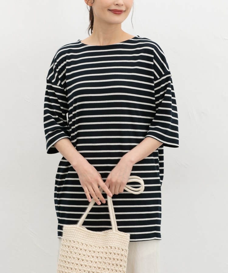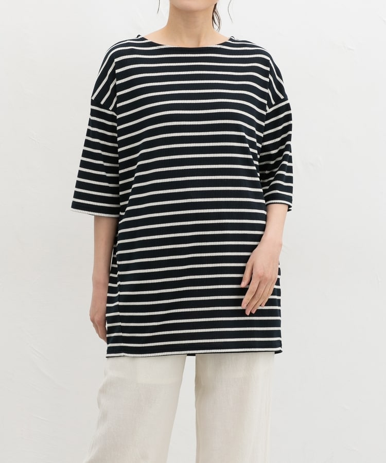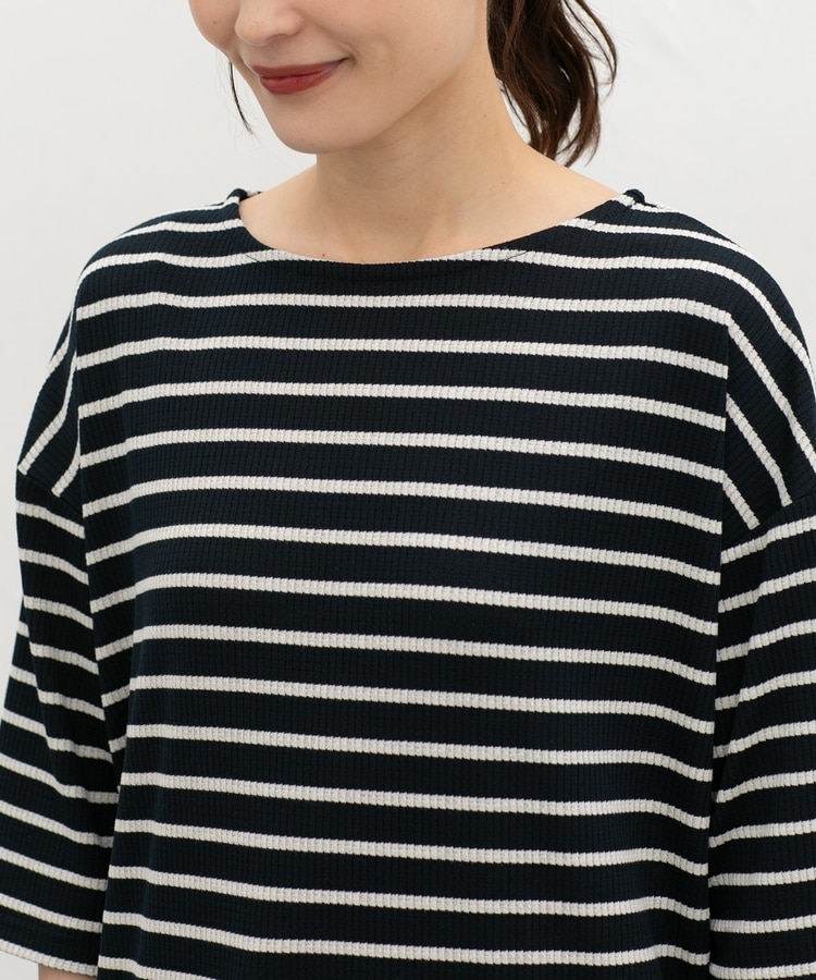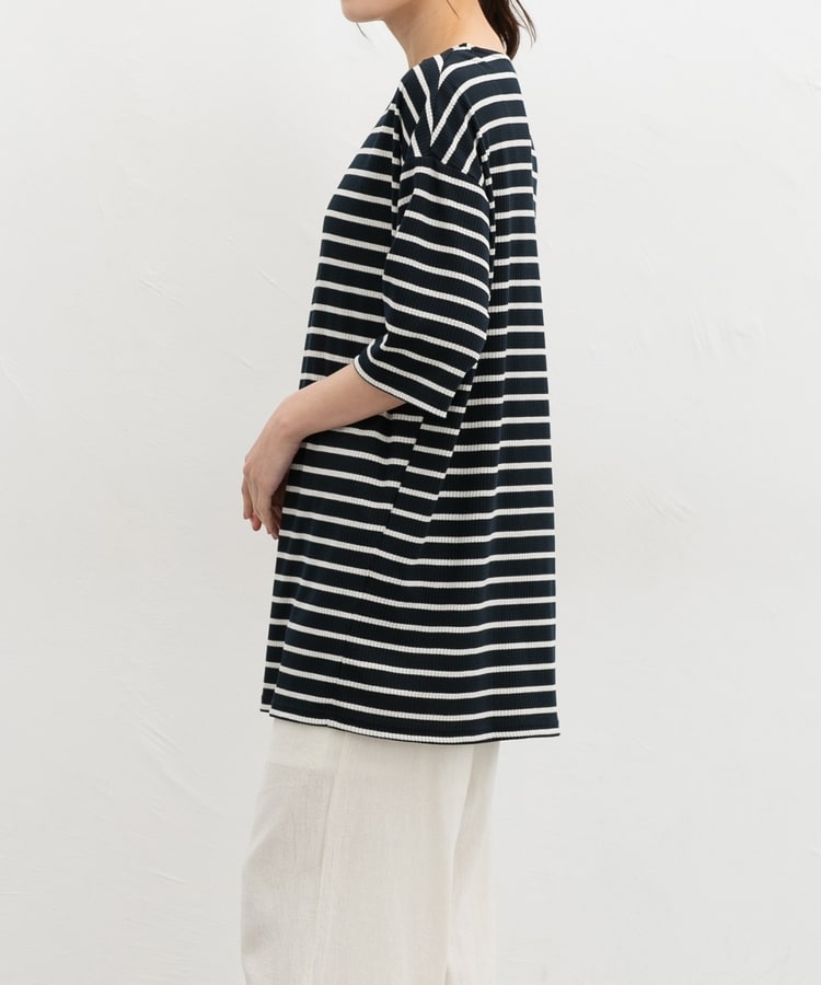 ストレッチの利いた、柔らかで表面感のあるレーヨン混ワッフル素材。