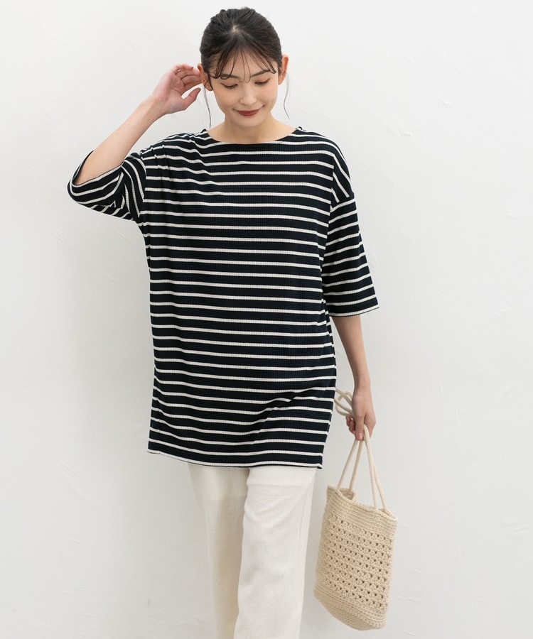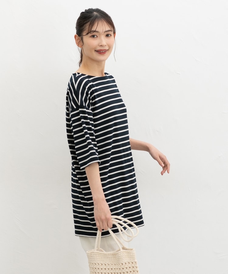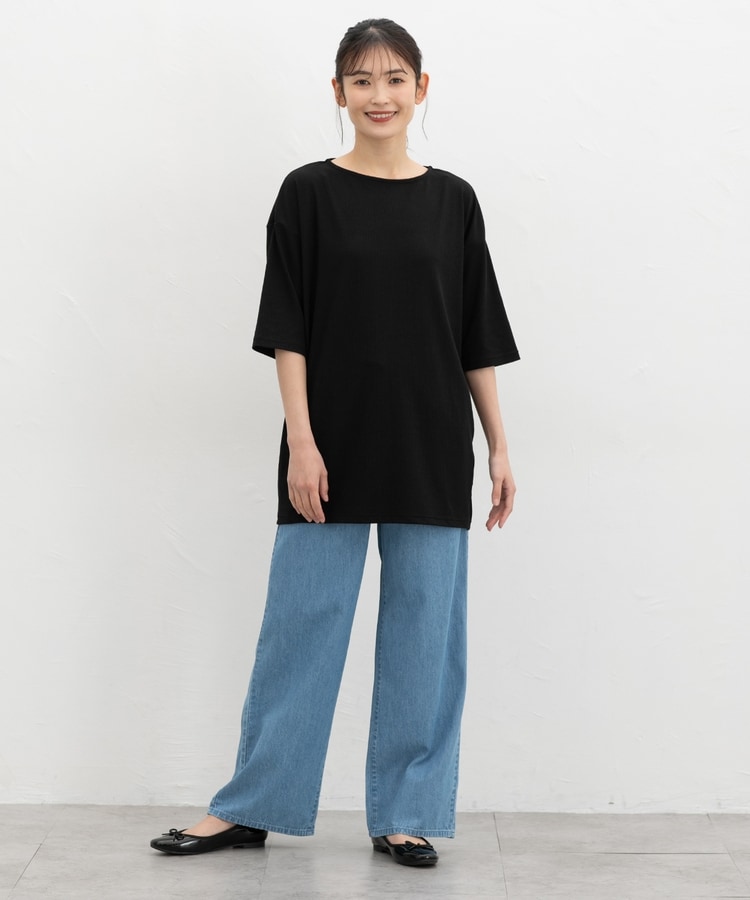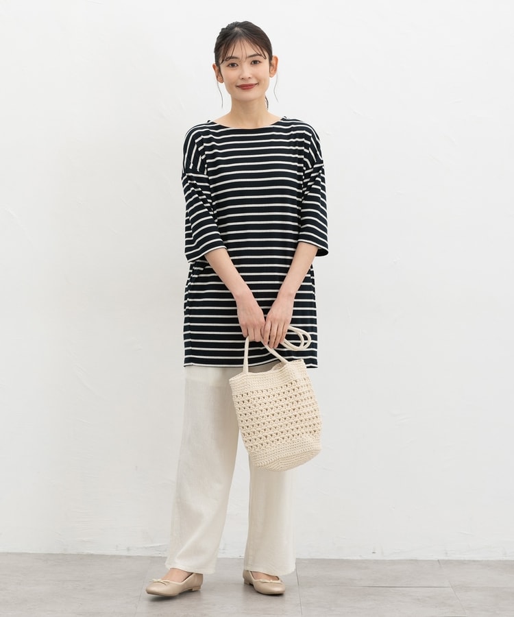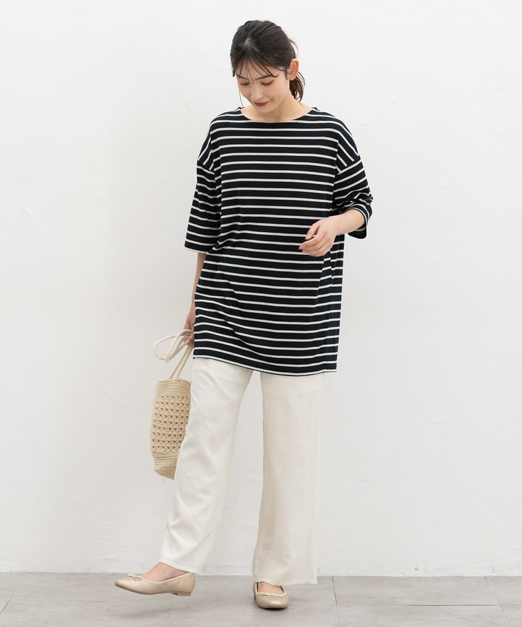 ゆったりした幅と前寄りの絶妙なサイドラインで気になる体型もカバー。