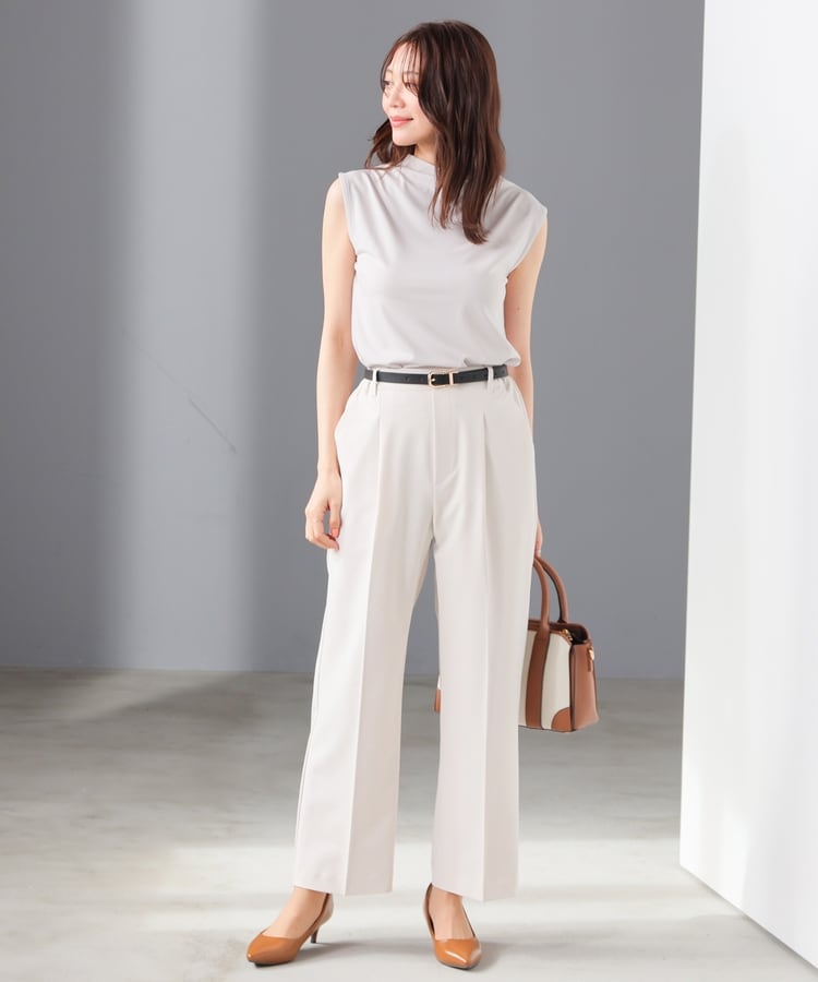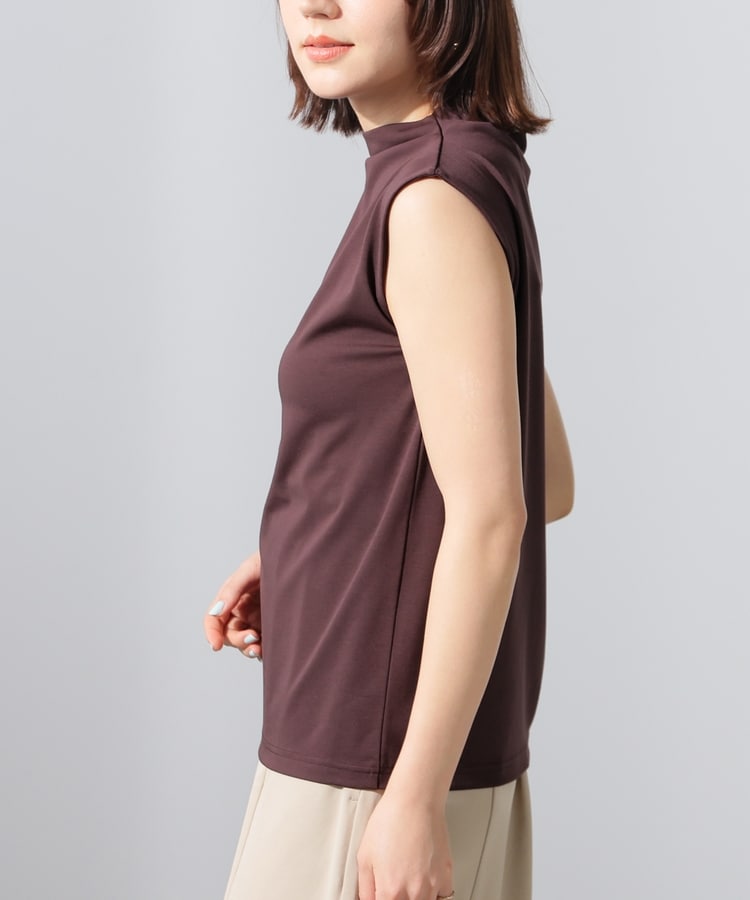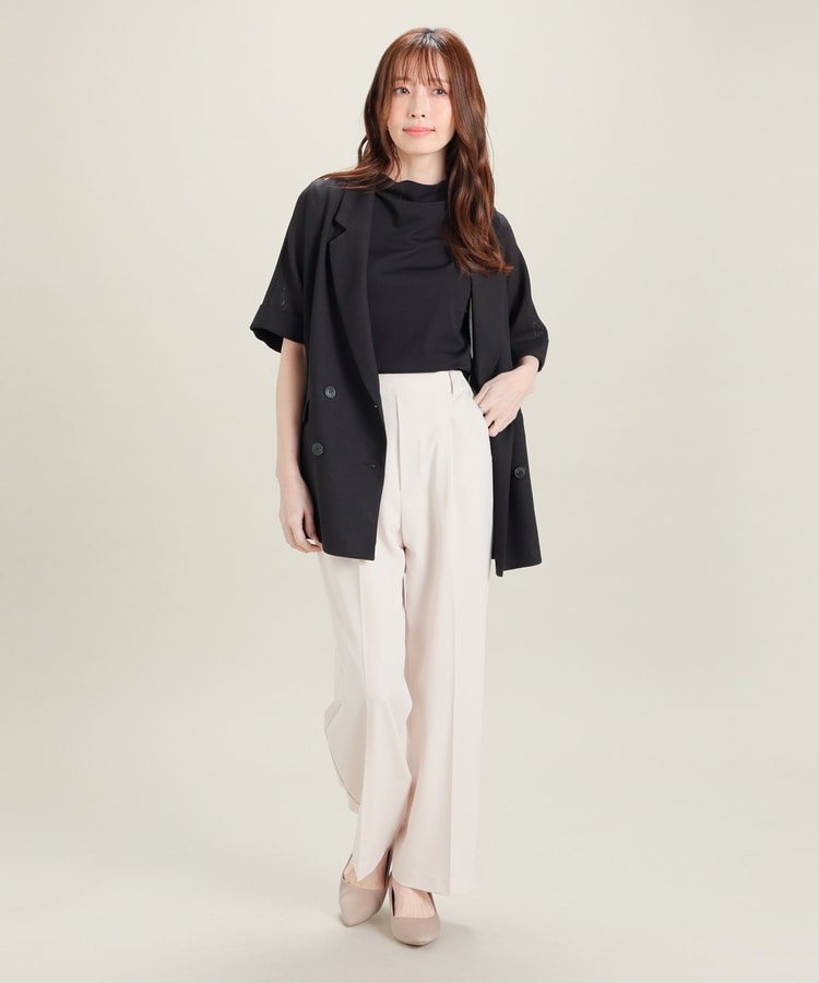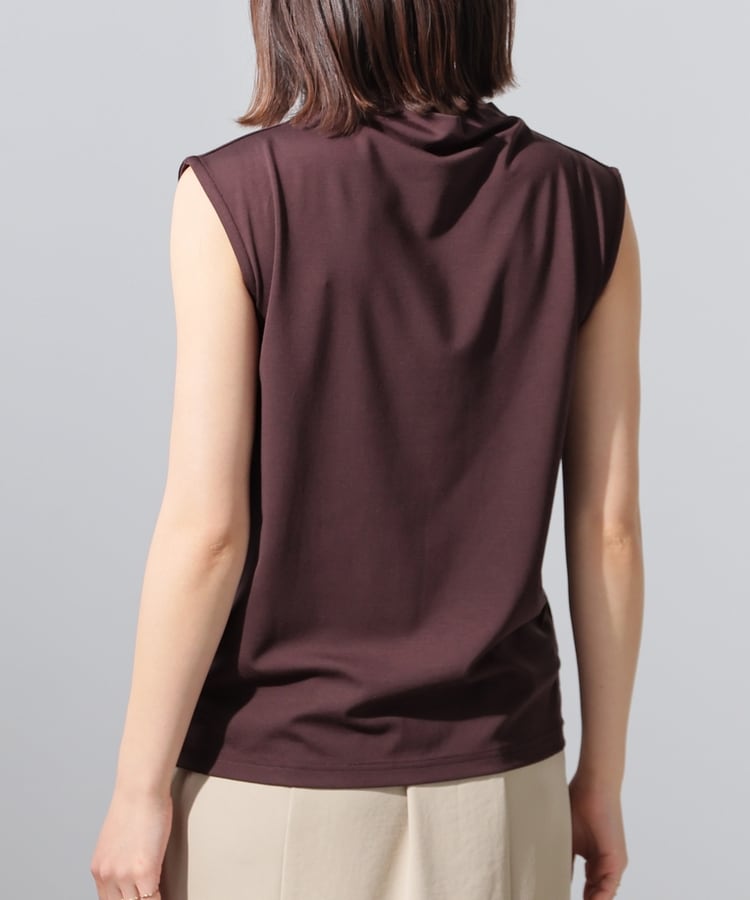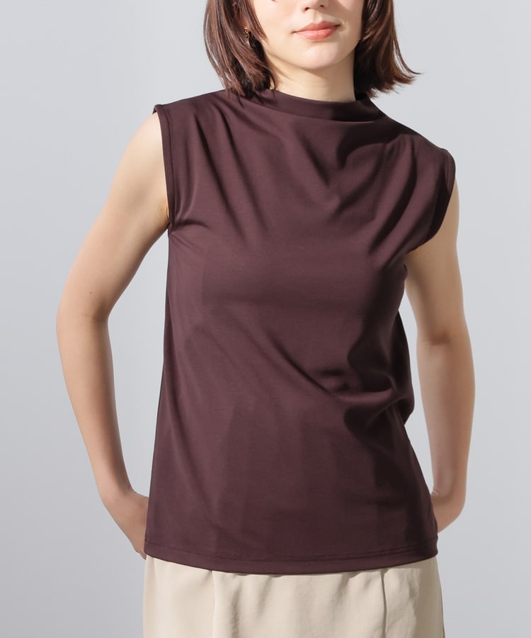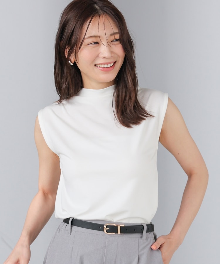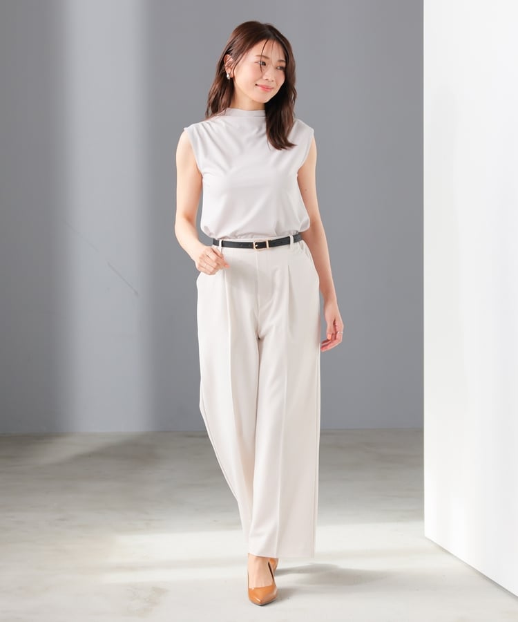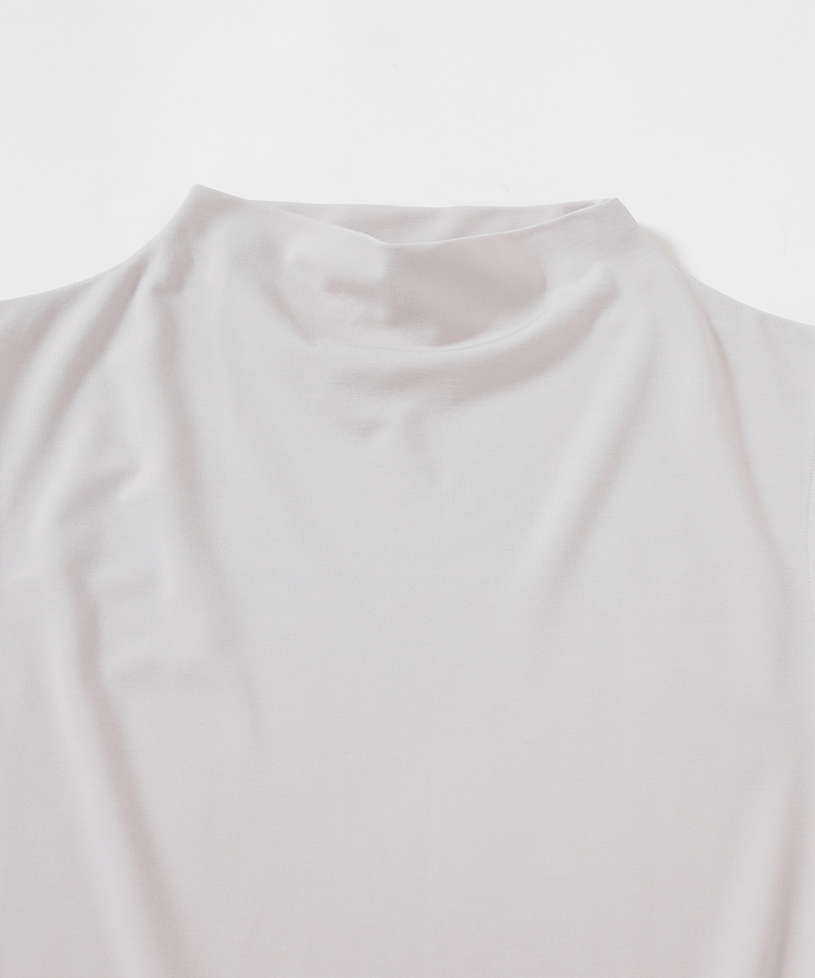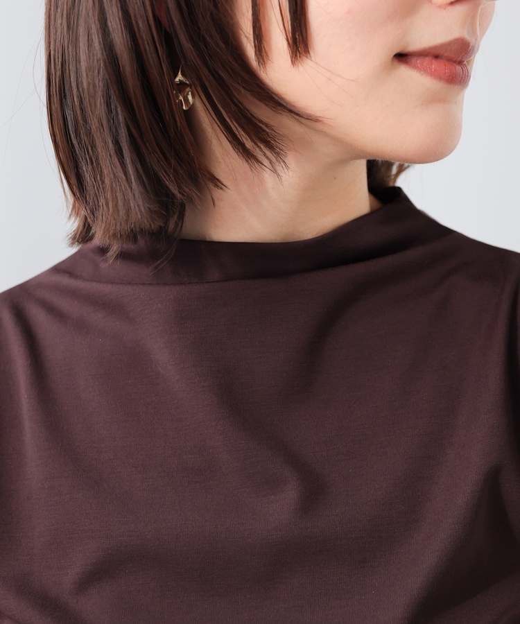 ストレッチの利いた、きれいな表面感で滑らかな肌触りのレーヨン混ポンチ素材で、カットソーながらカジュアル感を抑えお仕事着としても使用可能。