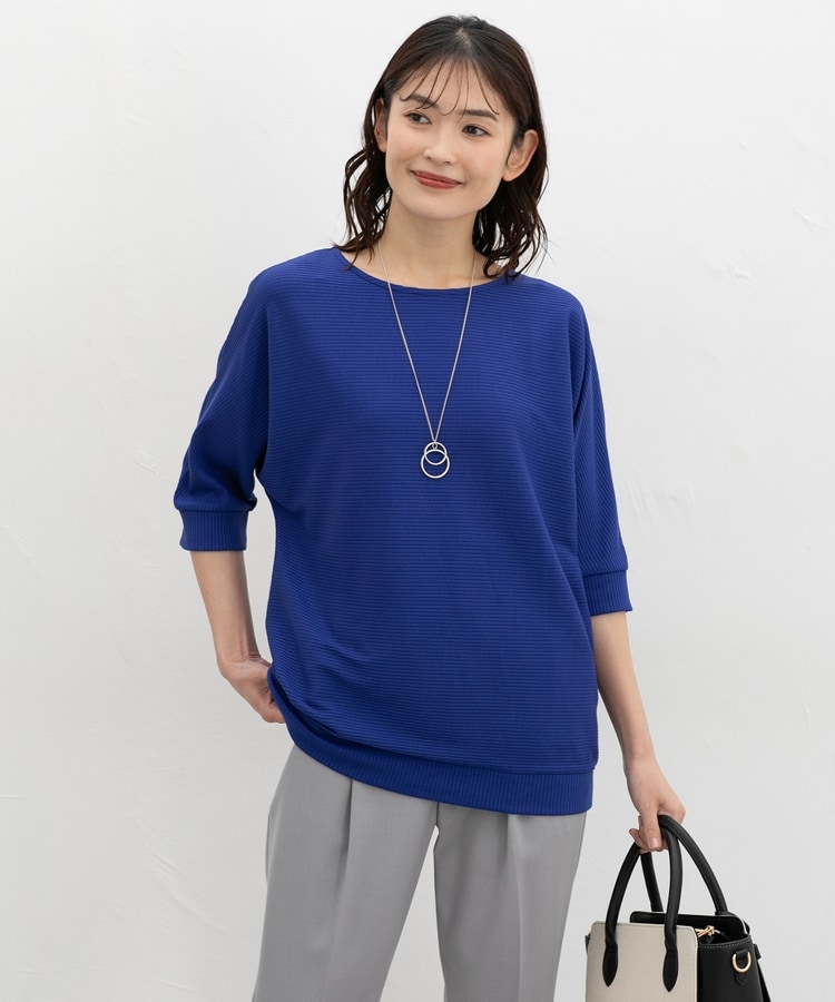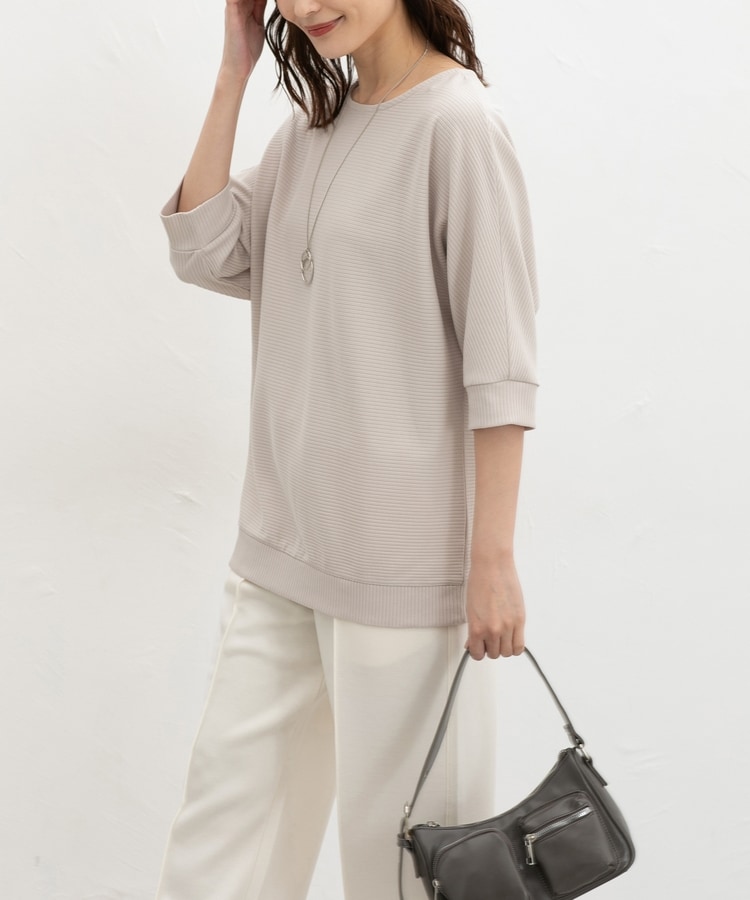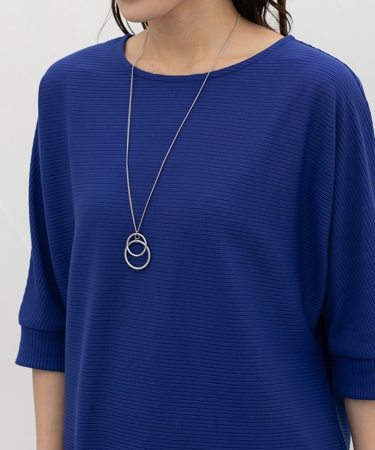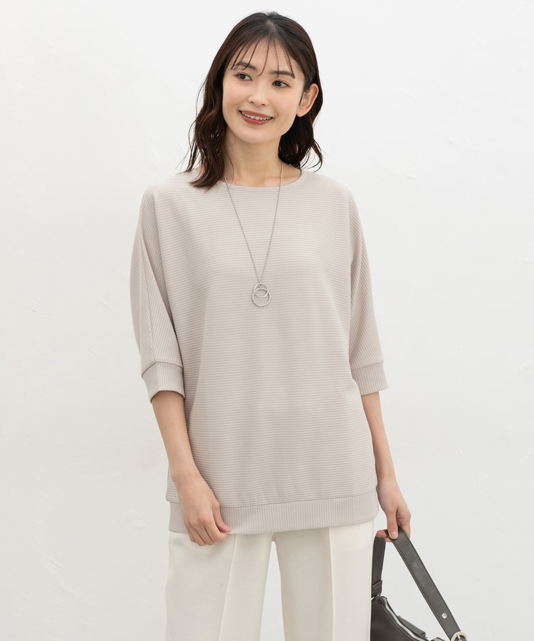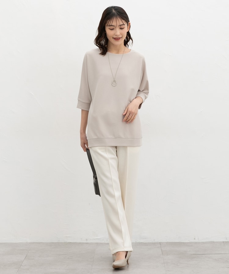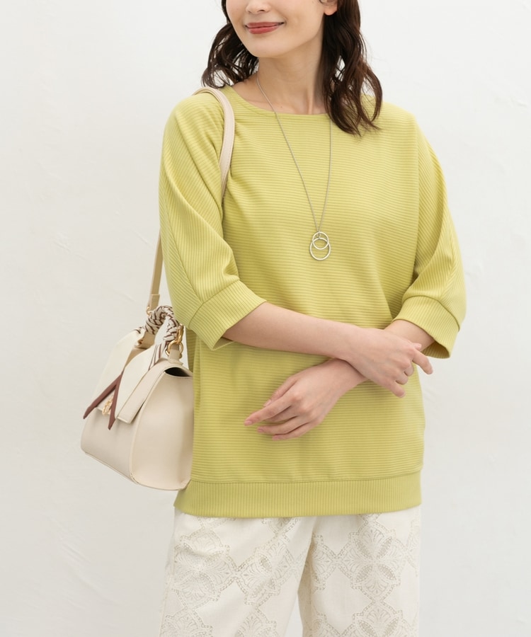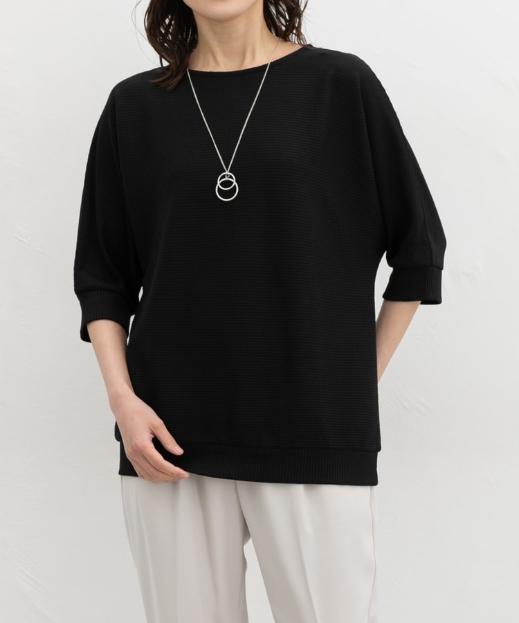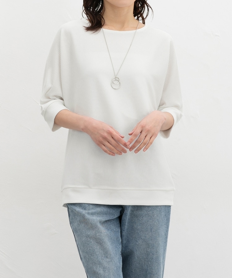 二の腕をカバーするドルマンスリーブのゆるシルエットがフェミニンなデザイン。