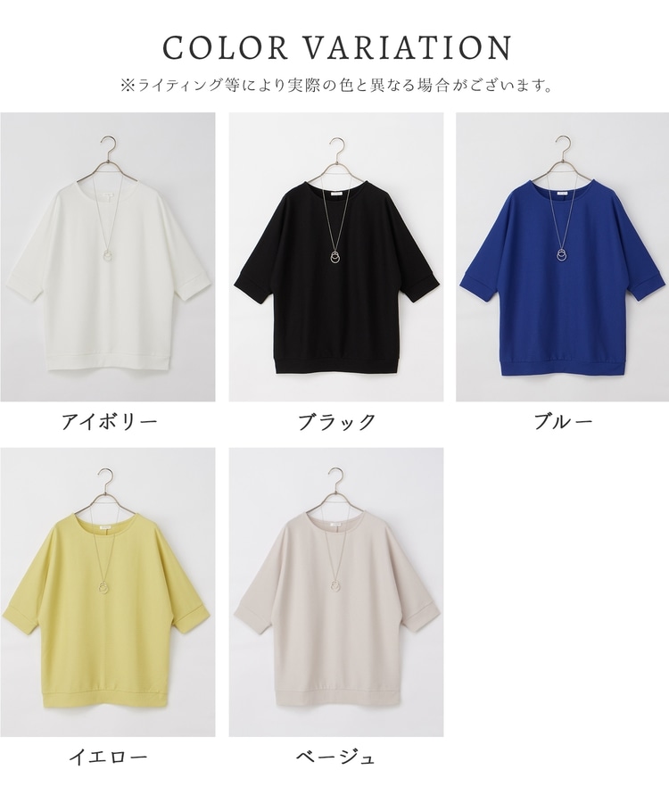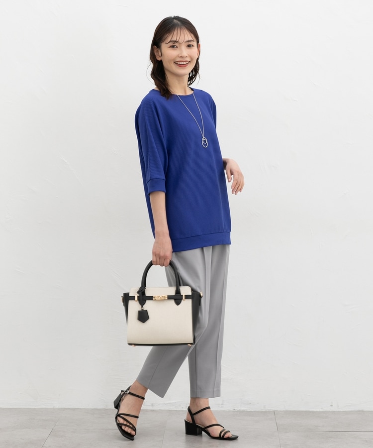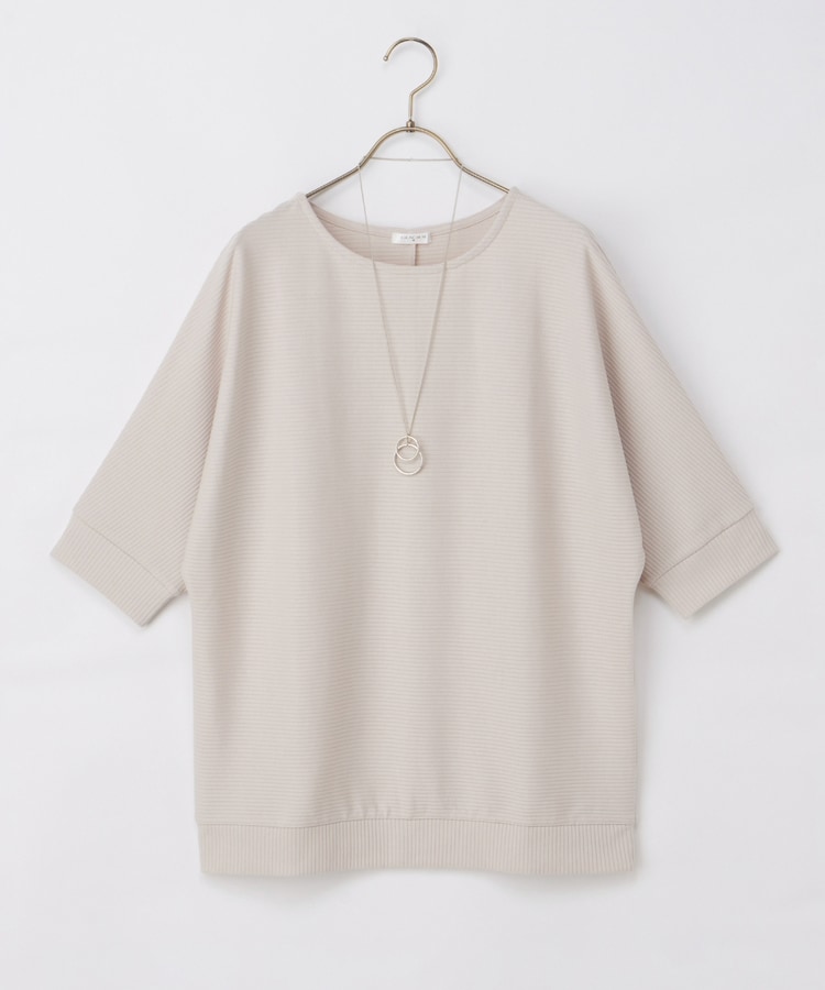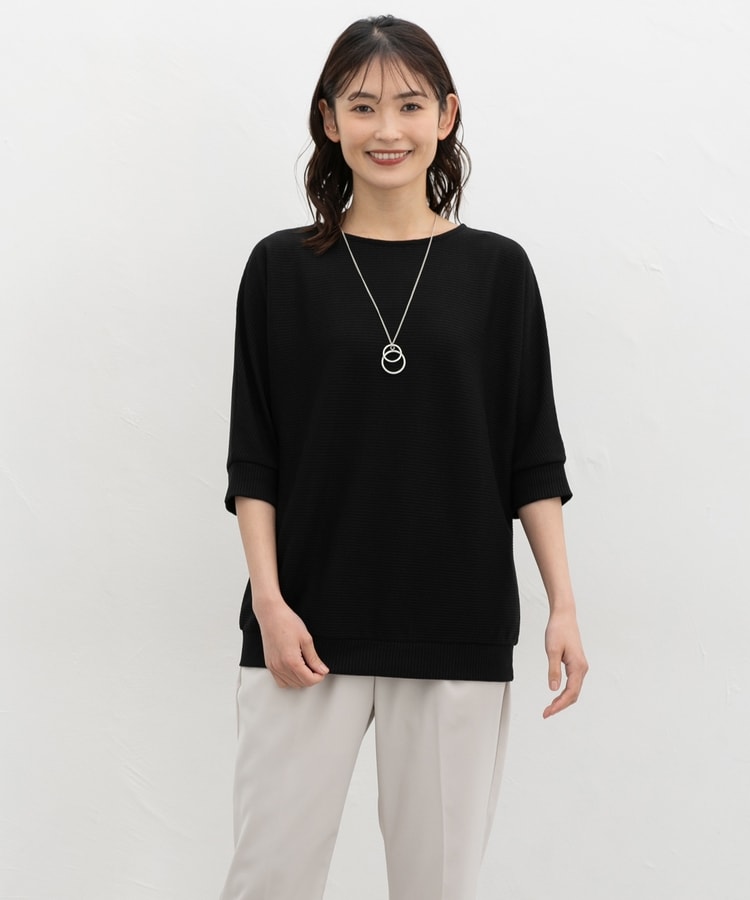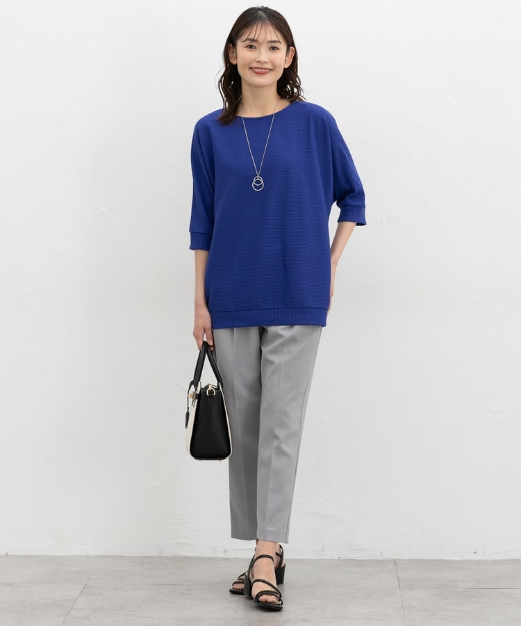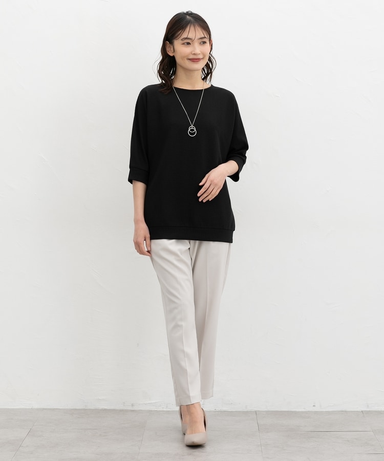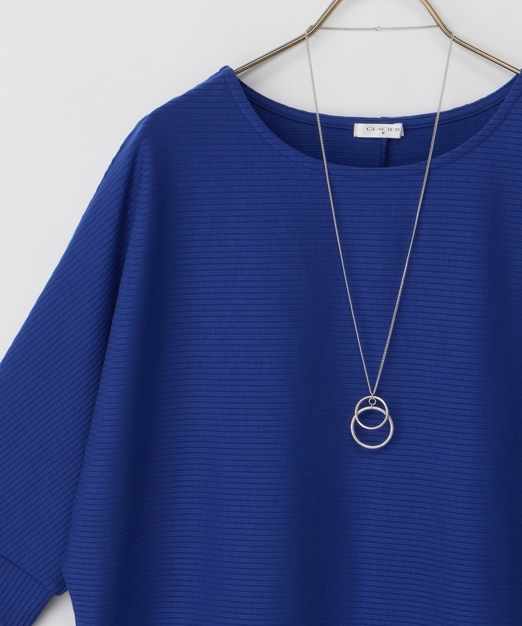 二の腕をカバーするドルマンスリーブのゆるシルエットがフェミニンなデザイン。