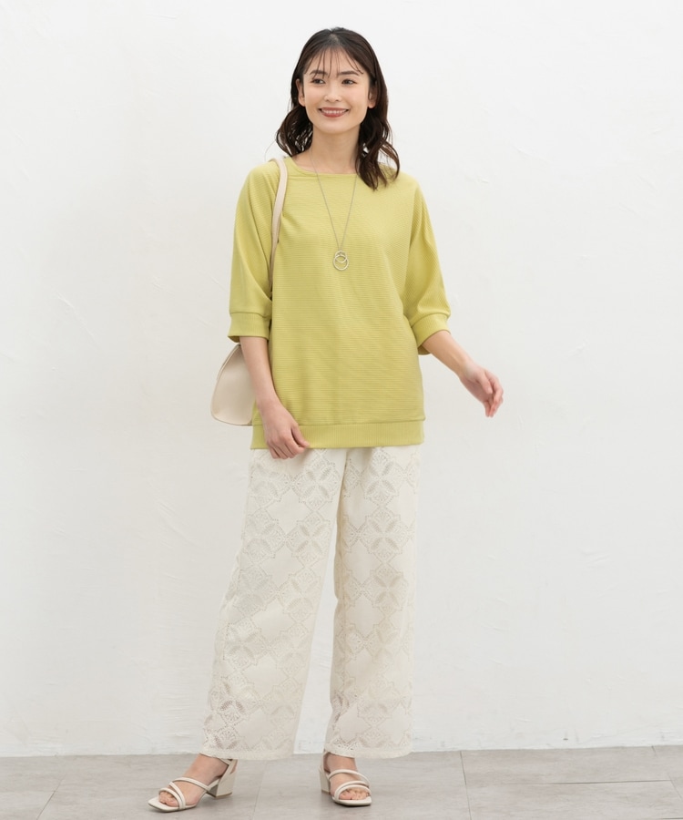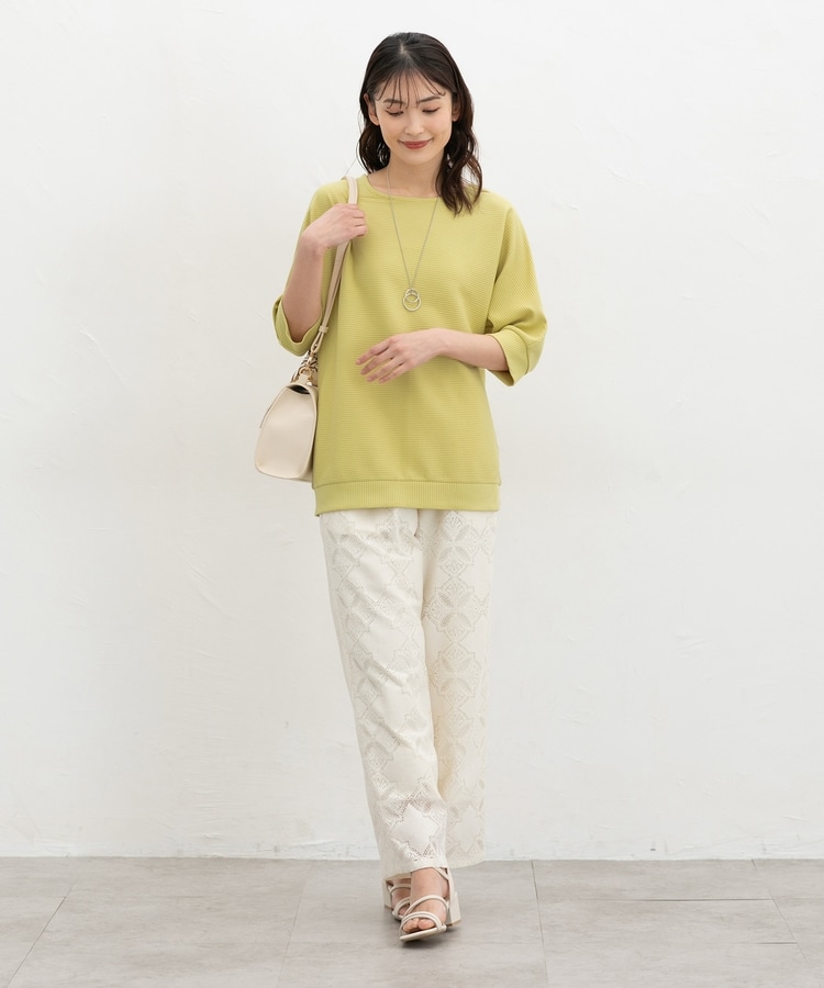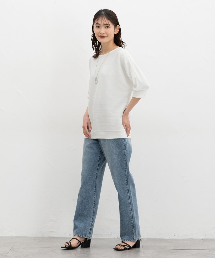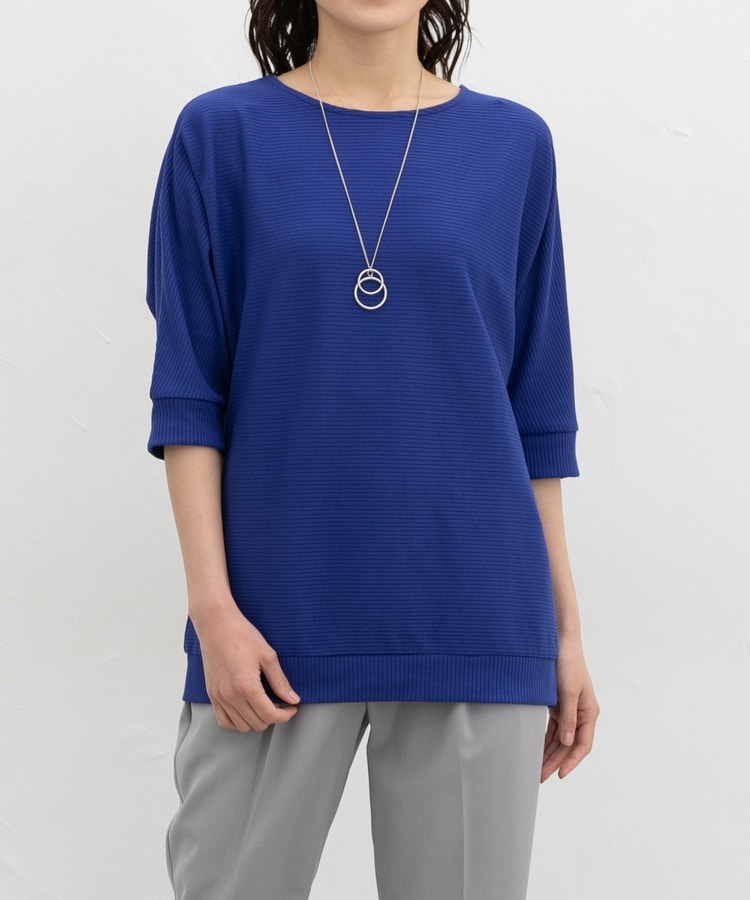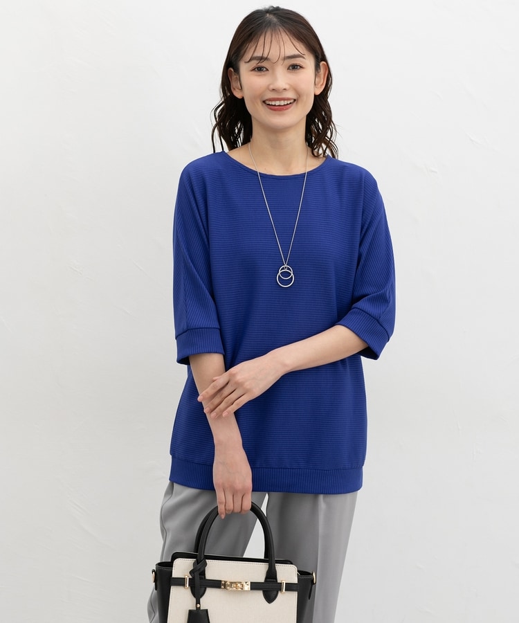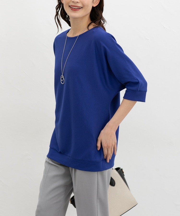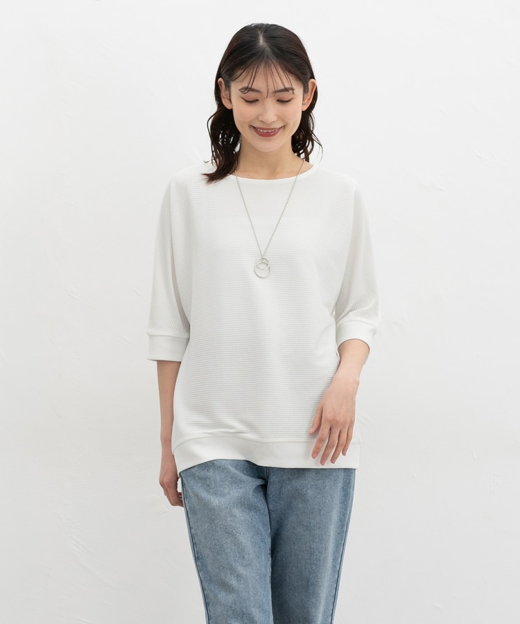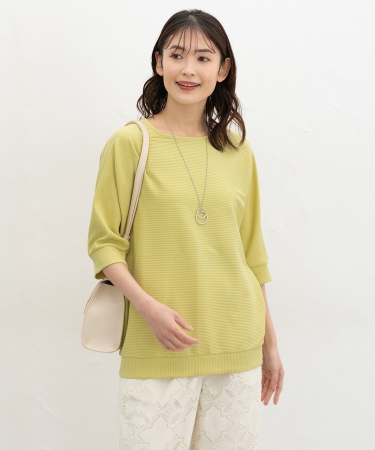二の腕をカバーするドルマンスリーブのゆるシルエットがフェミニンなデザイン。