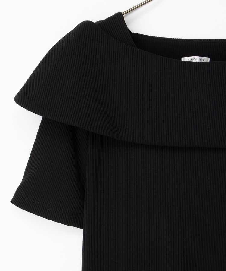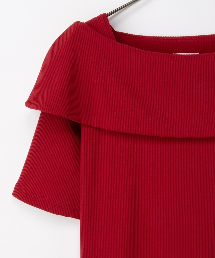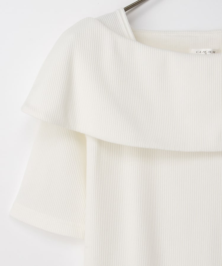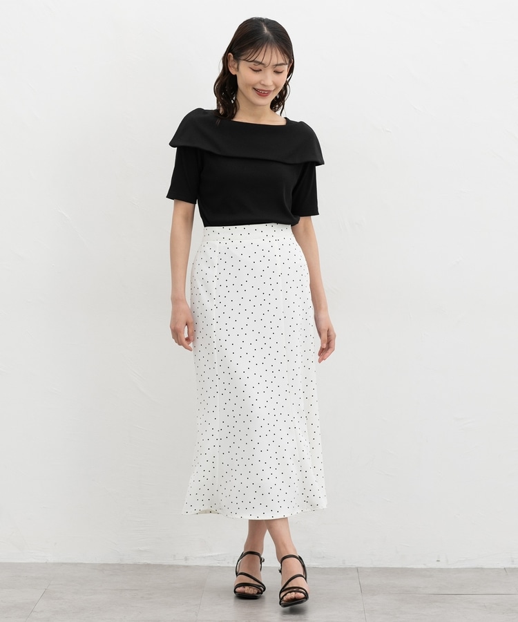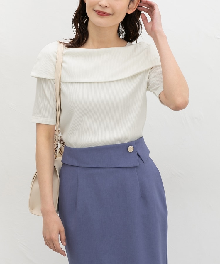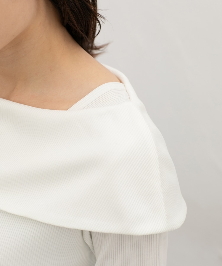 肩布付きの程よい肌見せで、デコルテ周りもきれいに見え上品な印象に。