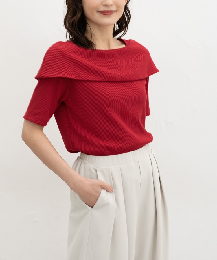 縦の編み目でほっそり見えしながら、ストレスフリーな着心地。
