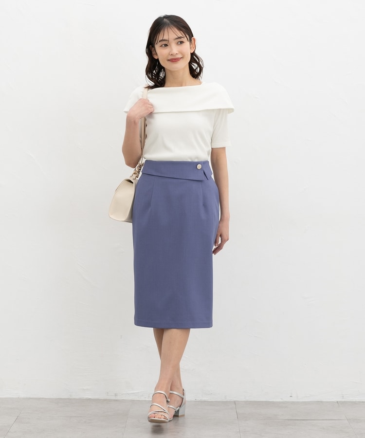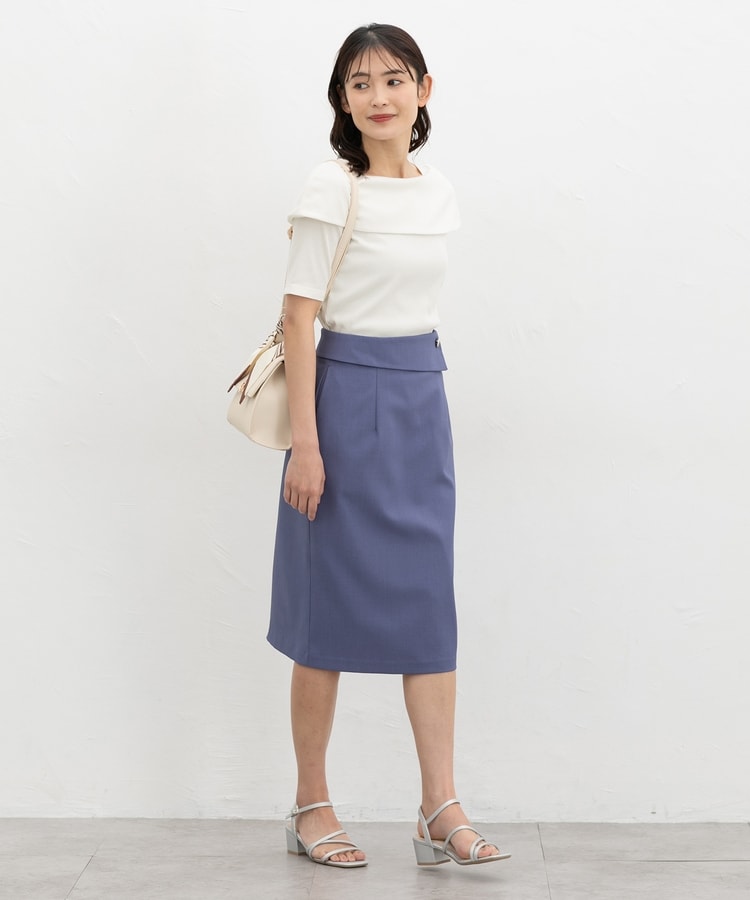 ボディーラインをきれいに見せる、すっきり幅と腰にかかる丈感。