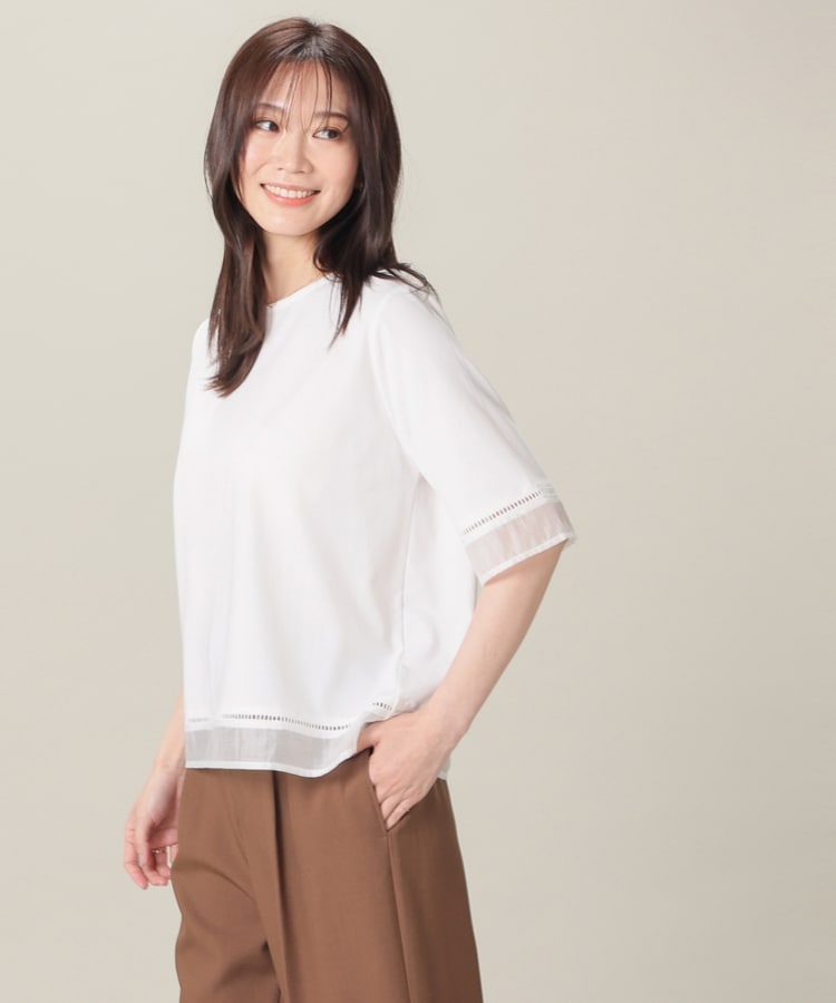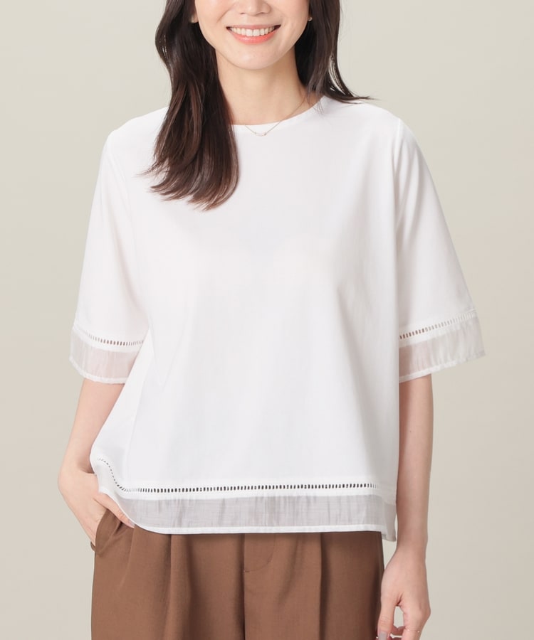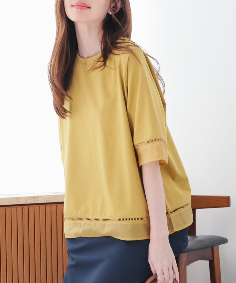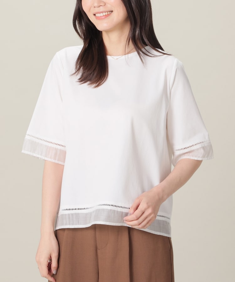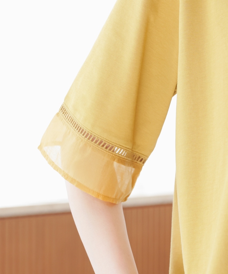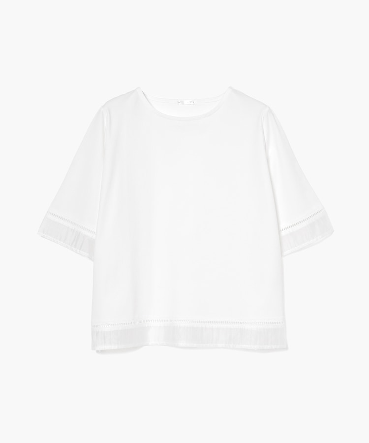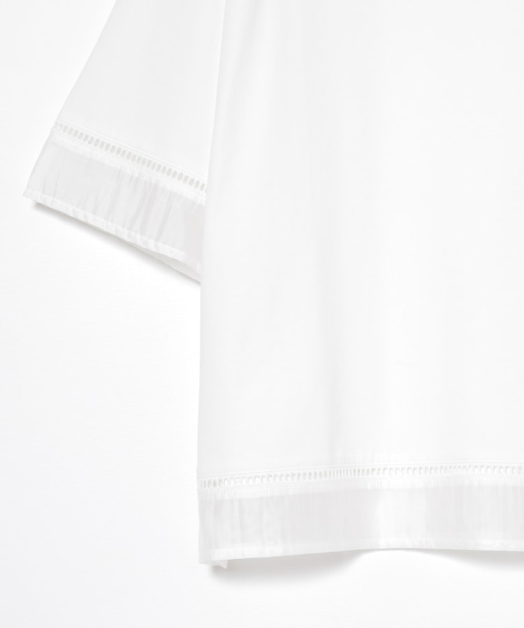 袖口と裾にはしごレースとシアー素材をプラスした、清涼感のある上品デザイン。
