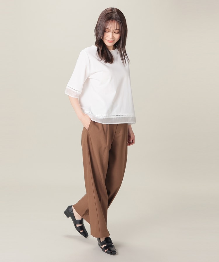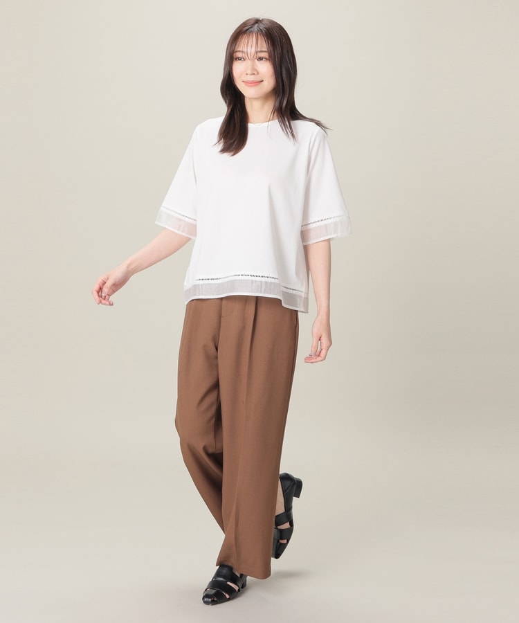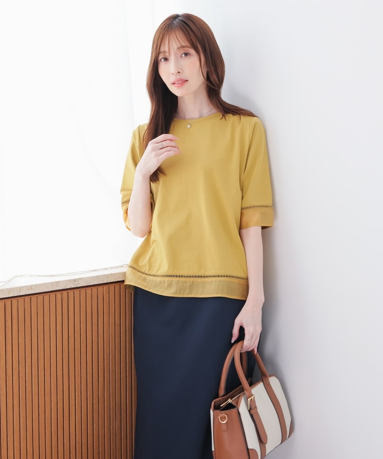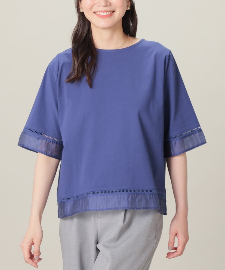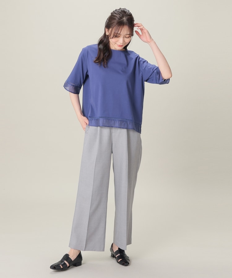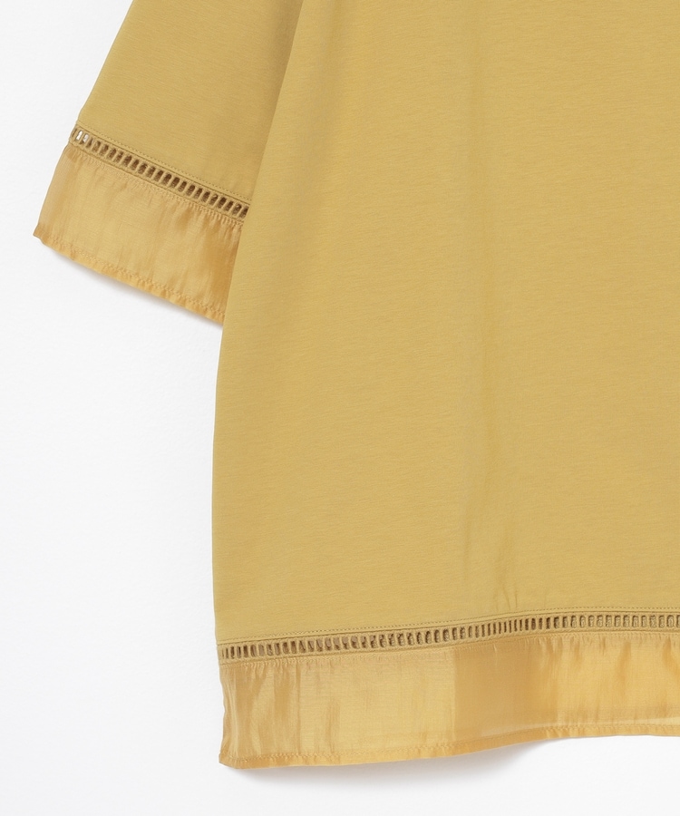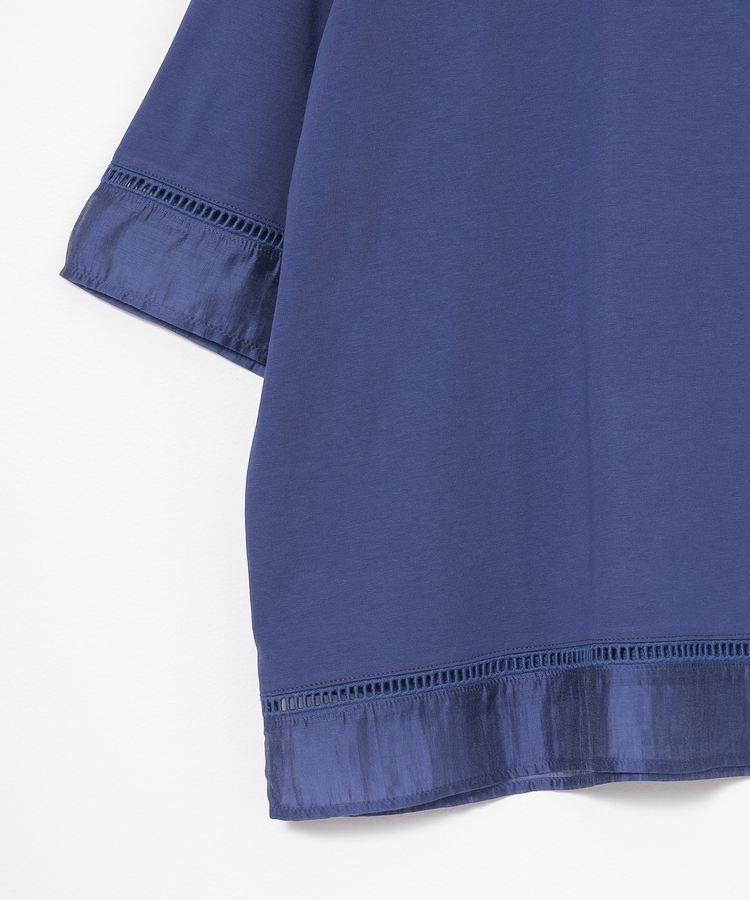 袖口と裾にはしごレースとシアー素材をプラスした、清涼感のある上品デザイン。