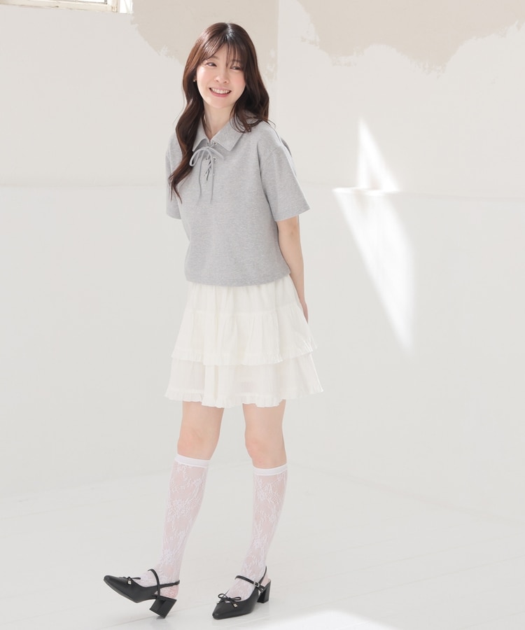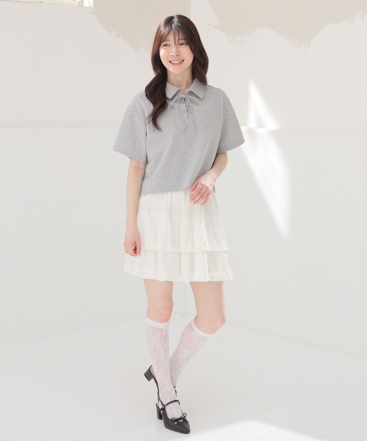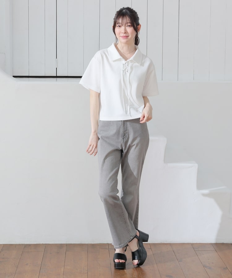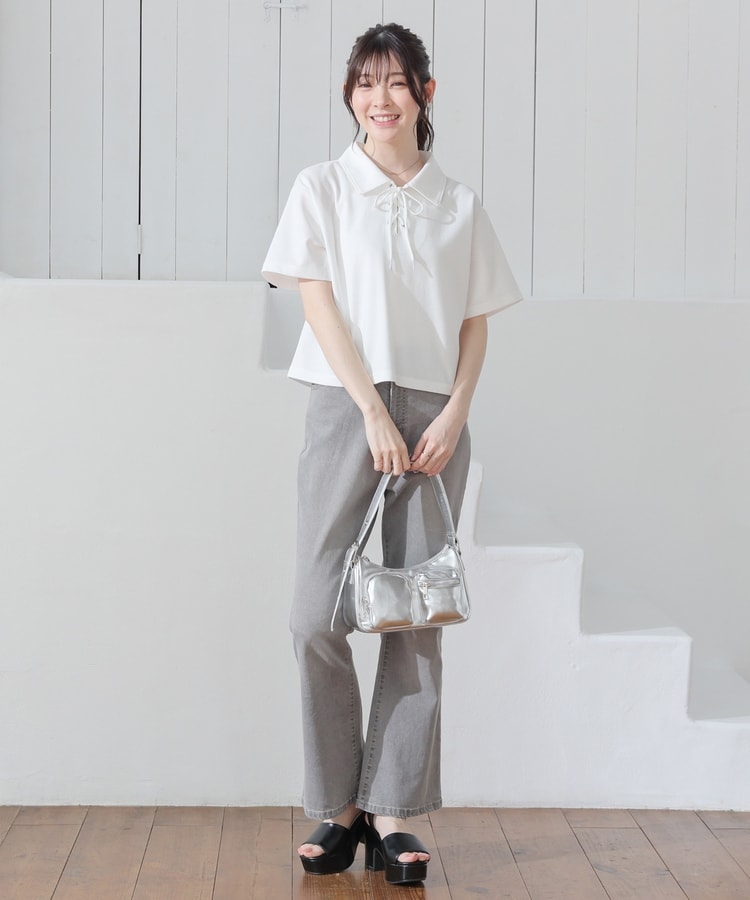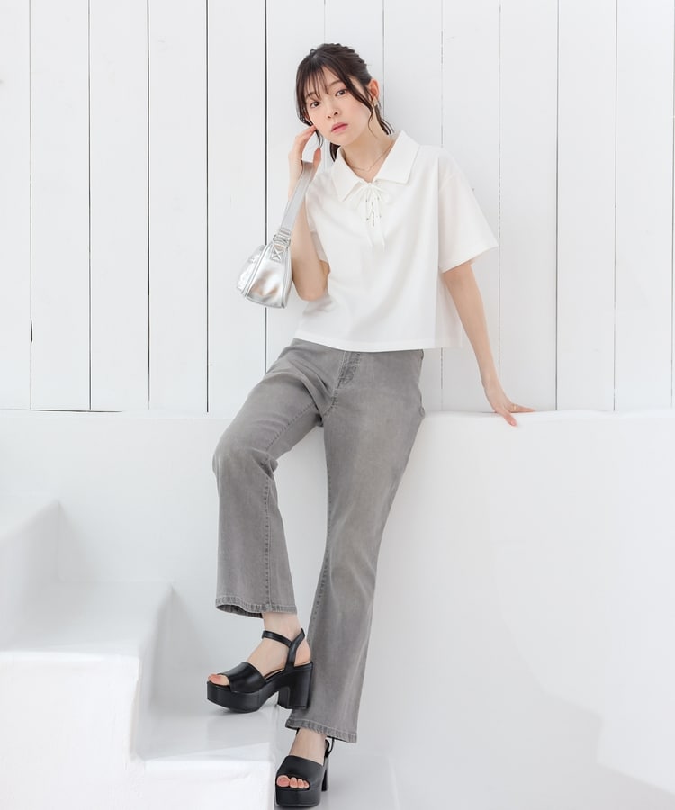 デニムからミニスカートまで、どんなボトムスとも好相性。