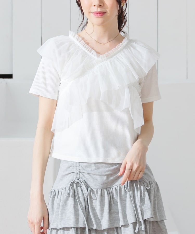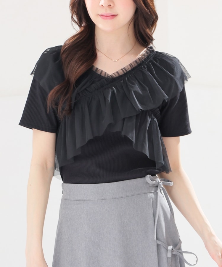 チュールフリルトップス