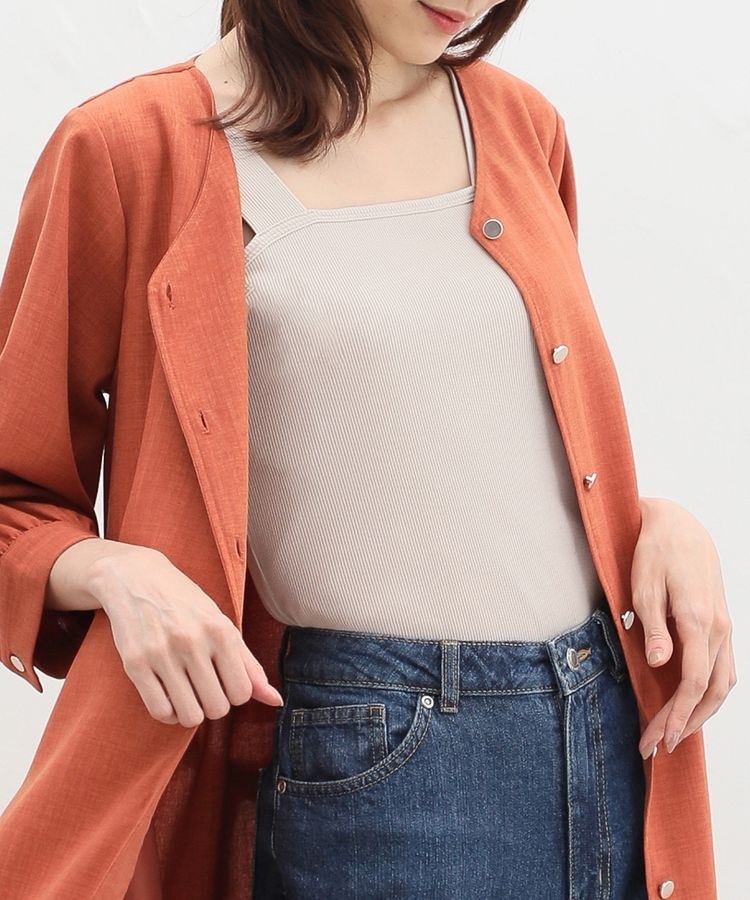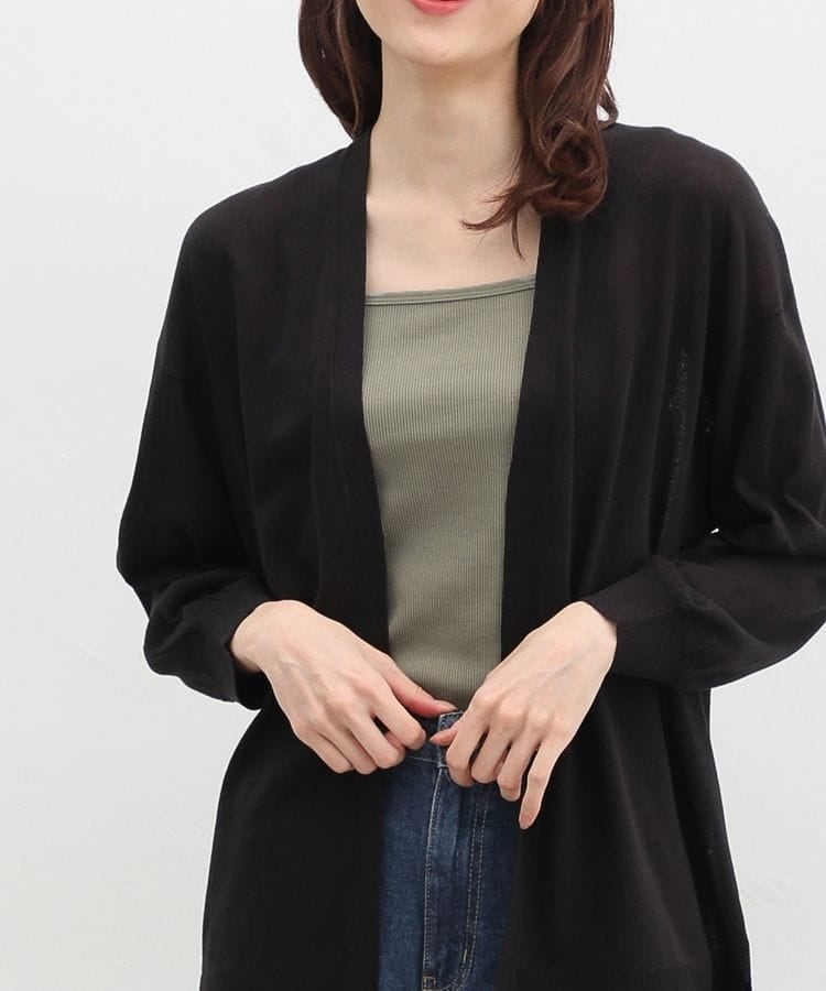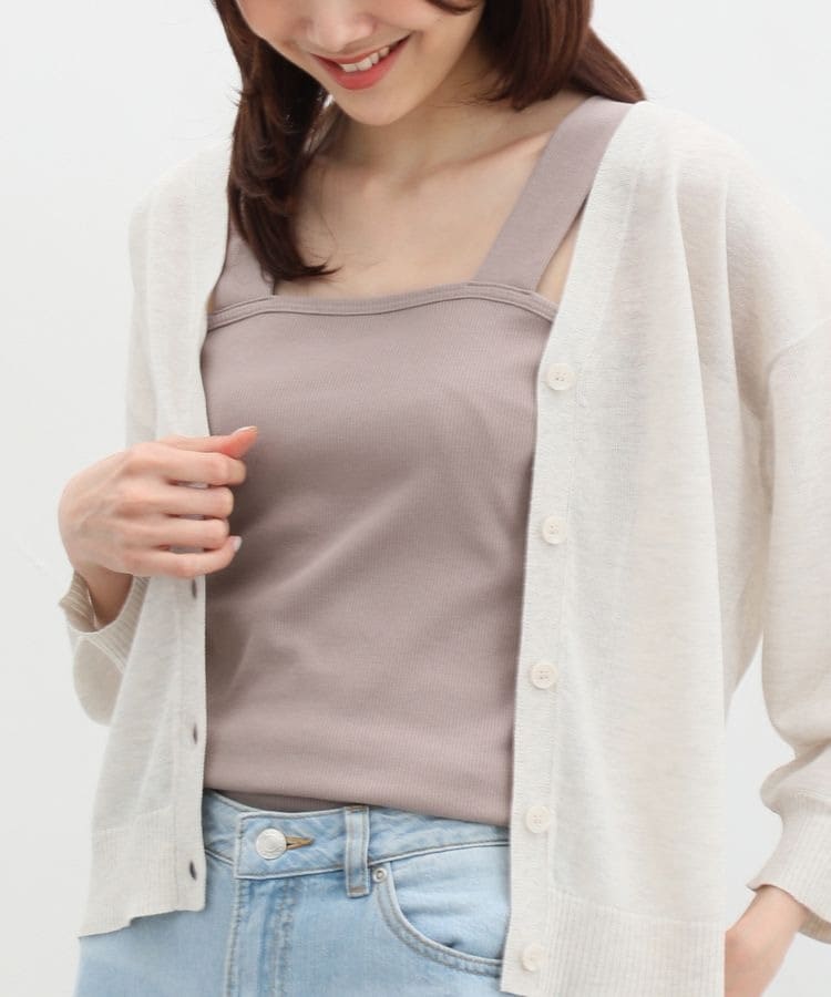 カーディガンやシャツなどの羽織りはもちろん、透け感のあるトップスのインナーにも大活躍。