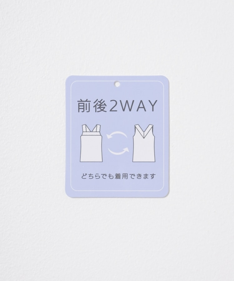 デコルテがきれいに見えるスクエアとVネックの、前後2Wayで楽しめるデザイン。