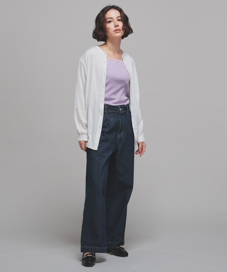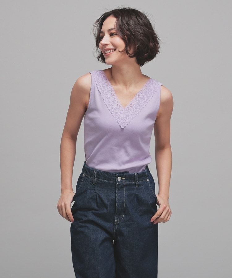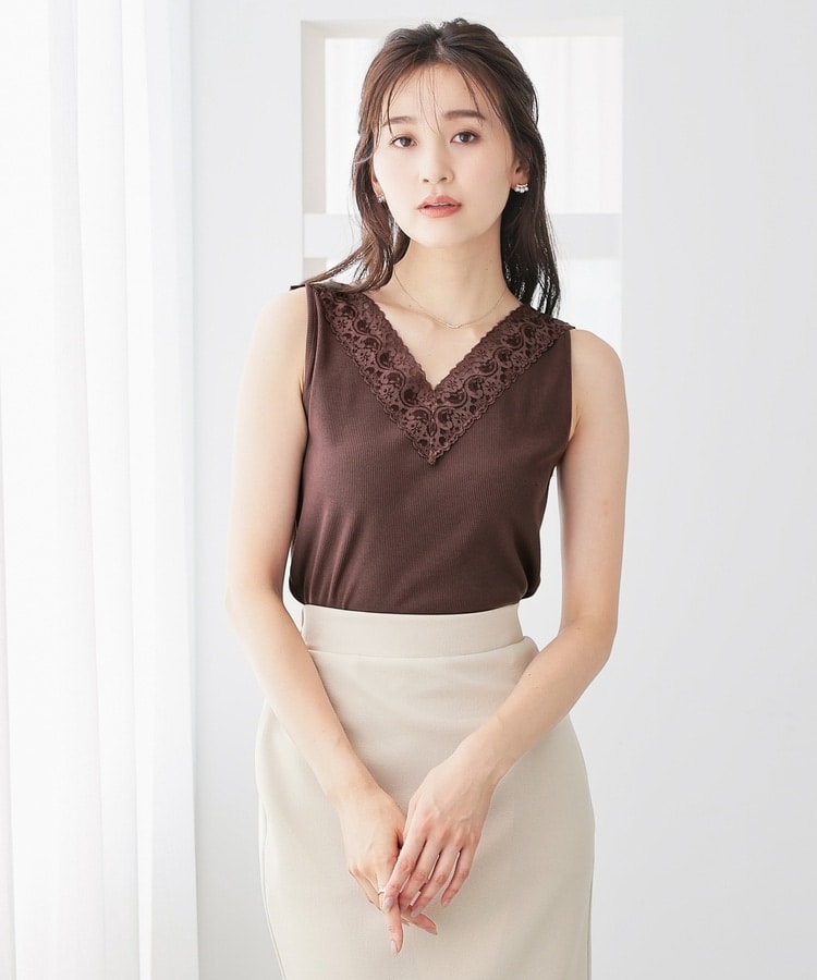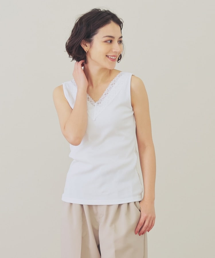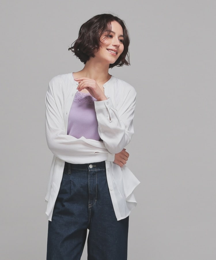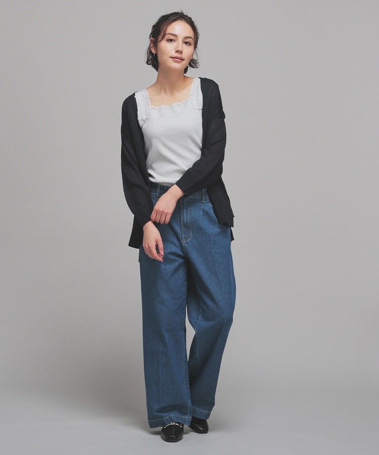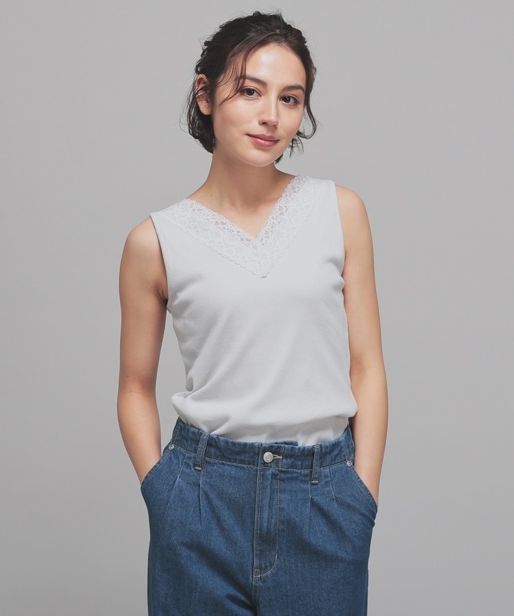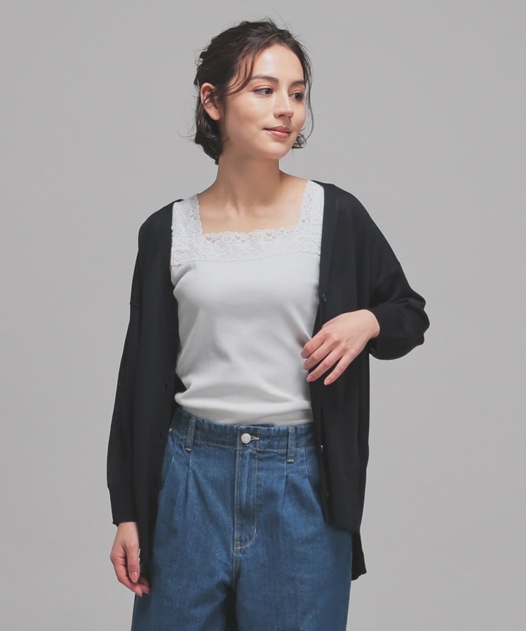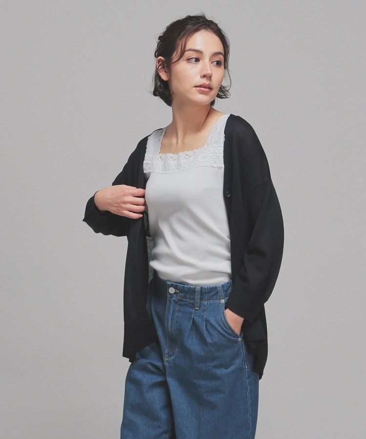 カーデやシャツ、ワンピースなどと合わせてレースを見せるのはもちろん、シアートップスのインナーとしても◎