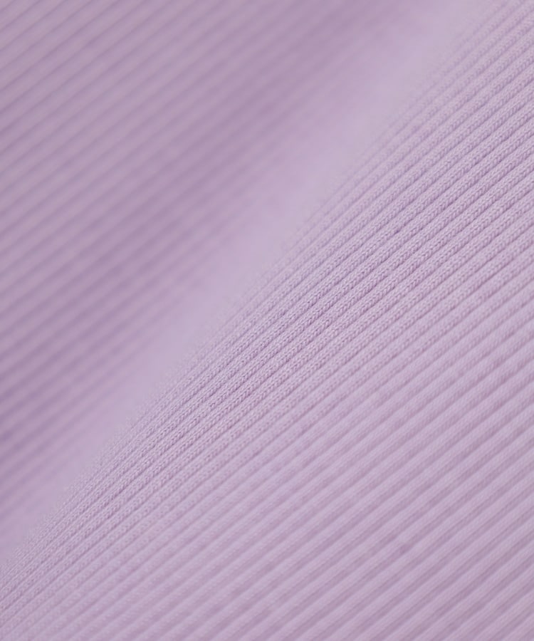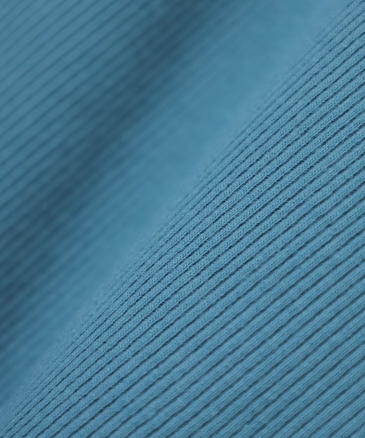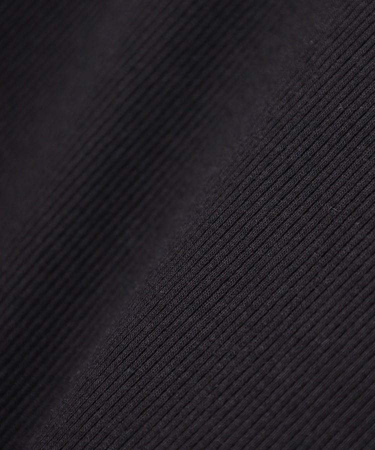 環境に優しい再生ポリエステルを使用した、フィット感がありながらストレッチが利いて快適な着心地の綿混テレコ素材。
