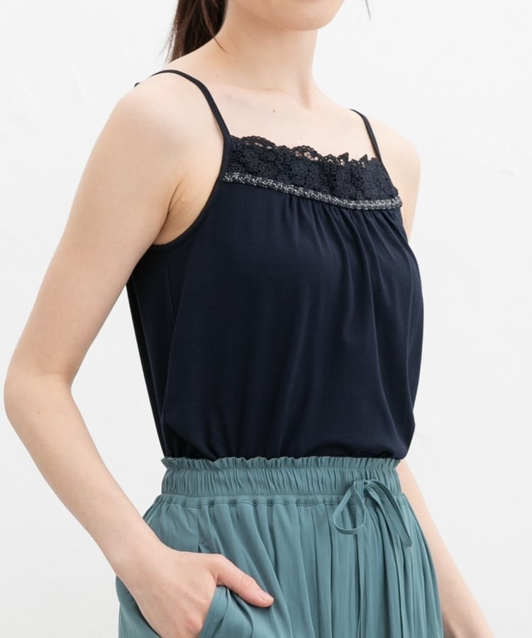 開きの広いトップスと合わせてレースを見せるのはもちろん、シャツやワンピースのインナーとしても、ロングシーズン毎日大活躍。