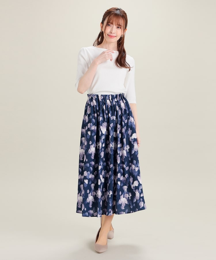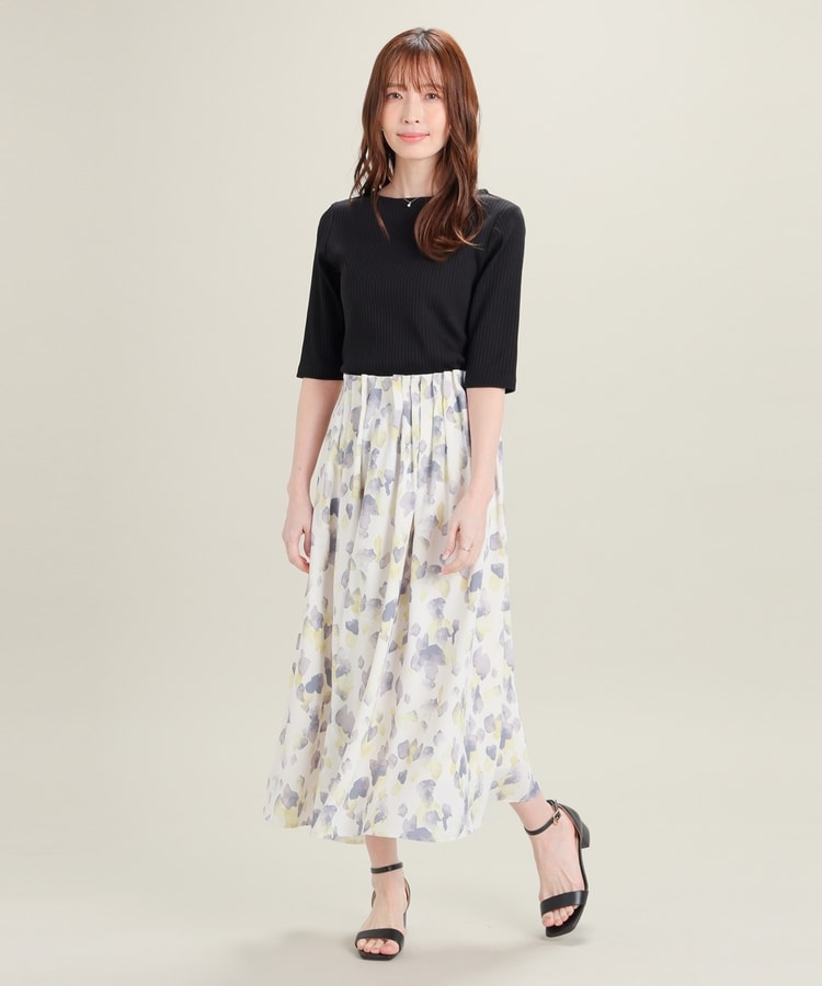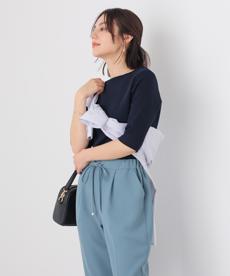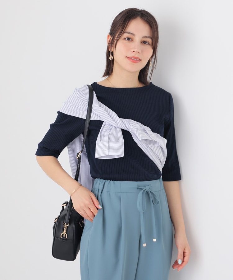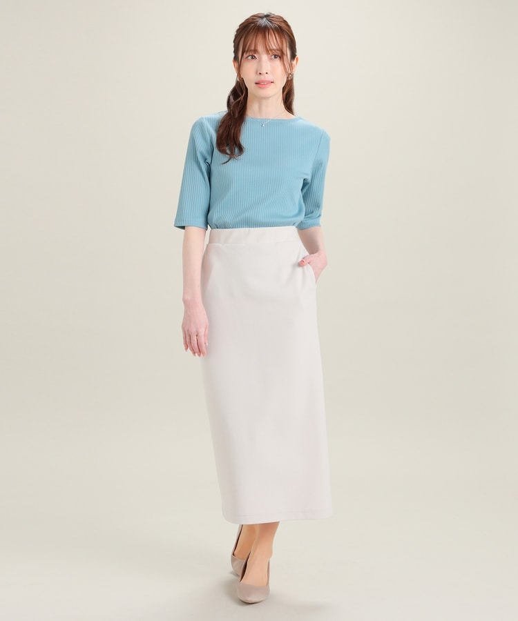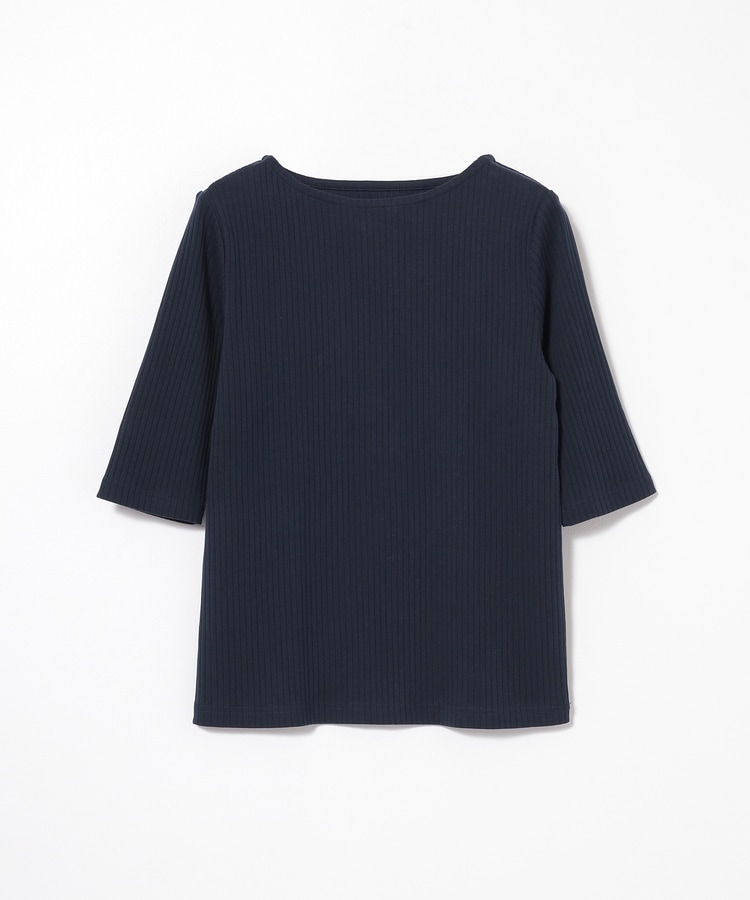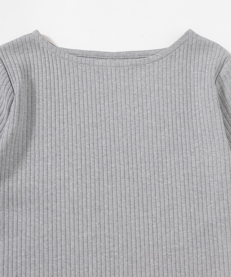 デコルテの露出を抑えたボートネックの、シンプルで上品なデザイン。