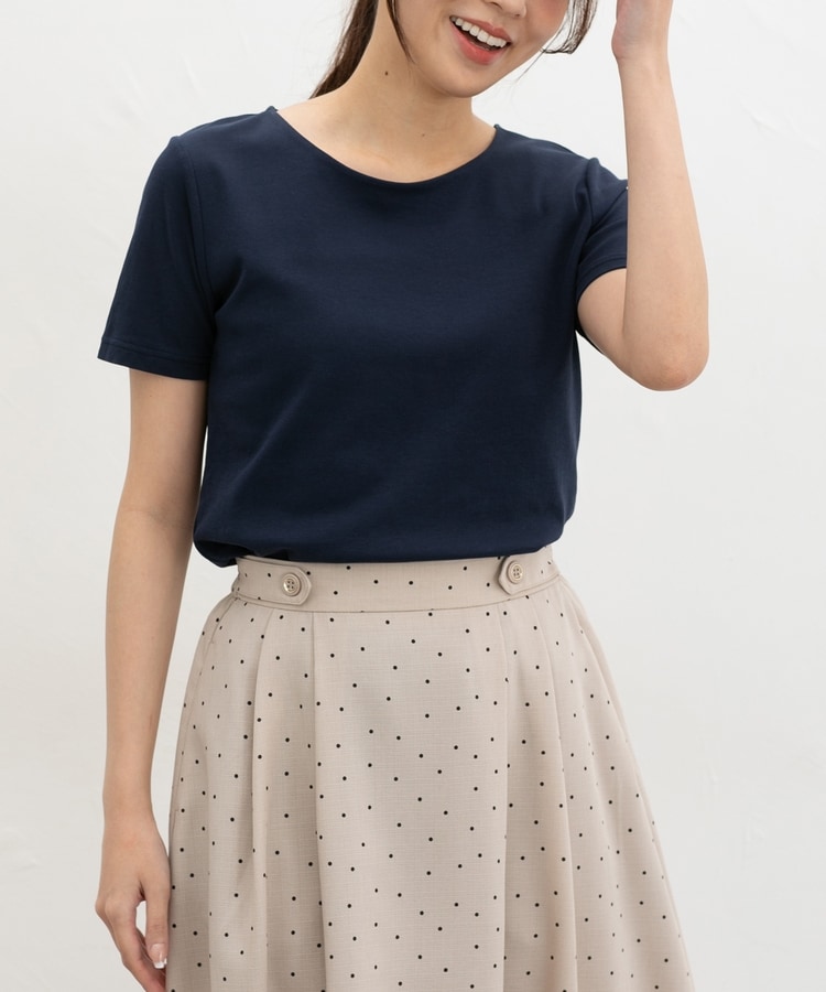 1枚でも、ジャケットやカーディガンのインにも使え、テーパードパンツやフレアスカートなどと合わせた、お仕事やお出かけのきれいめスタイルに活躍。