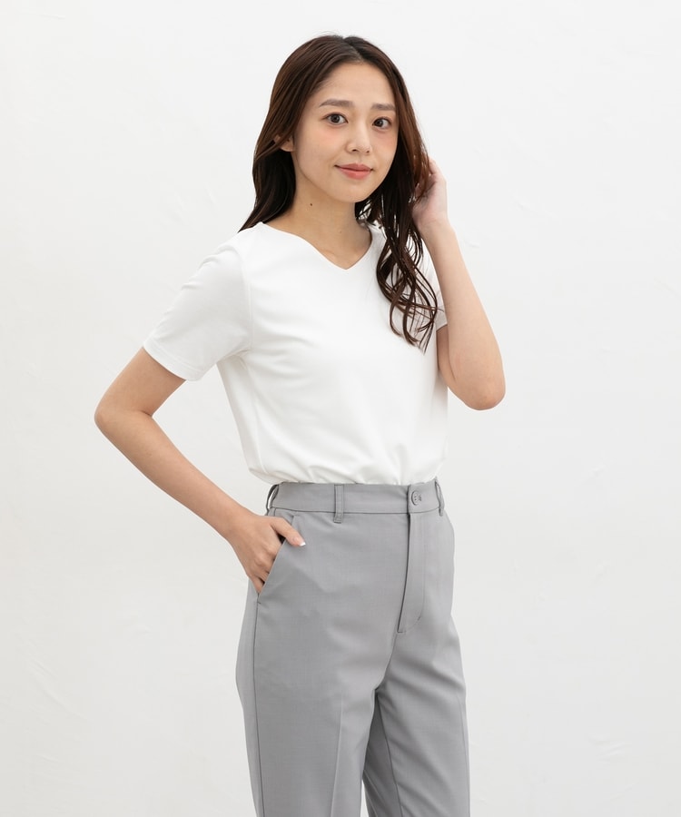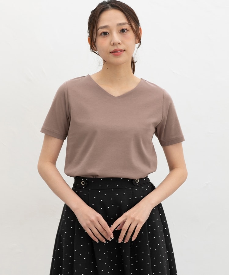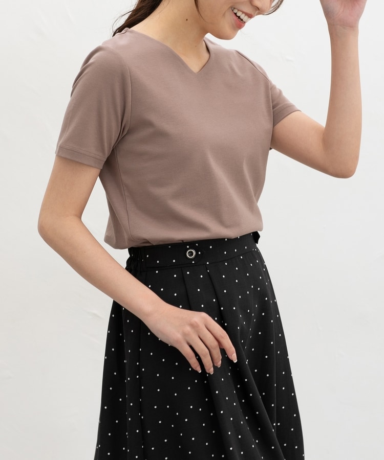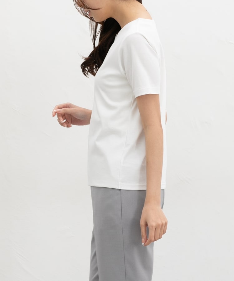 1枚でも、ジャケットやカーディガンのインにも使え、テーパードパンツやフレアスカートなどと合わせた、お仕事やお出かけのきれいめスタイルに活躍。