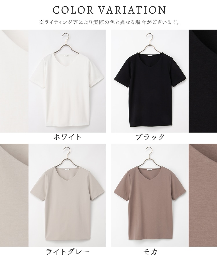 ステッチをなくした首もとすっきりのVネックで、高見えが叶う上品デザイン。