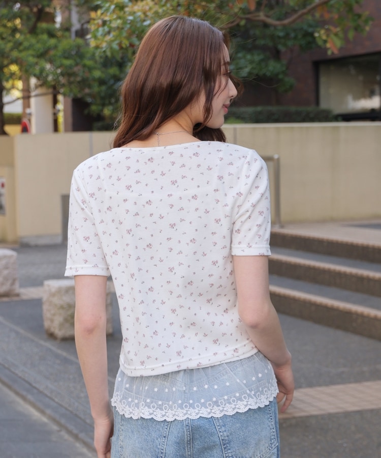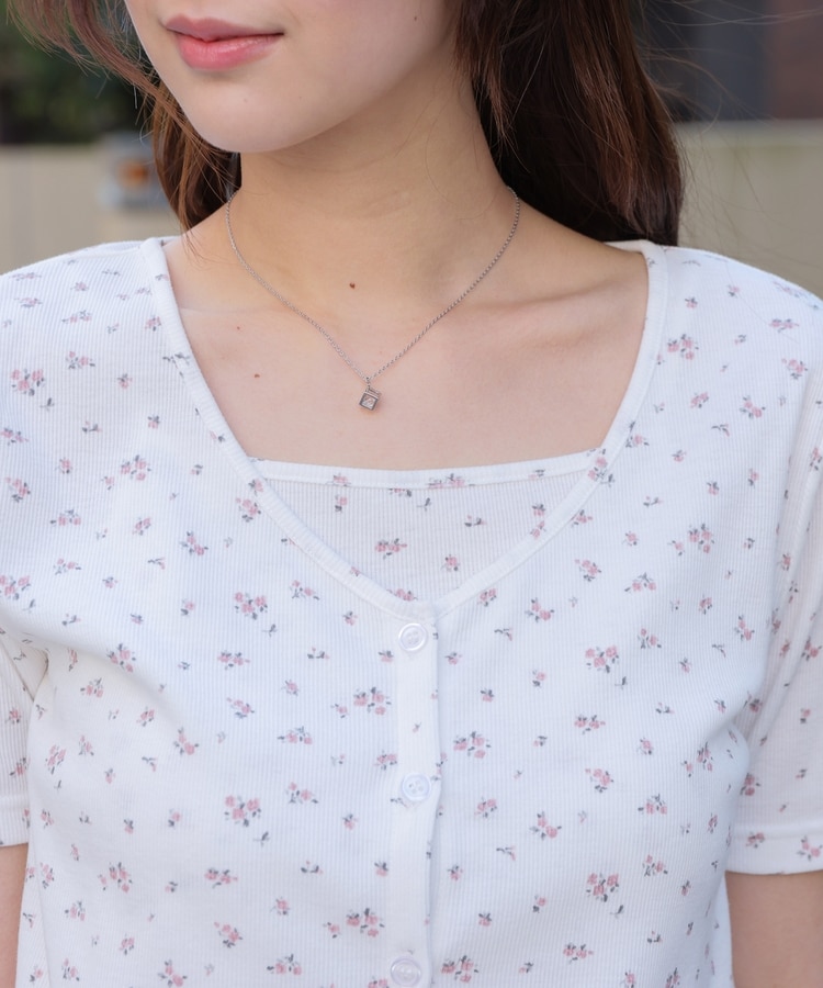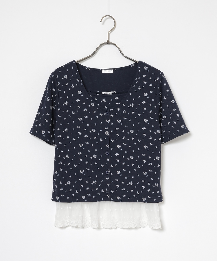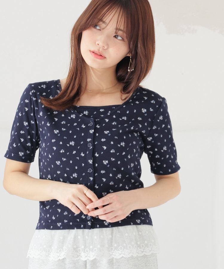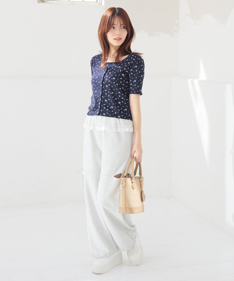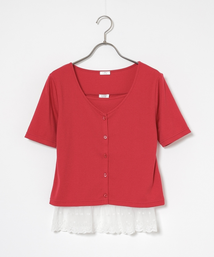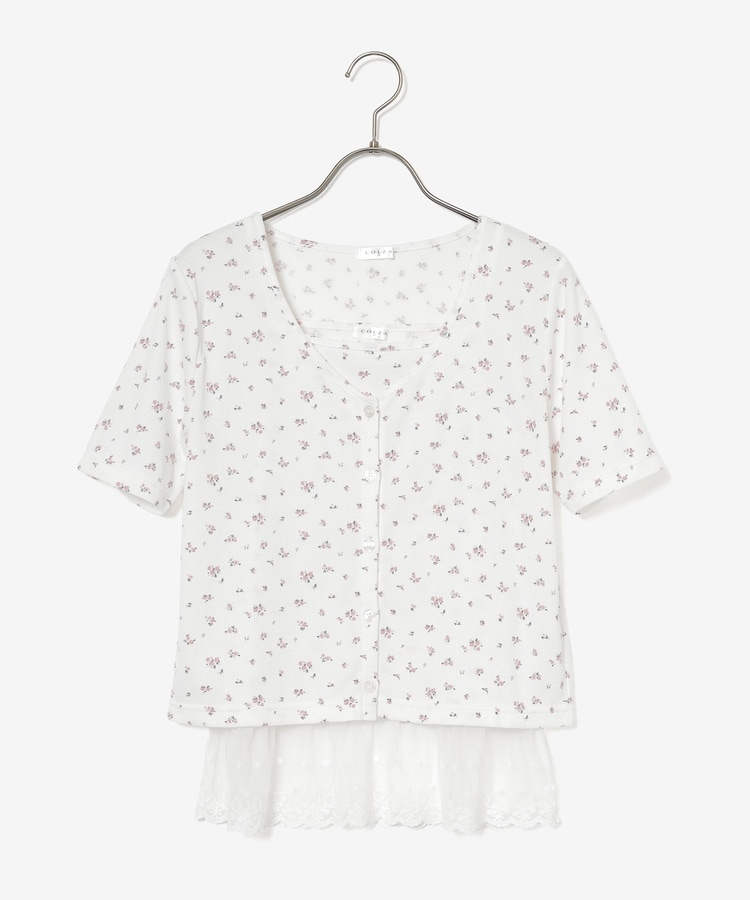 同素材のキャミソールはフェミニンなレースの裾フリル付き。