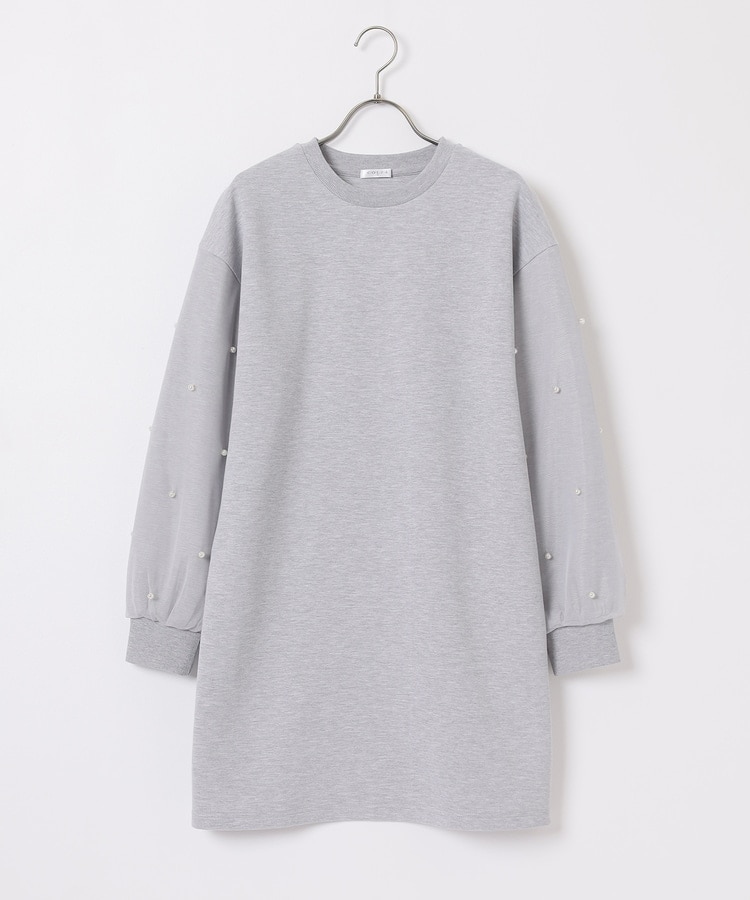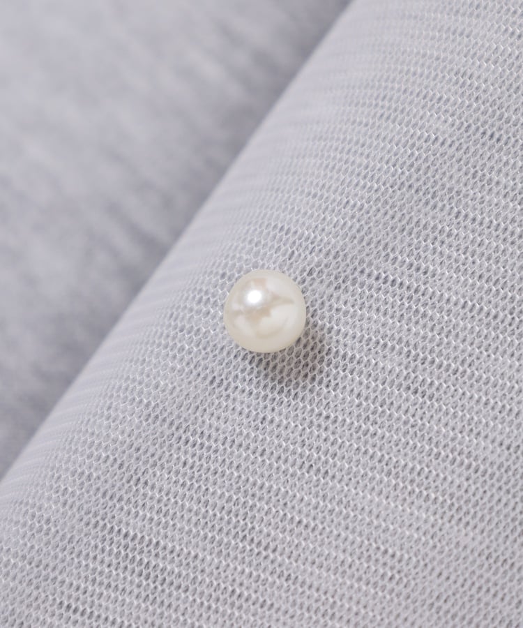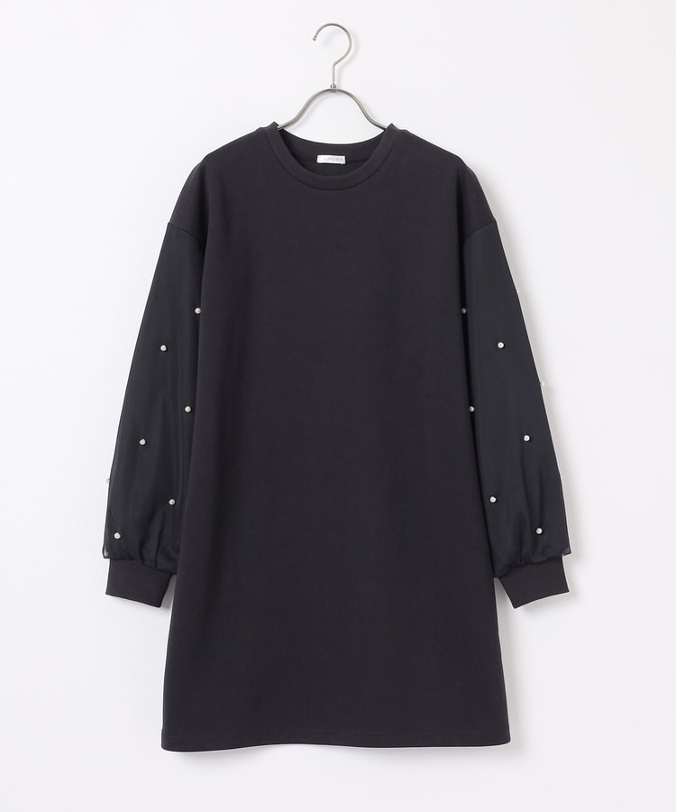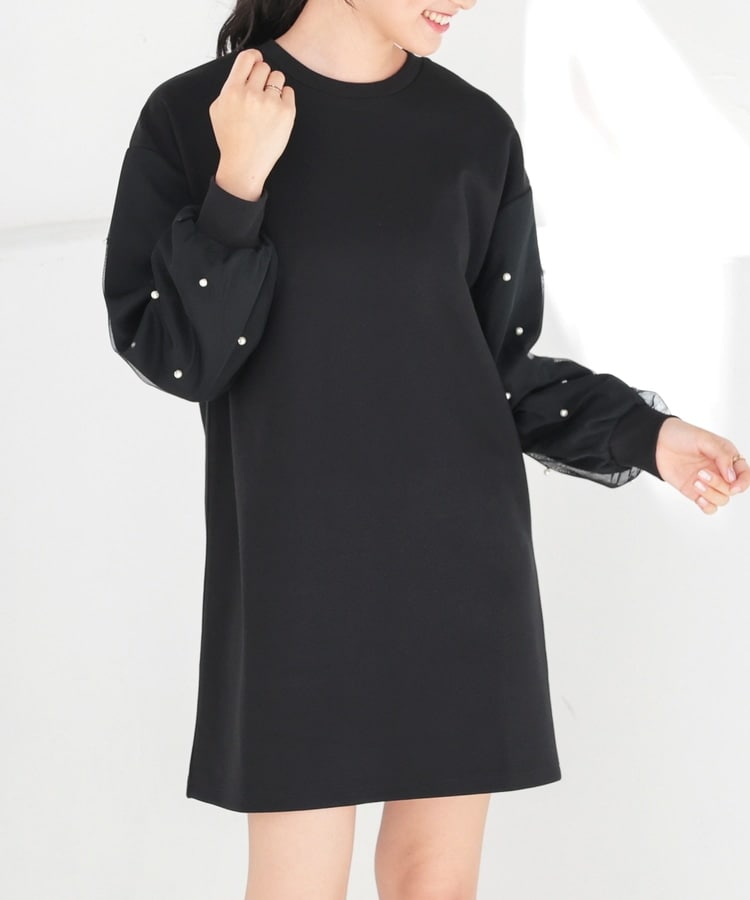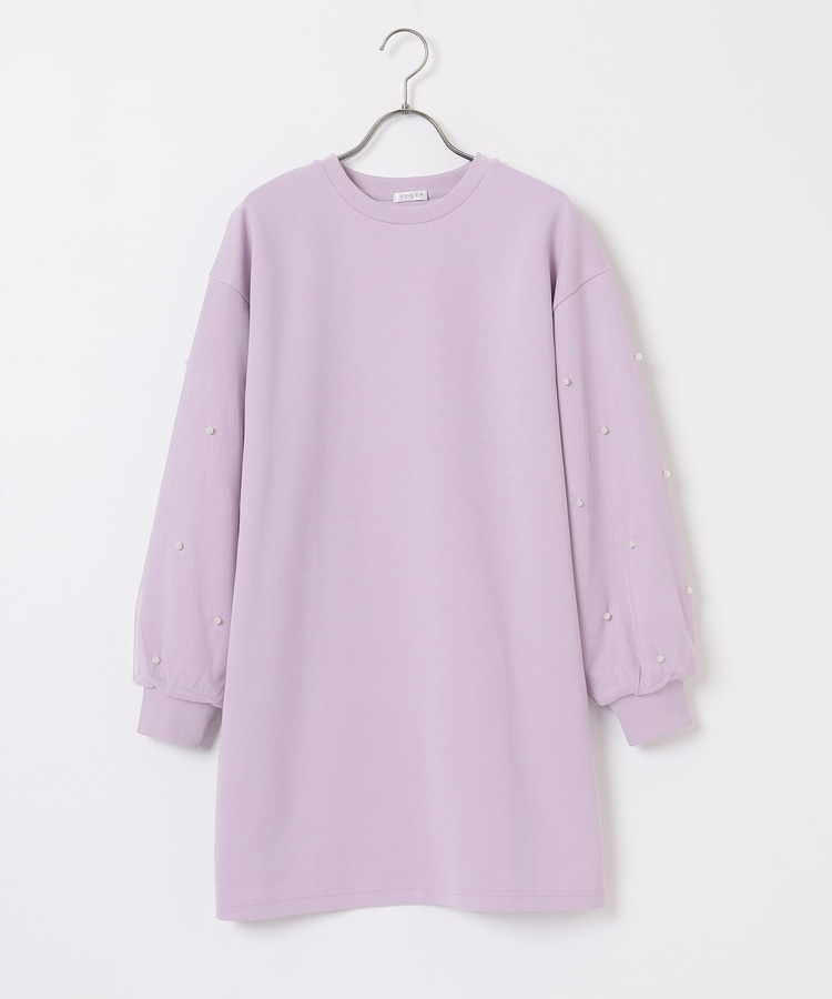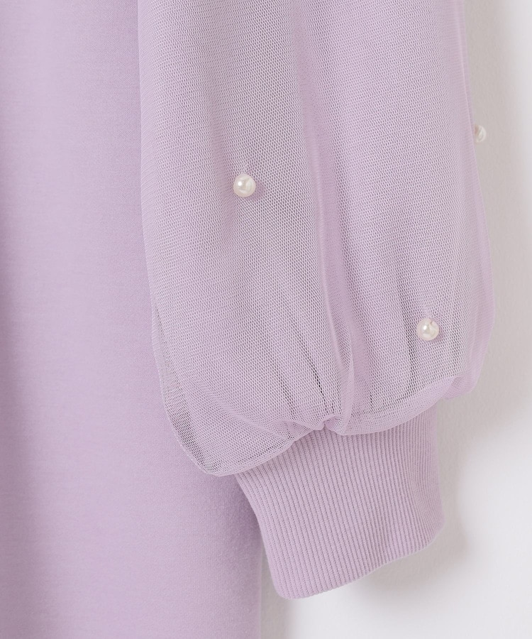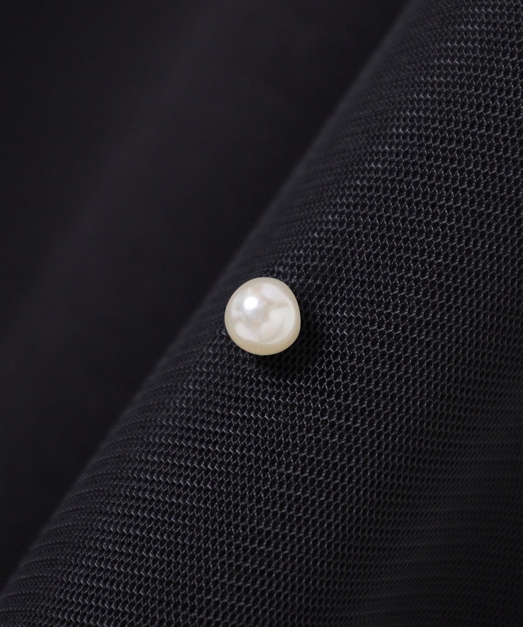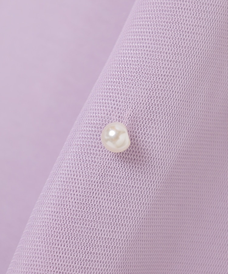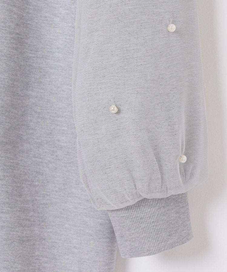チュールを重ねた袖にパールを散りばめた華やかデザイン。