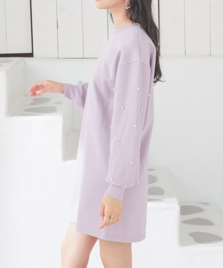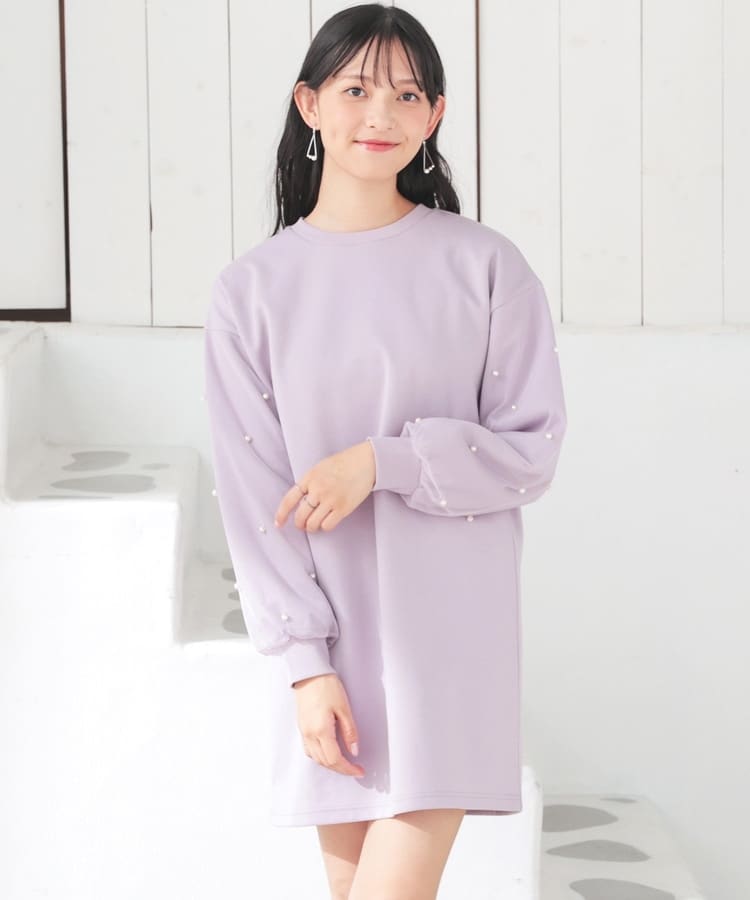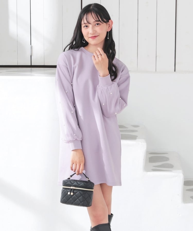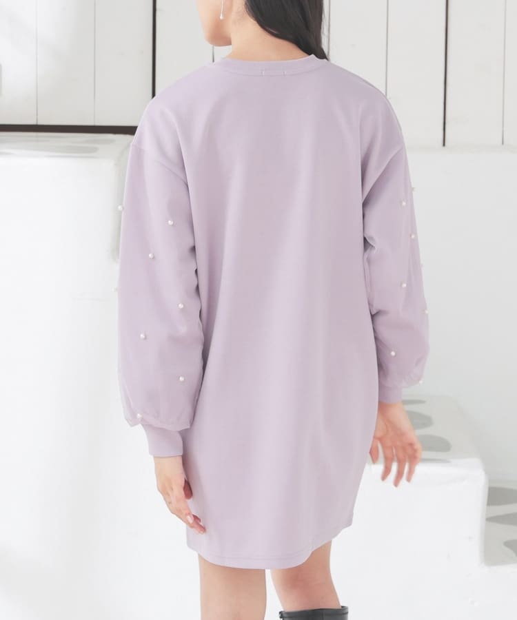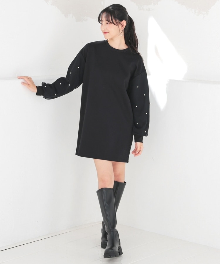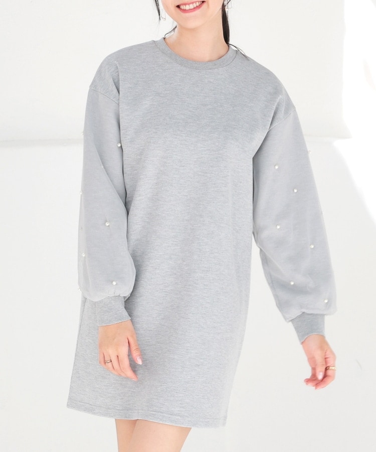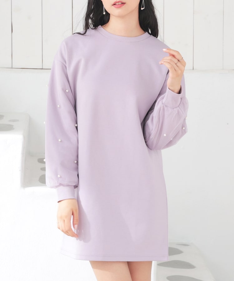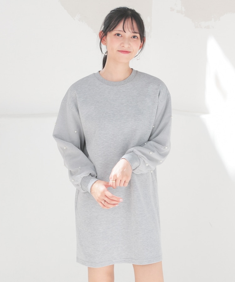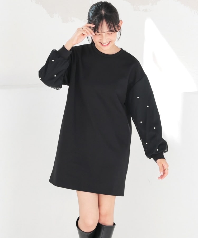 チュールを重ねた袖にパールを散りばめた華やかデザイン。