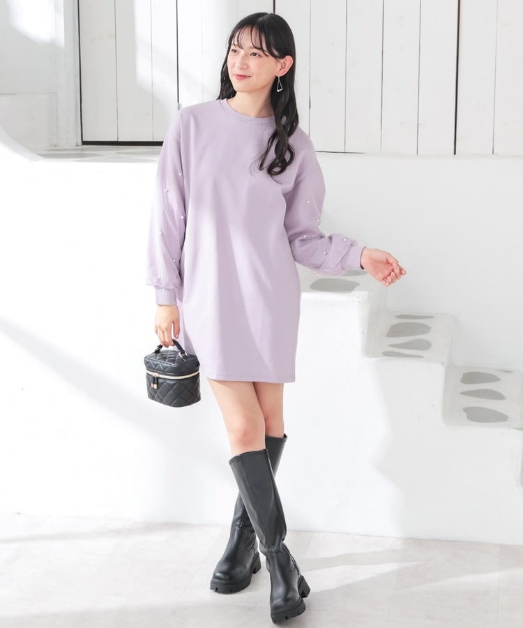 ブーツと合わせて1枚でミニワンピースとして着るのはもちろん、チュニックとしてすっきりシルエットのパンツにレイヤードするのもおすすめ。