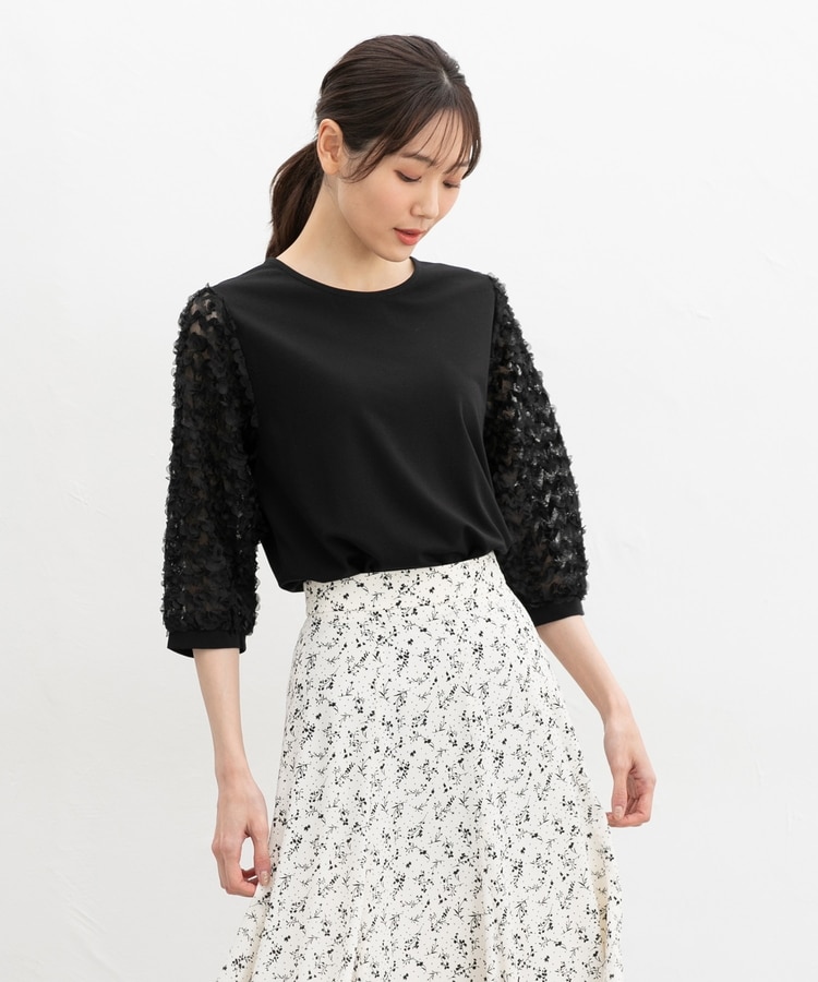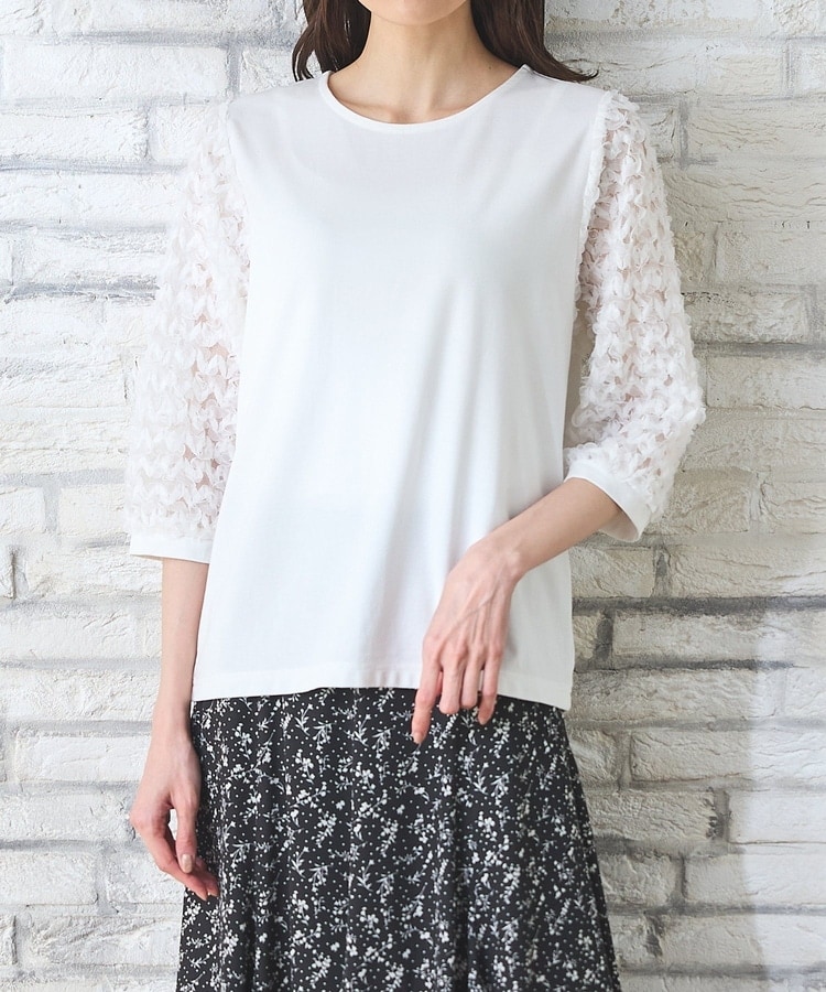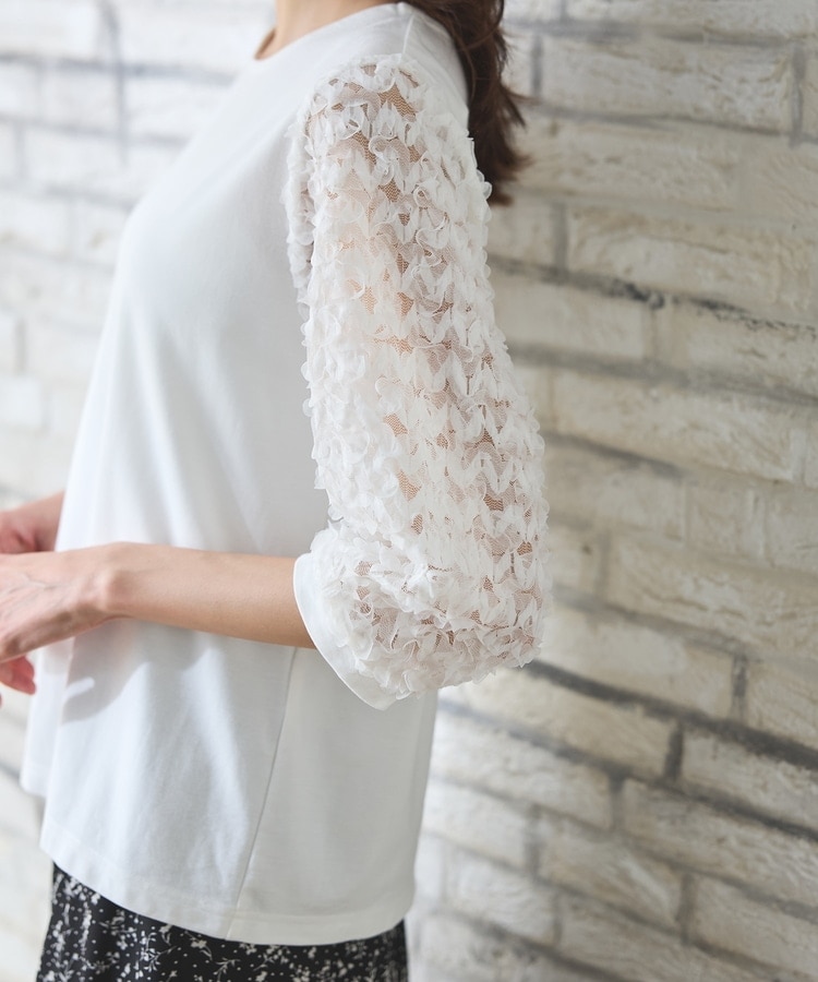 袖レースが華やかな、1枚でサマになるデザイン。