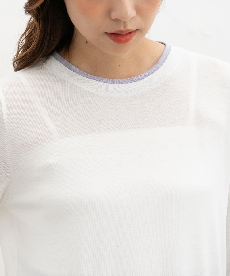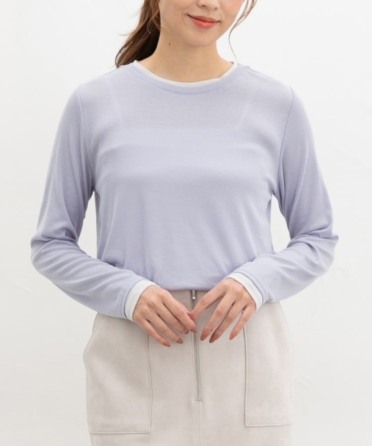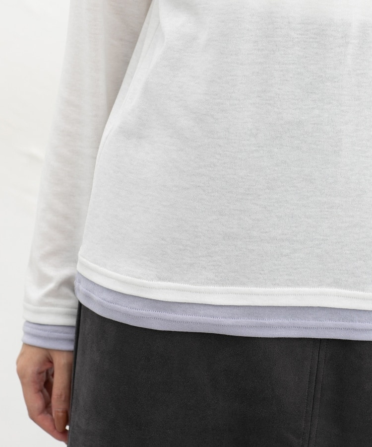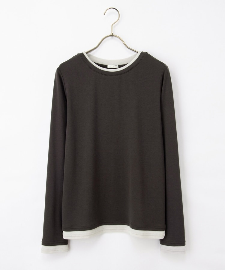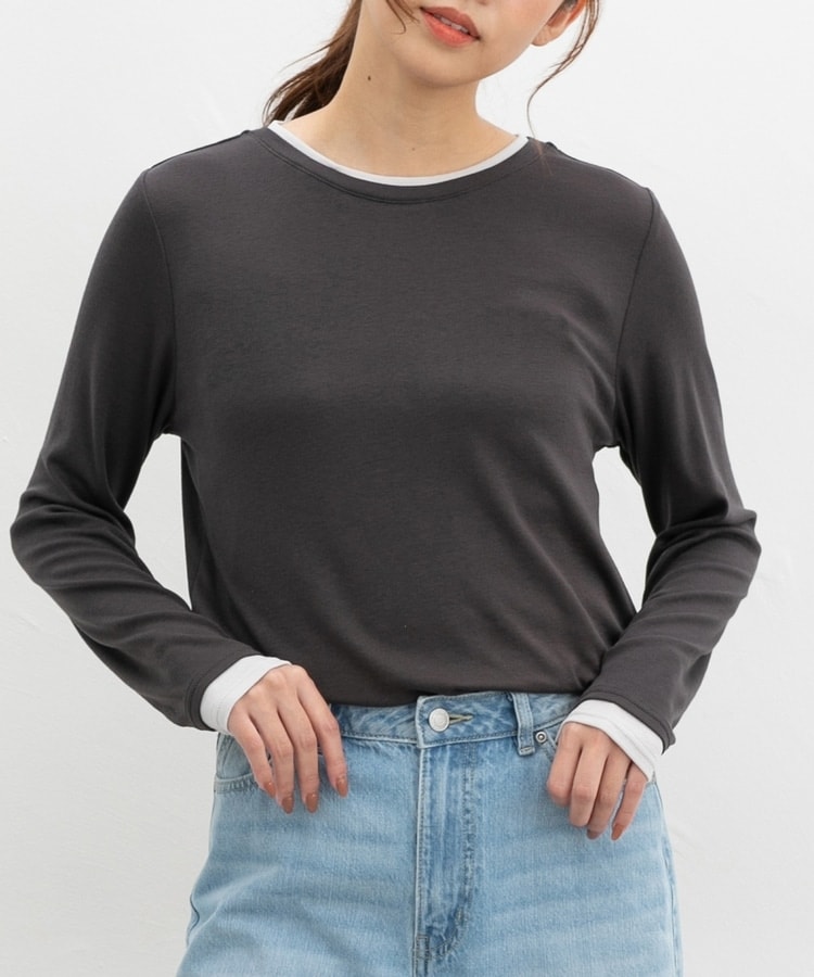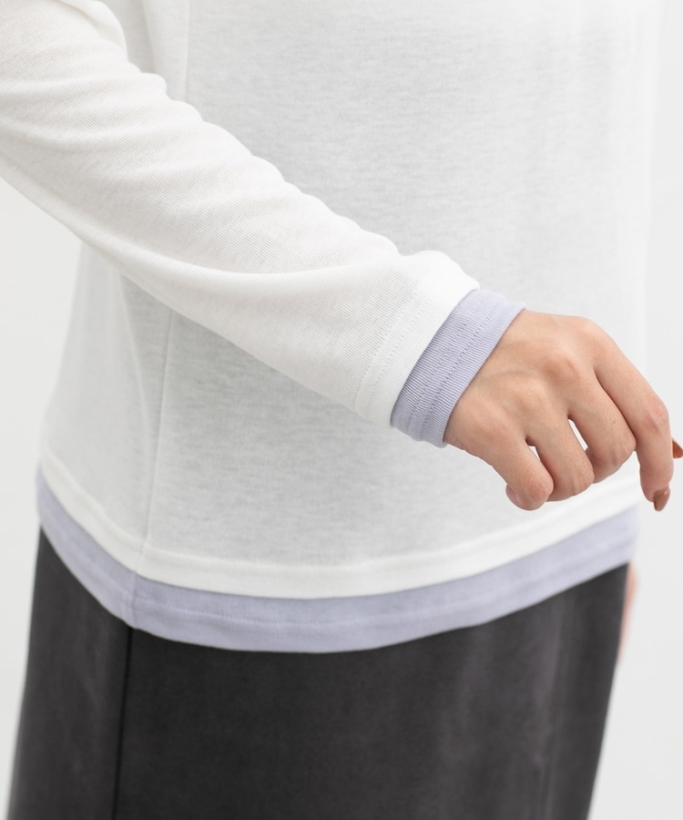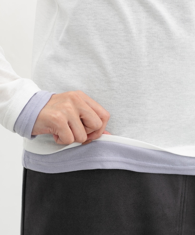 Tシャツを2枚重ねたような配色使いで、1枚で簡単に旬顔スタイルが作れるお洒落なデザイン。