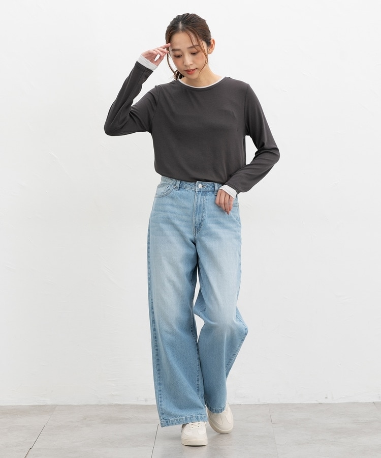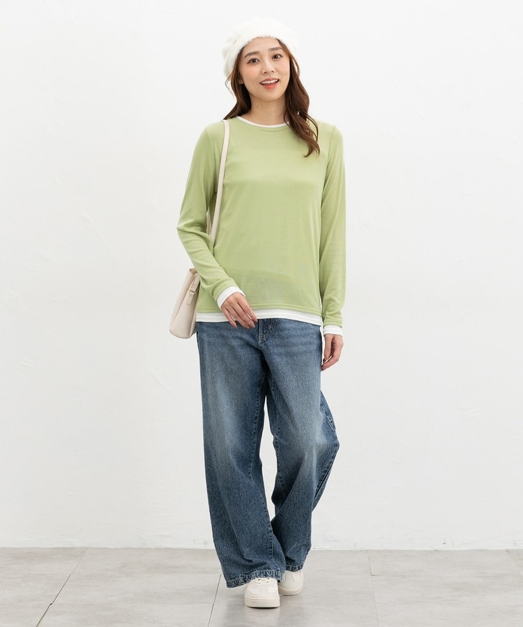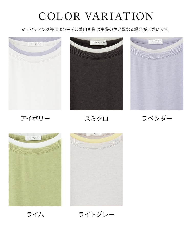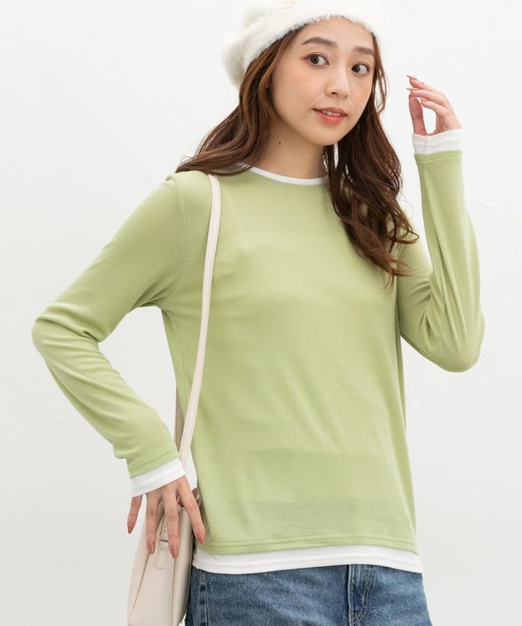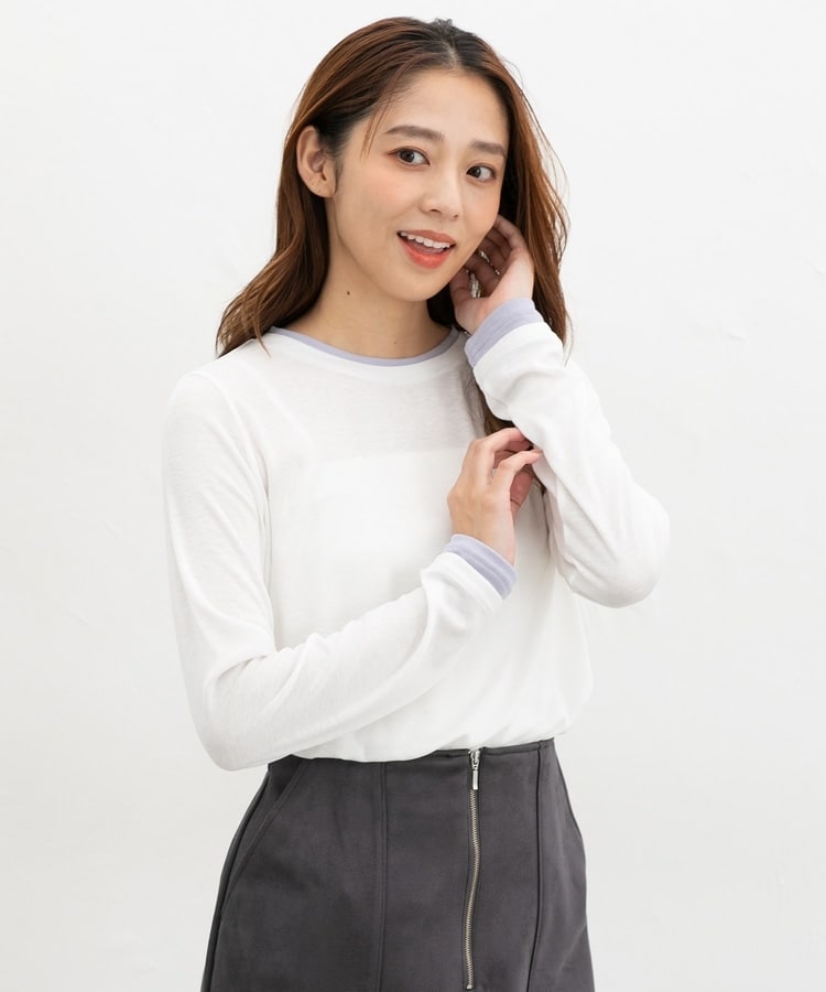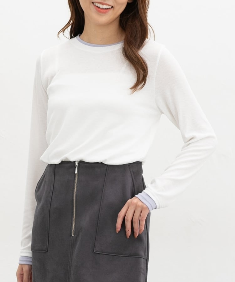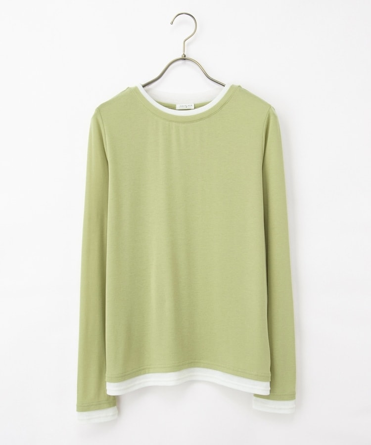 Tシャツを2枚重ねたような配色使いで、1枚で簡単に旬顔スタイルが作れるお洒落なデザイン。