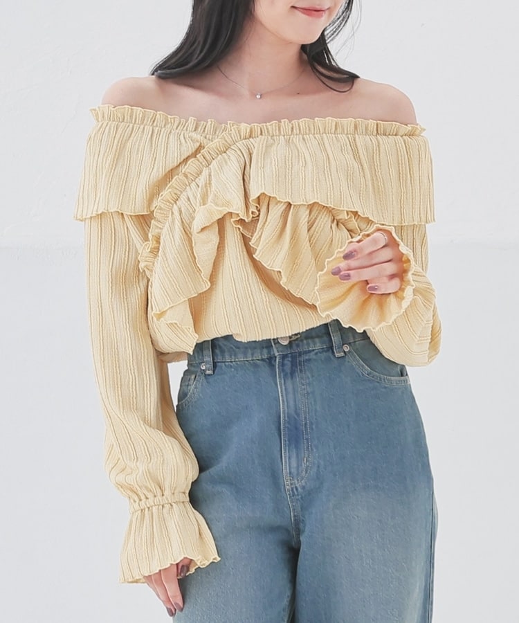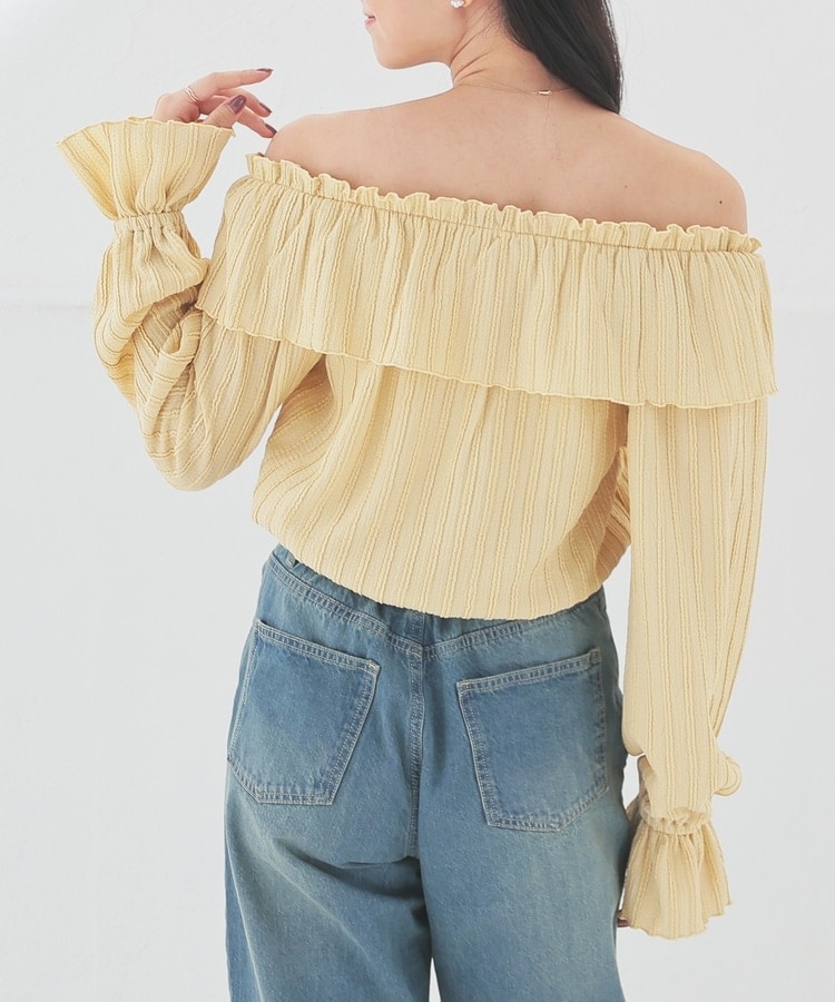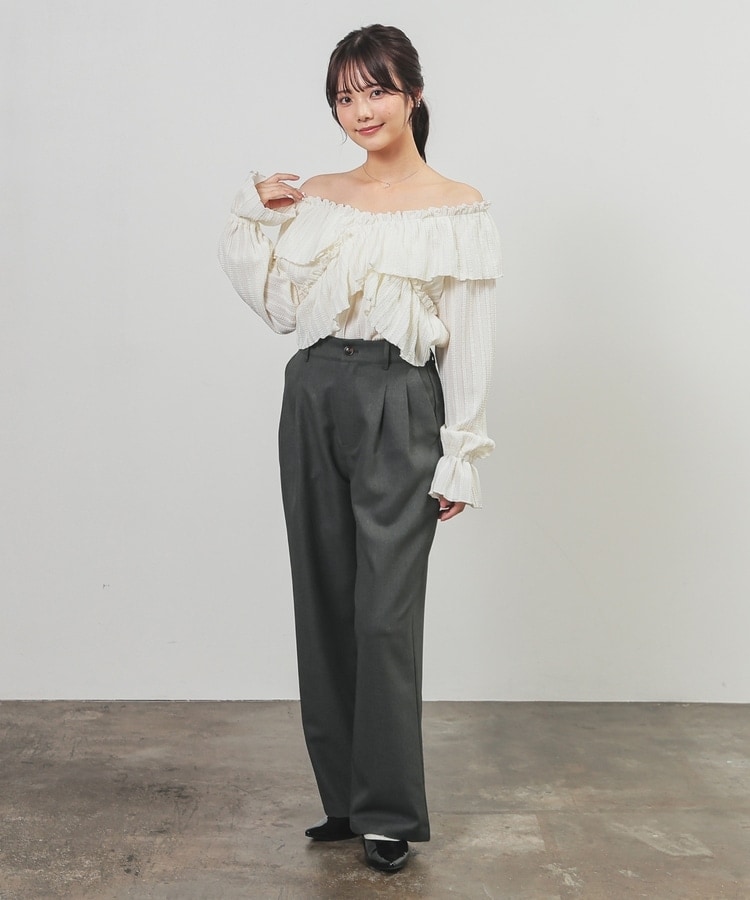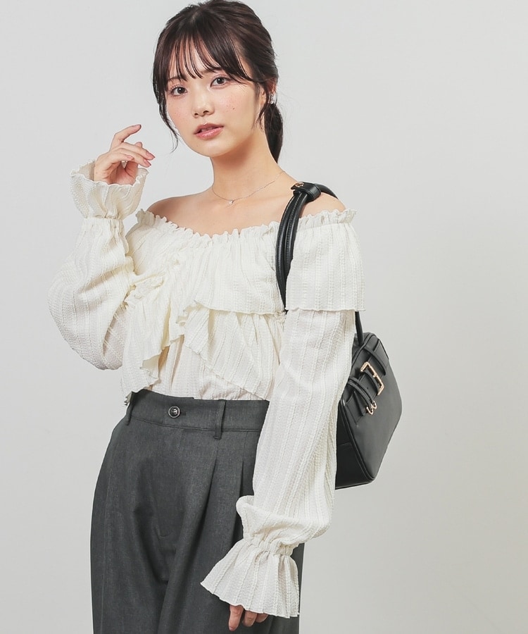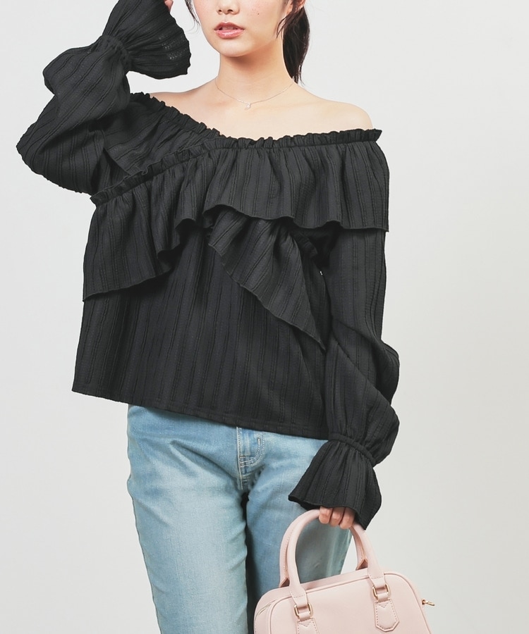 首元すっきりのVネックと肩を落としたオフショルの2wayで着られるデザイン。