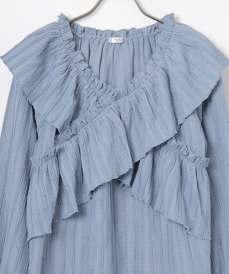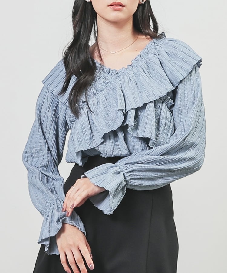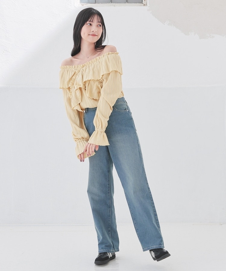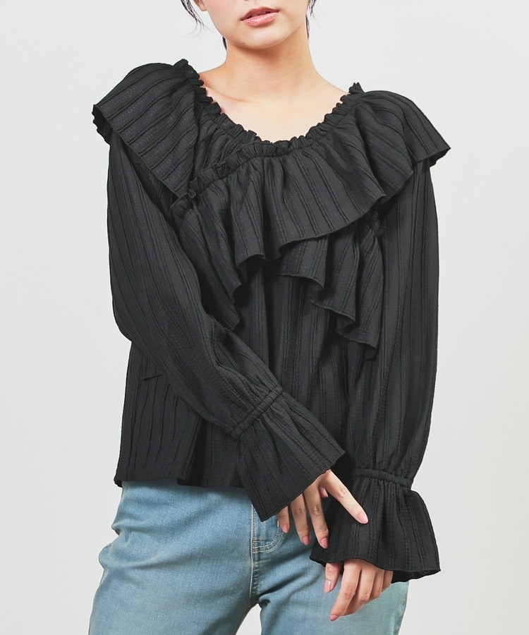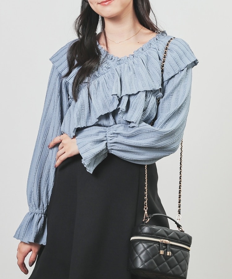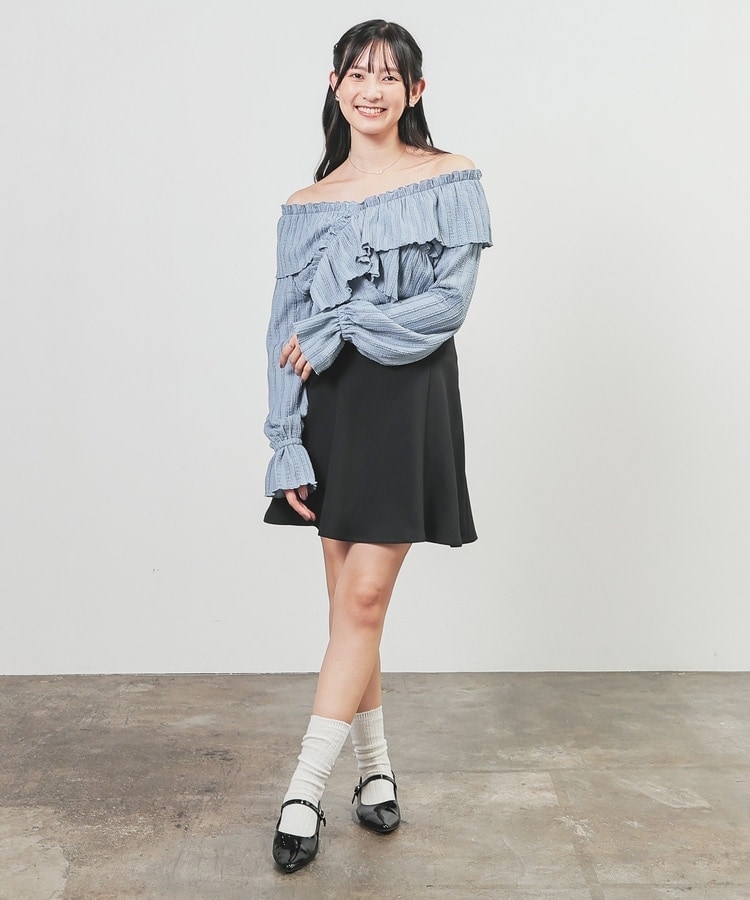 首元すっきりのVネックと肩を落としたオフショルの2wayで着られるデザイン。