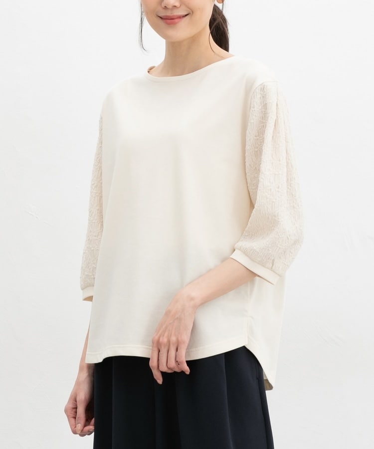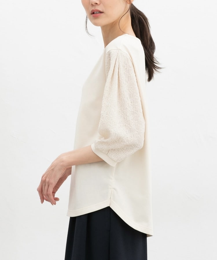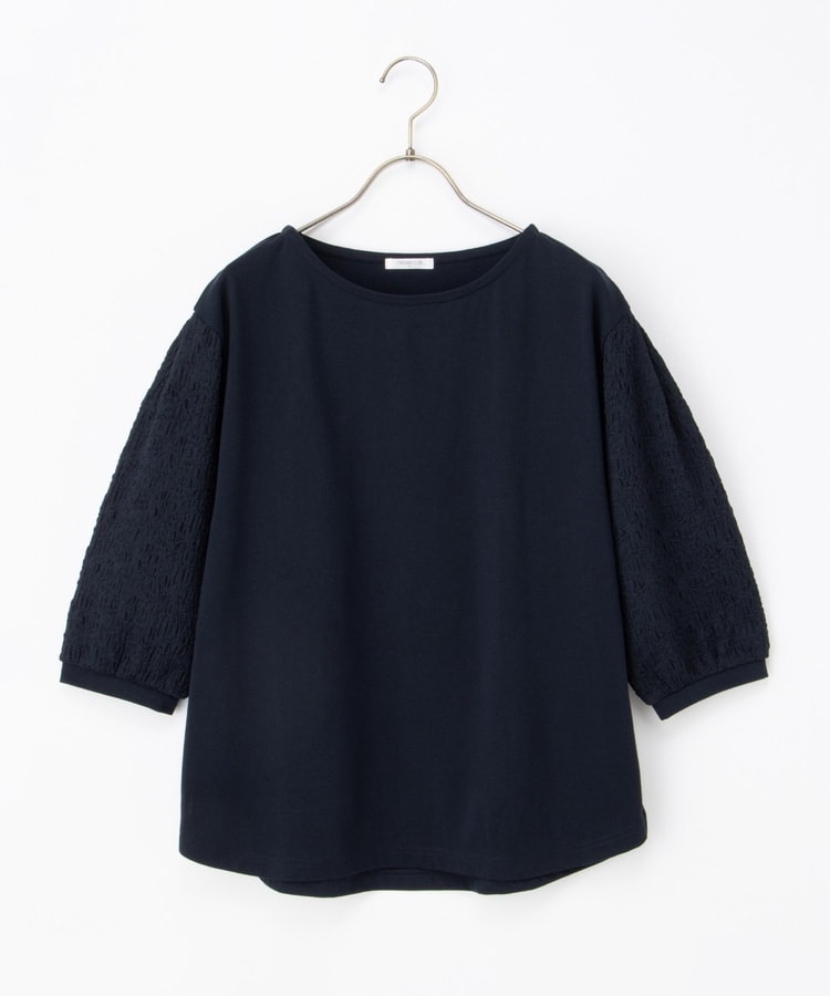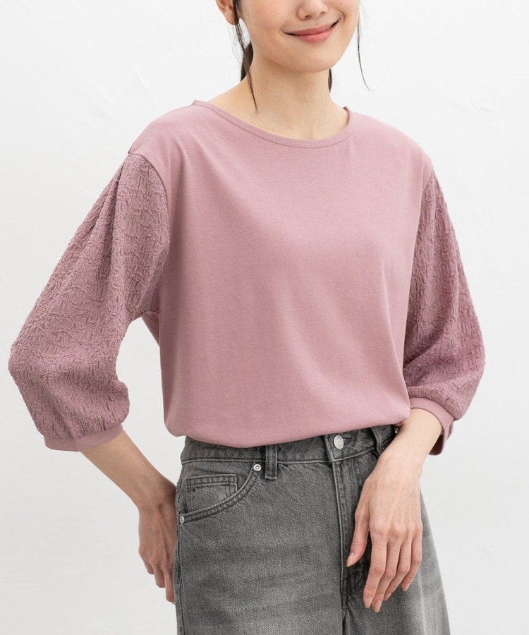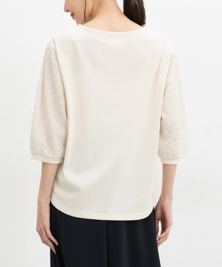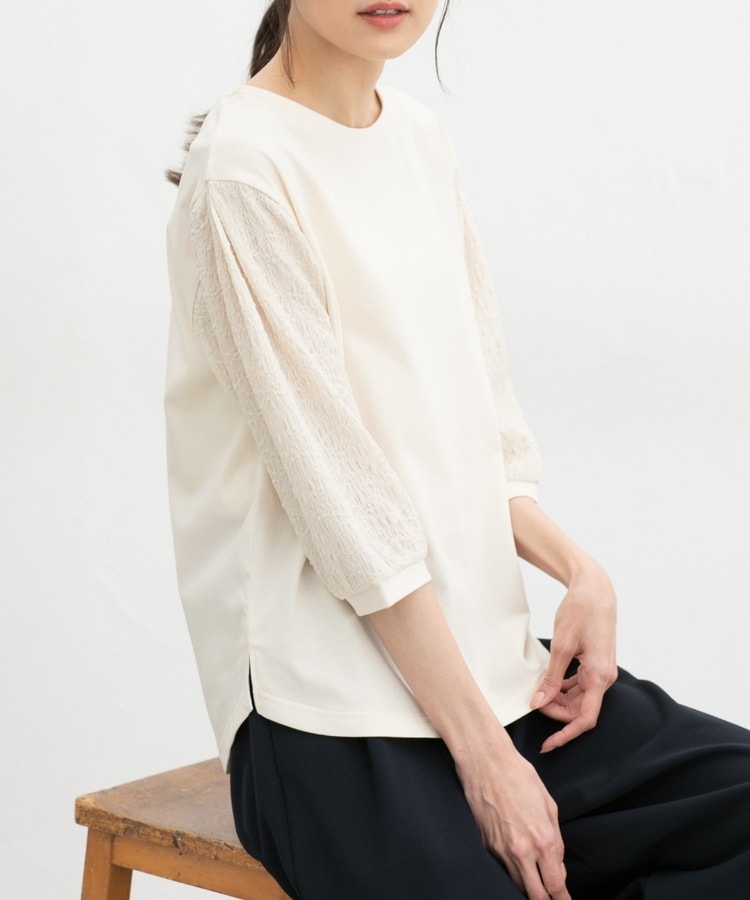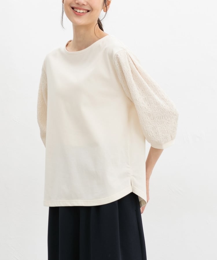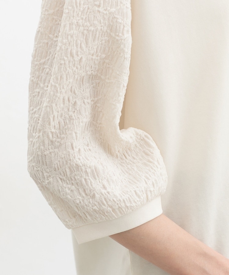 ポコポコした表面感のふんわり袖が大人可愛いデザイン。