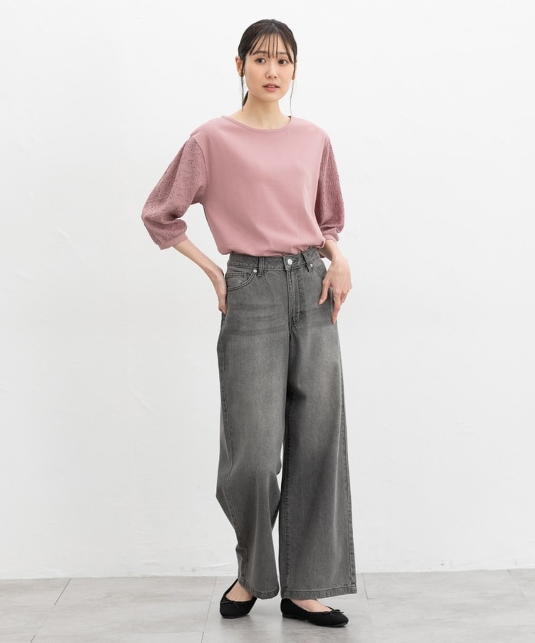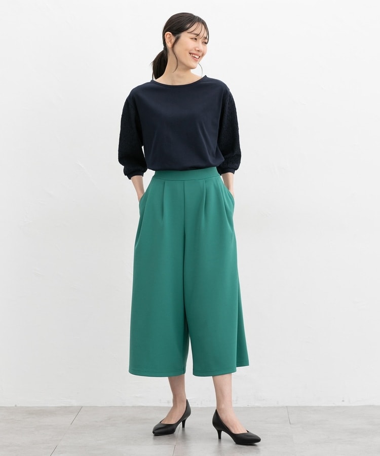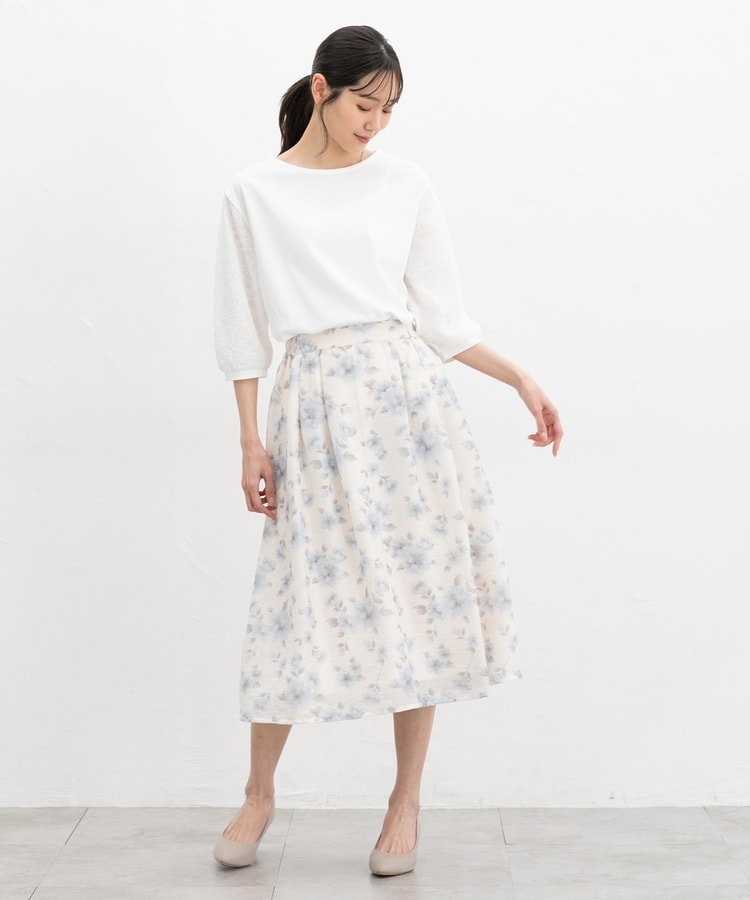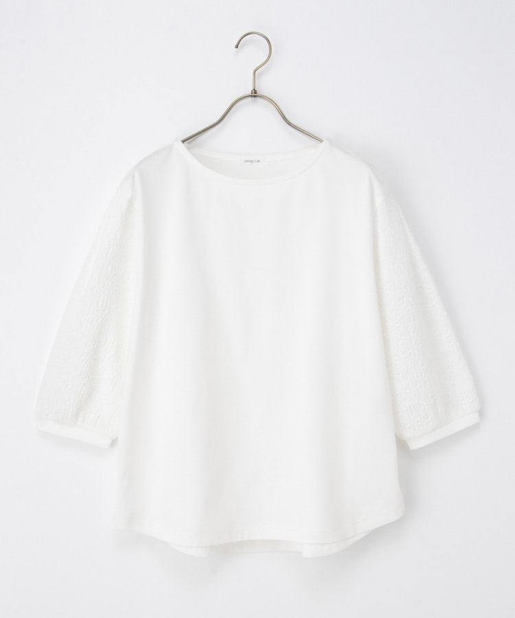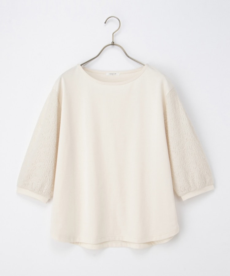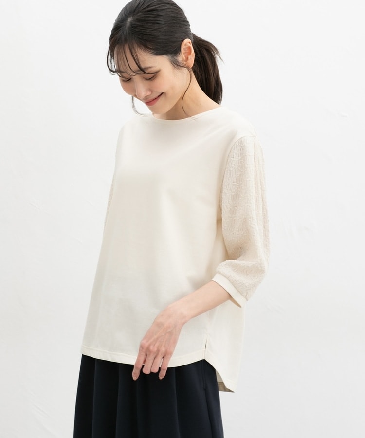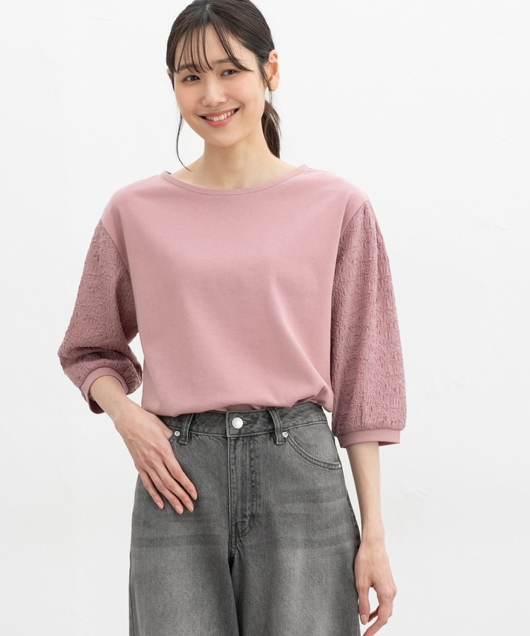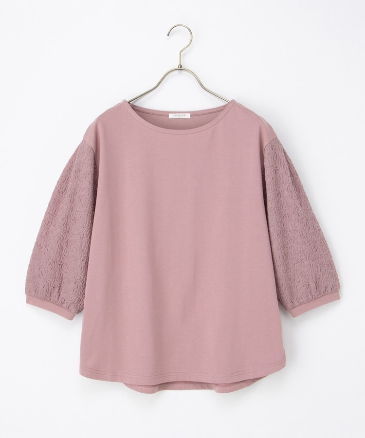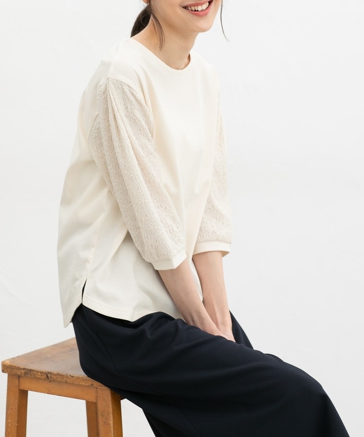 ポコポコした表面感のふんわり袖が大人可愛いデザイン。