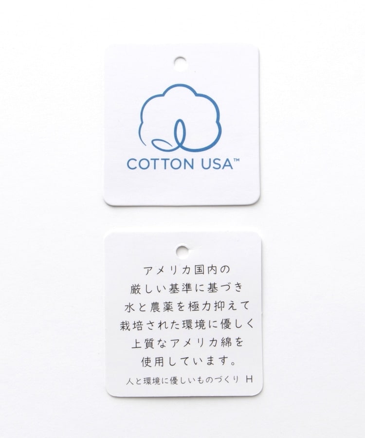身頃は、人にも環境にも優しい、高品質なUSAコットンを使用した、ほどよいハリ感でサラリとした肌触りの綿混素材。
