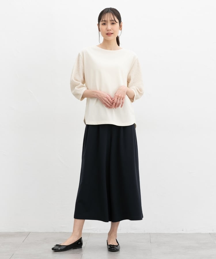 ゆったりめの幅と腰回りが隠れる丈感で体型もカバー。