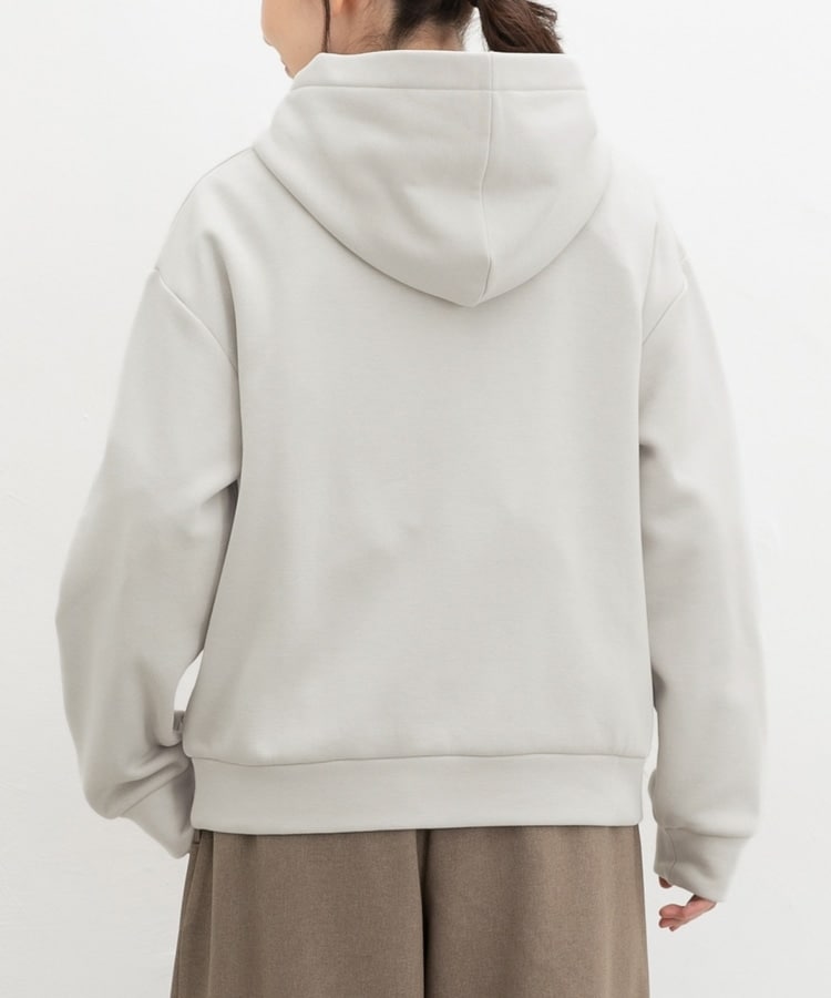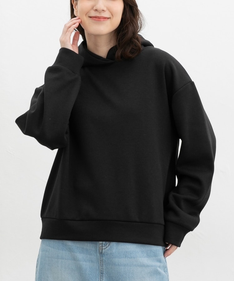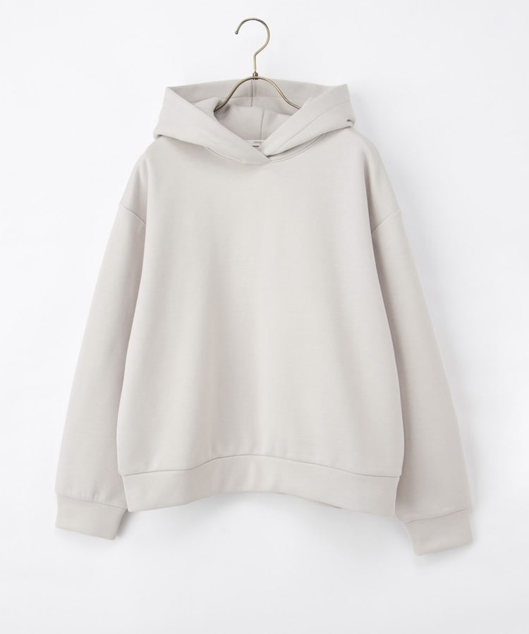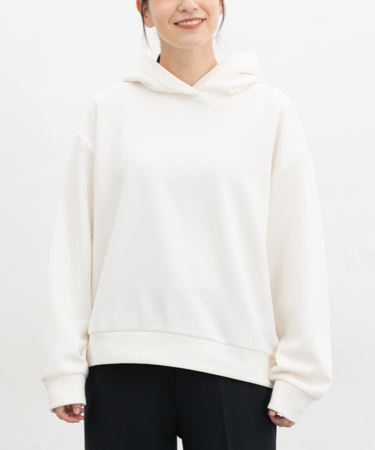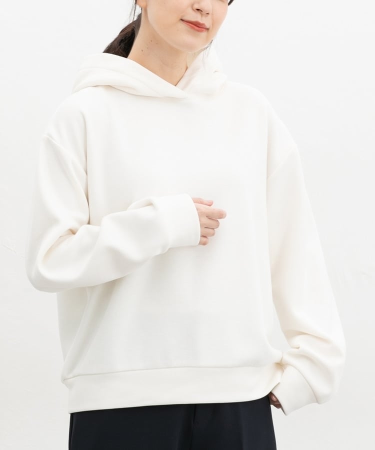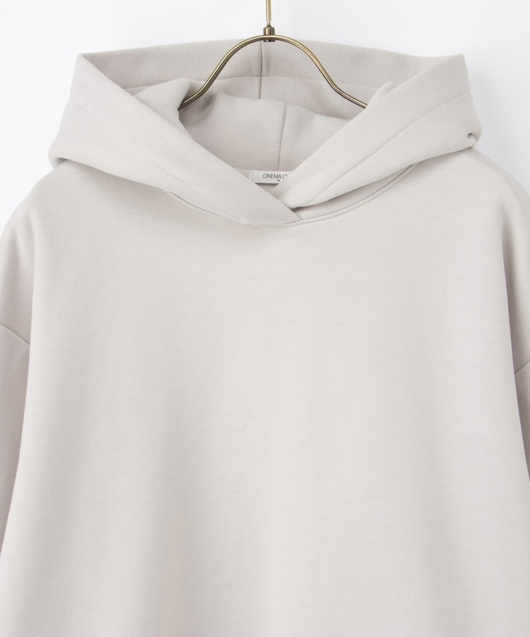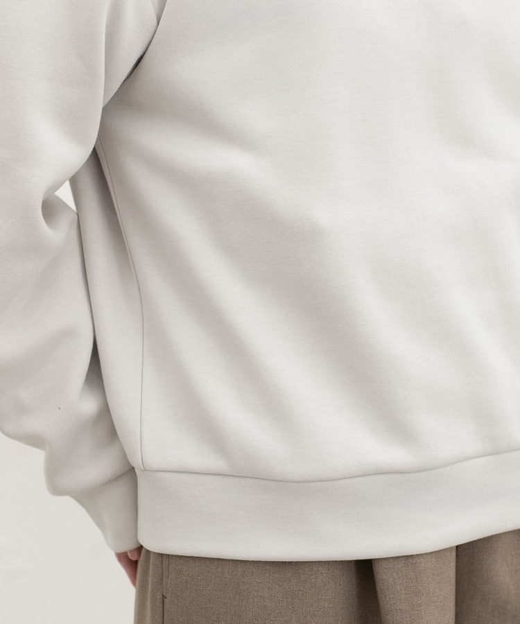 表面は滑らかなレーヨン混のきれいめスウェット素材。