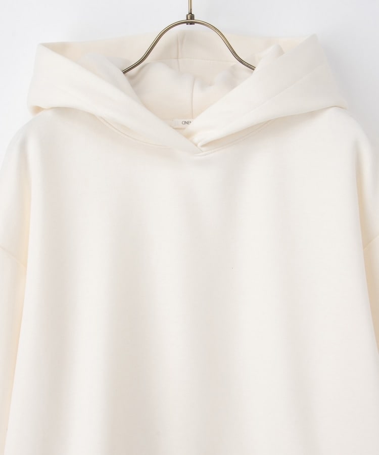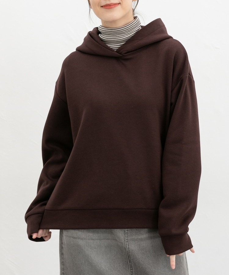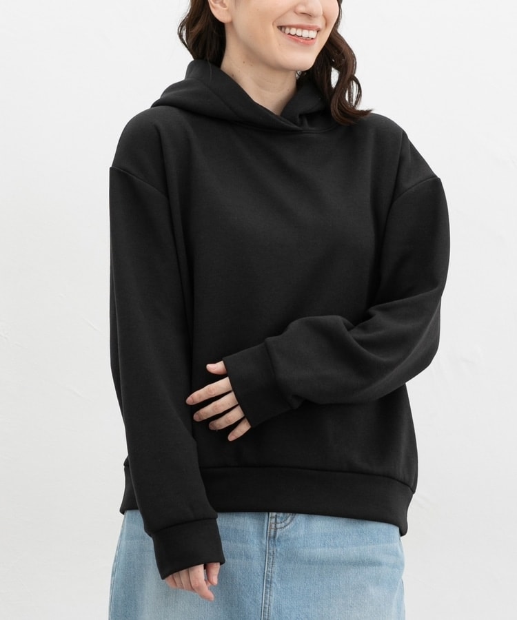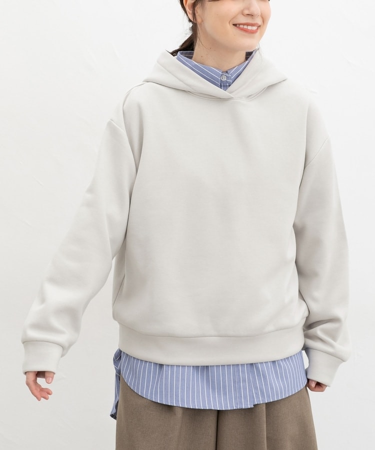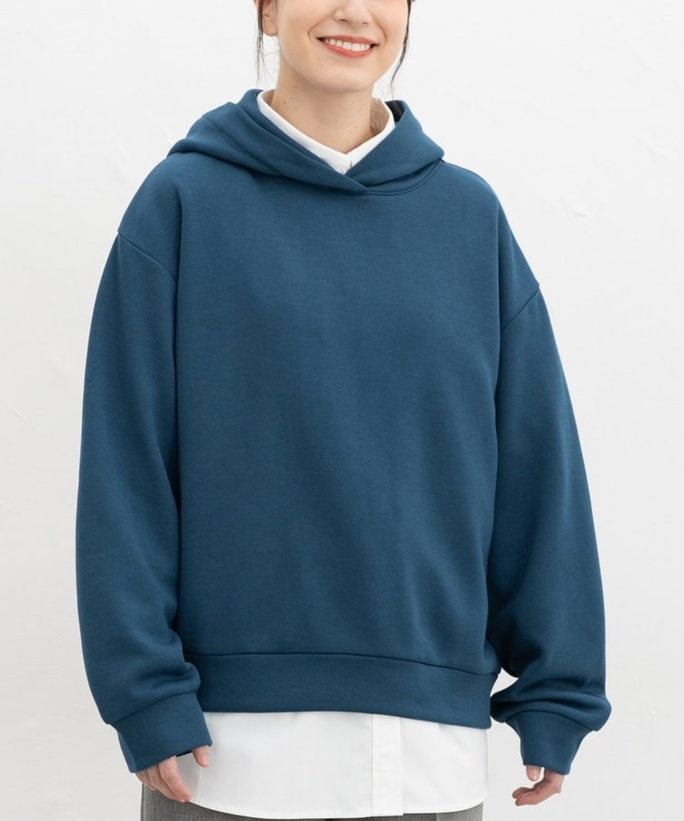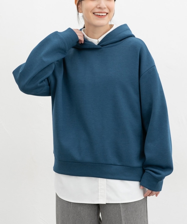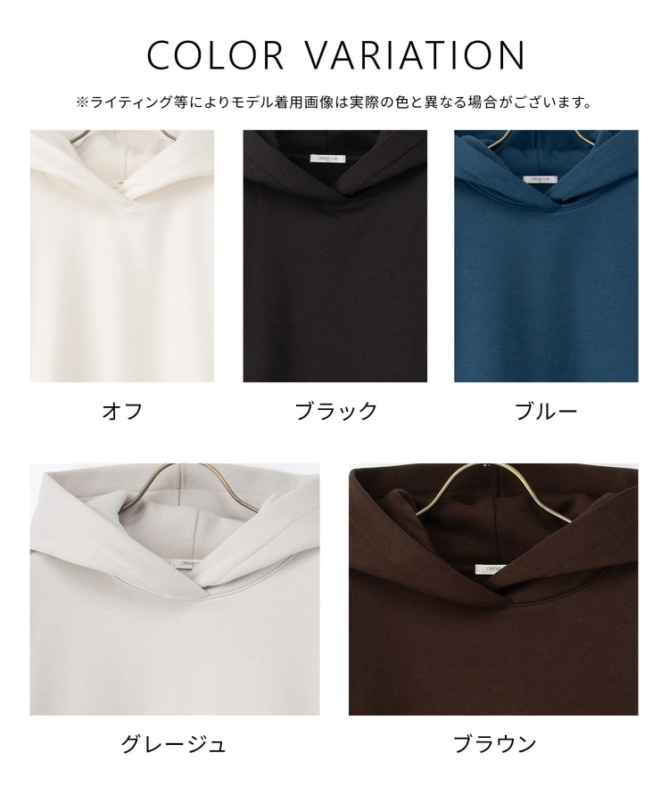 表面は滑らかなレーヨン混のきれいめスウェット素材。