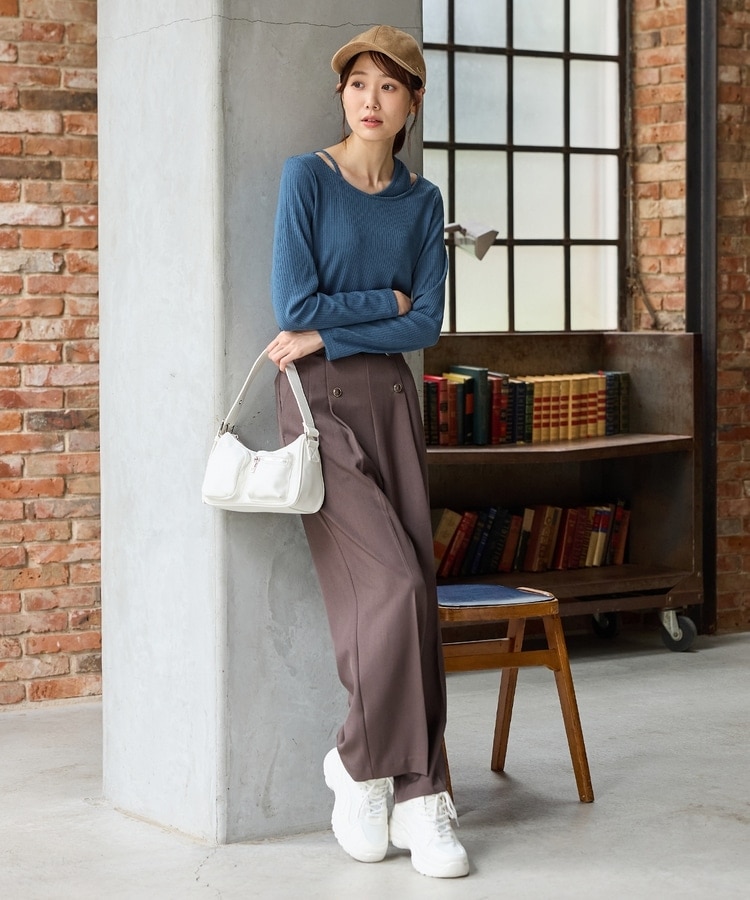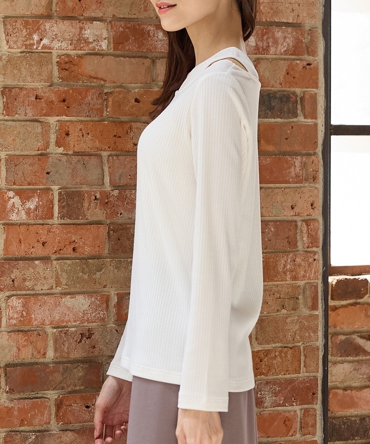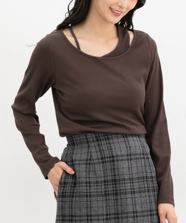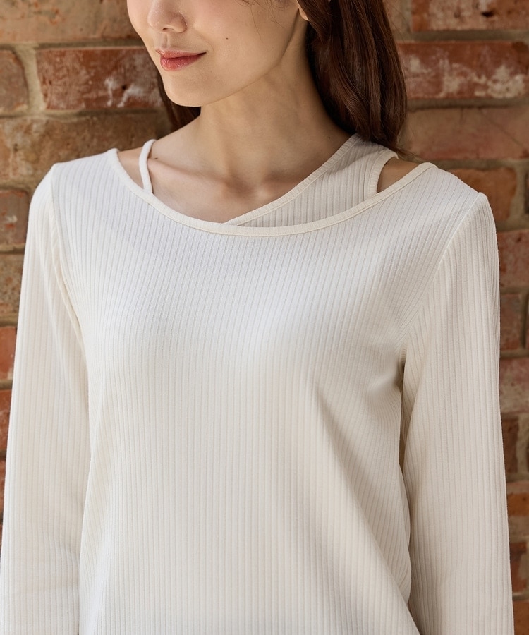1枚でレイヤード風の着こなしが楽しめお洒落見えが叶うデザイン。