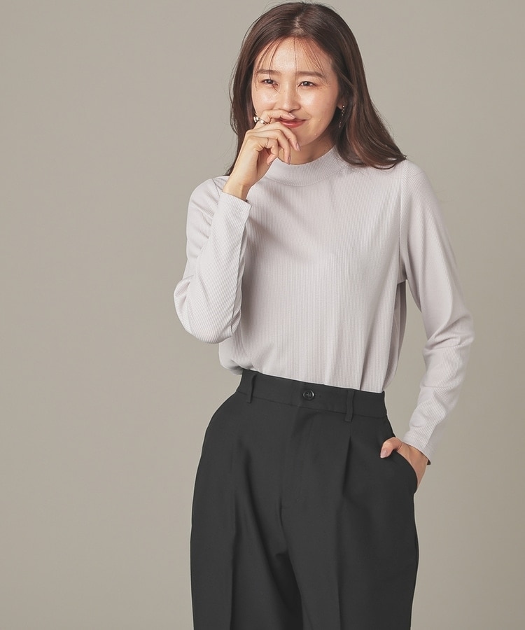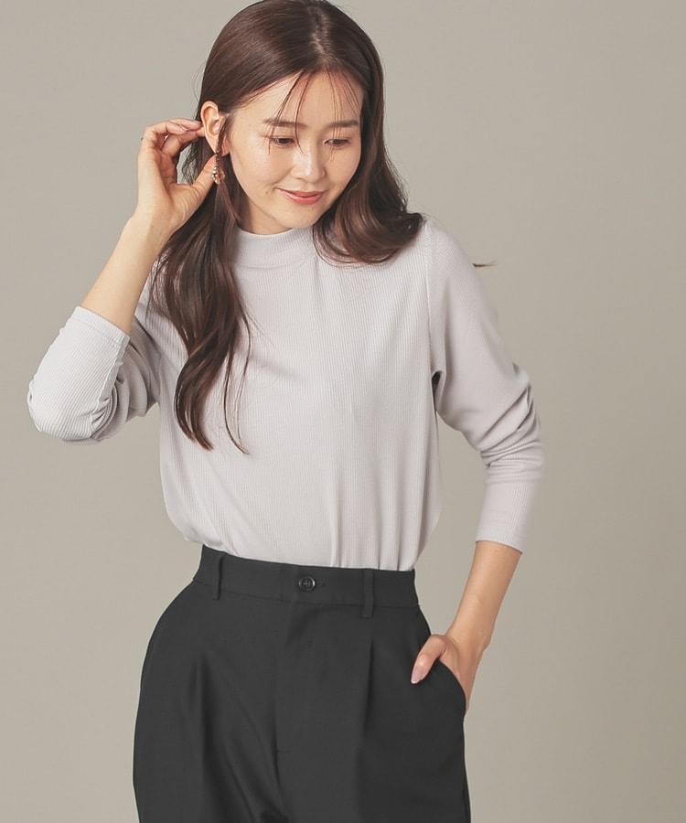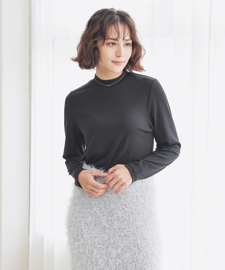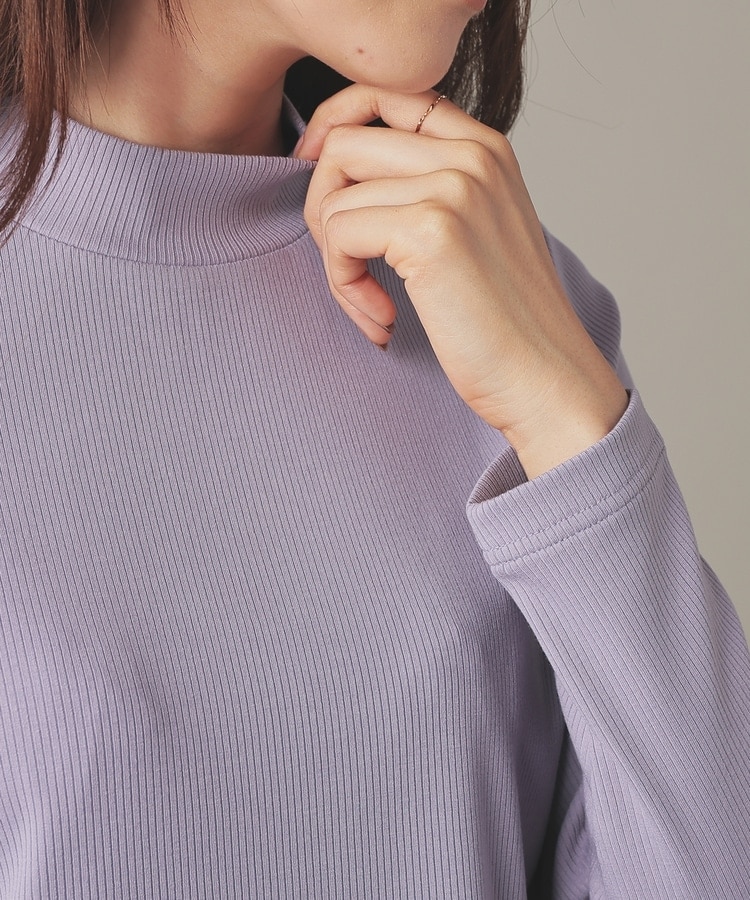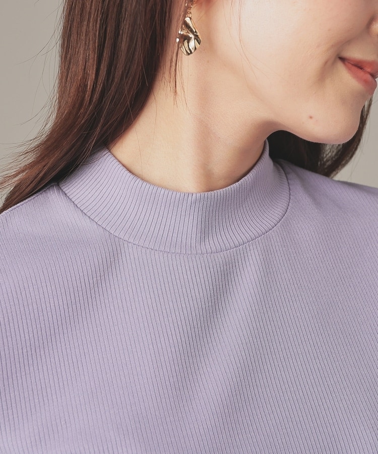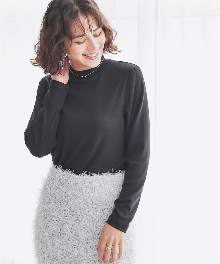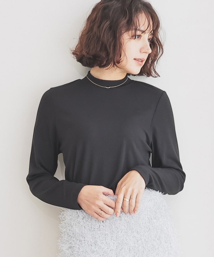 首の窮屈さを軽減した、高すぎないハイネックデザイン。