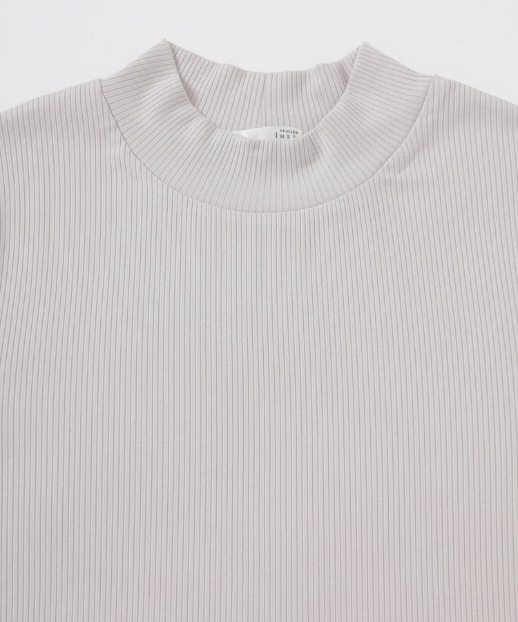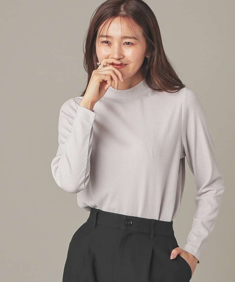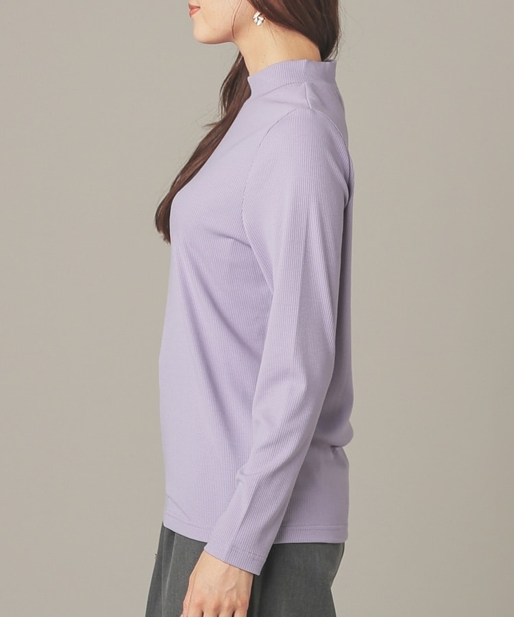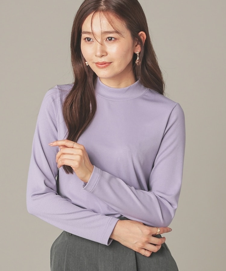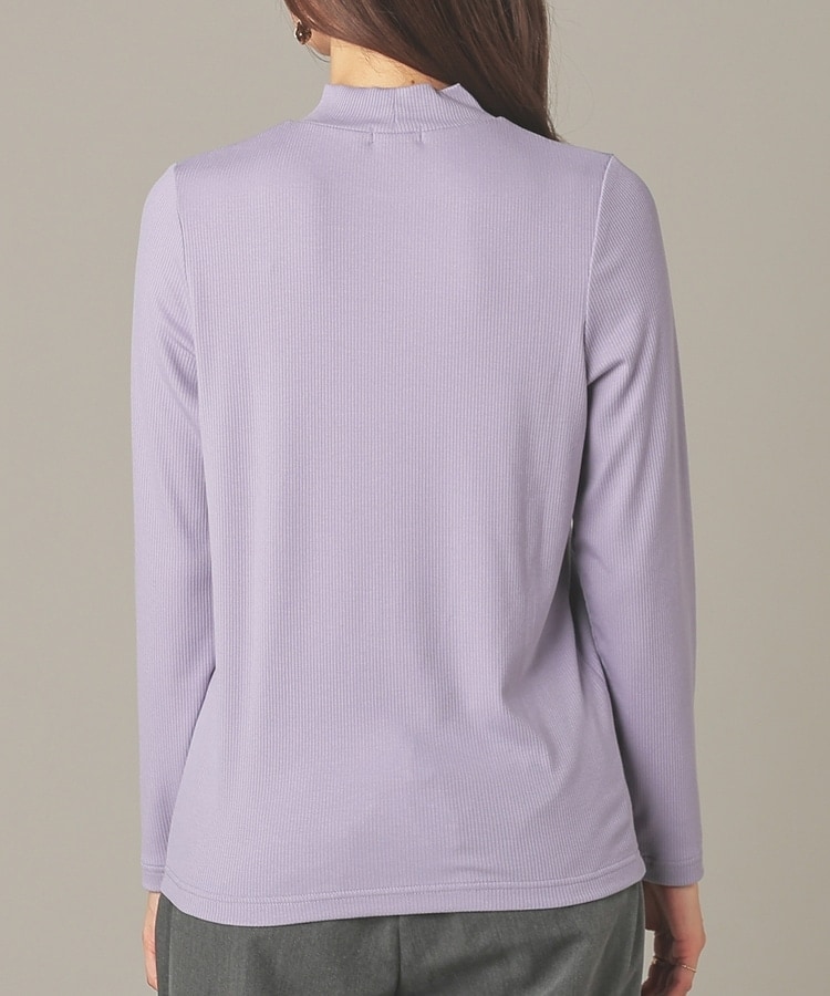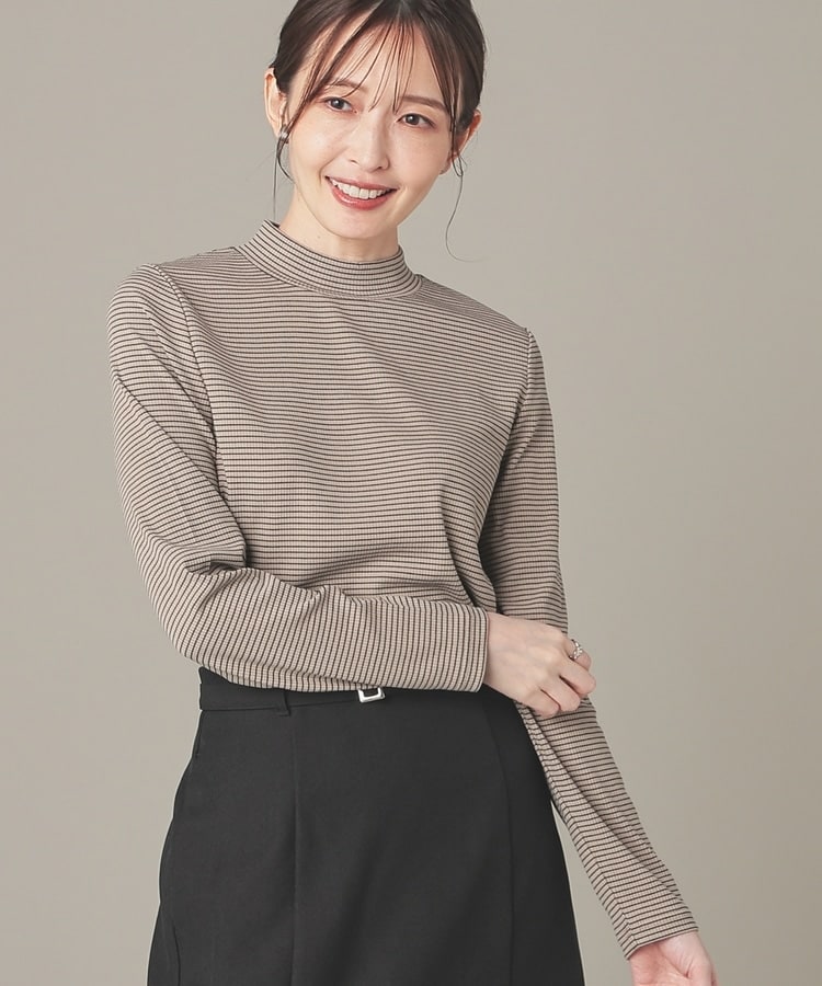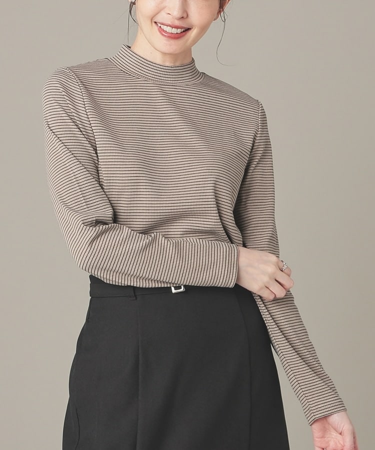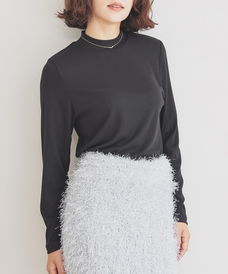 首の窮屈さを軽減した、高すぎないハイネックデザイン。
