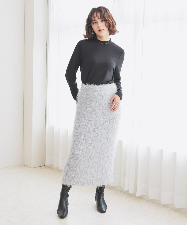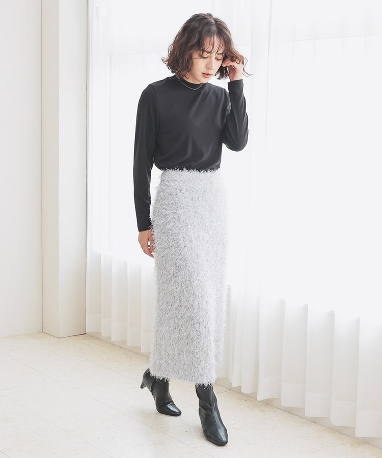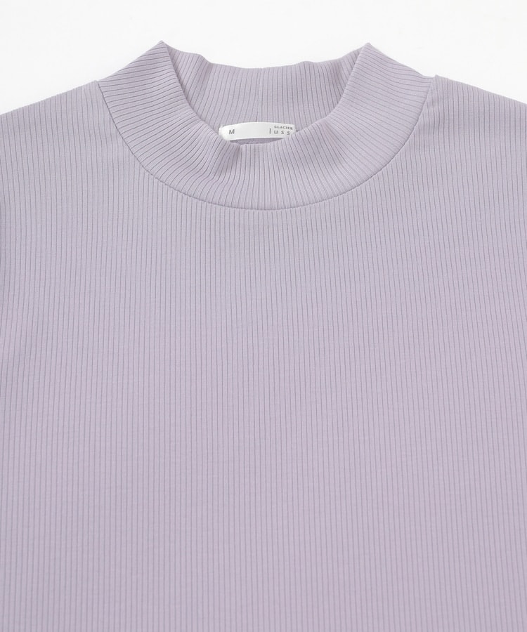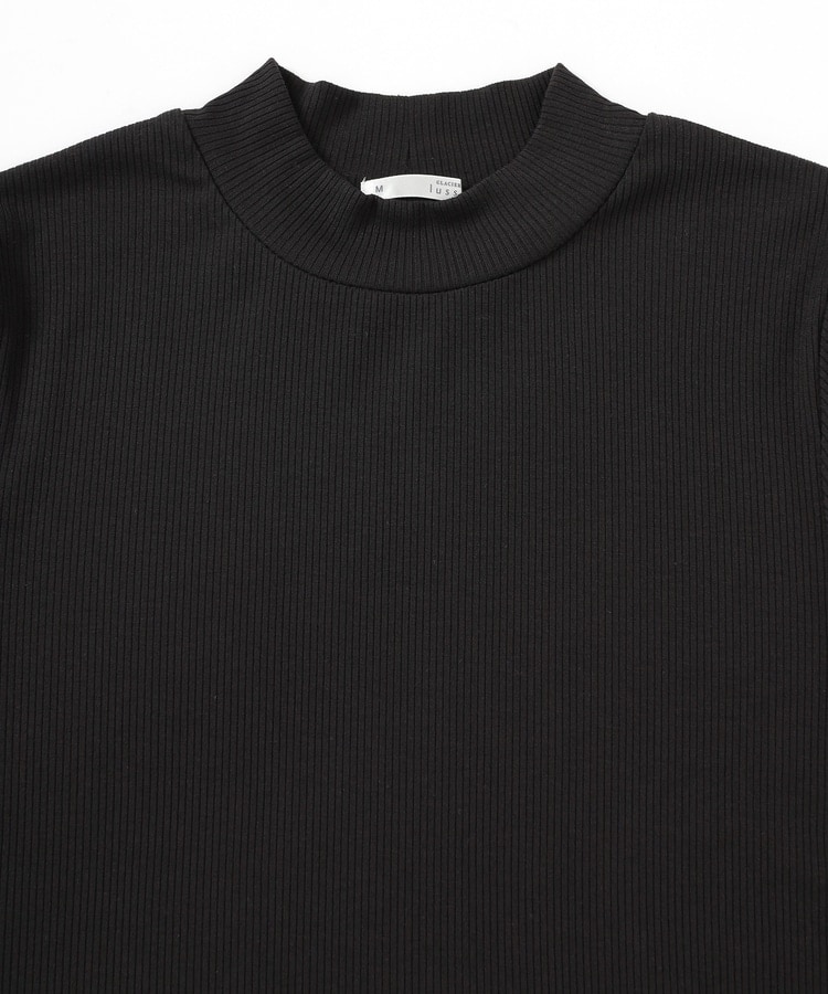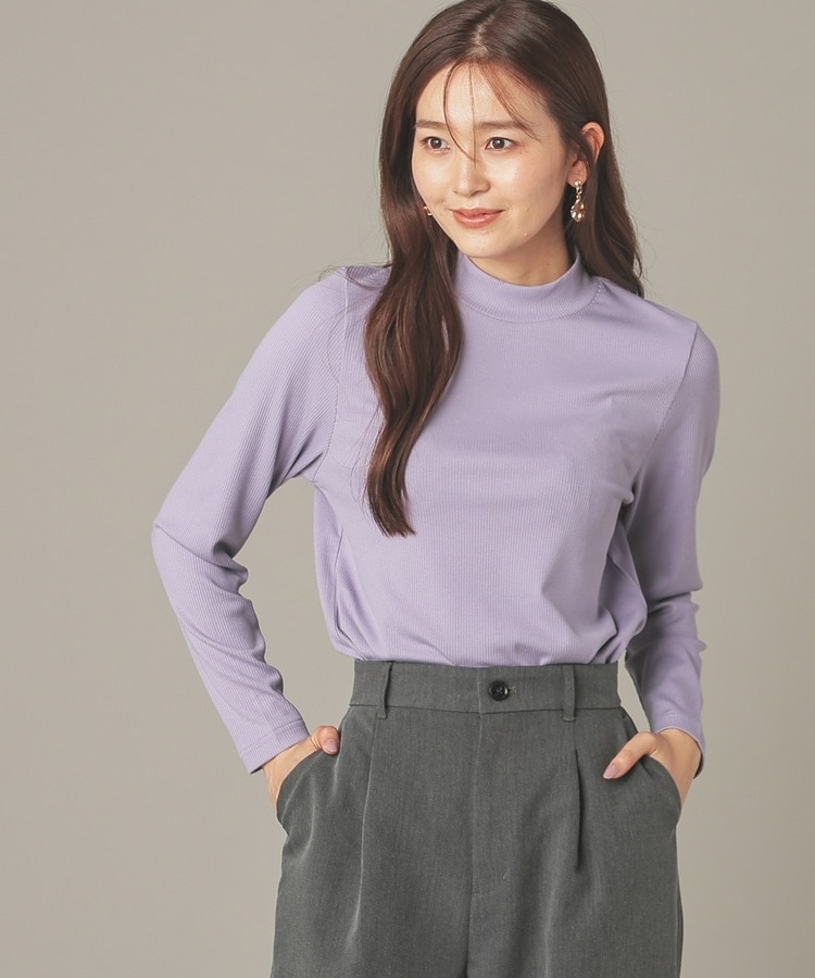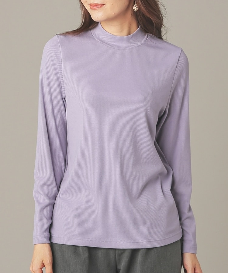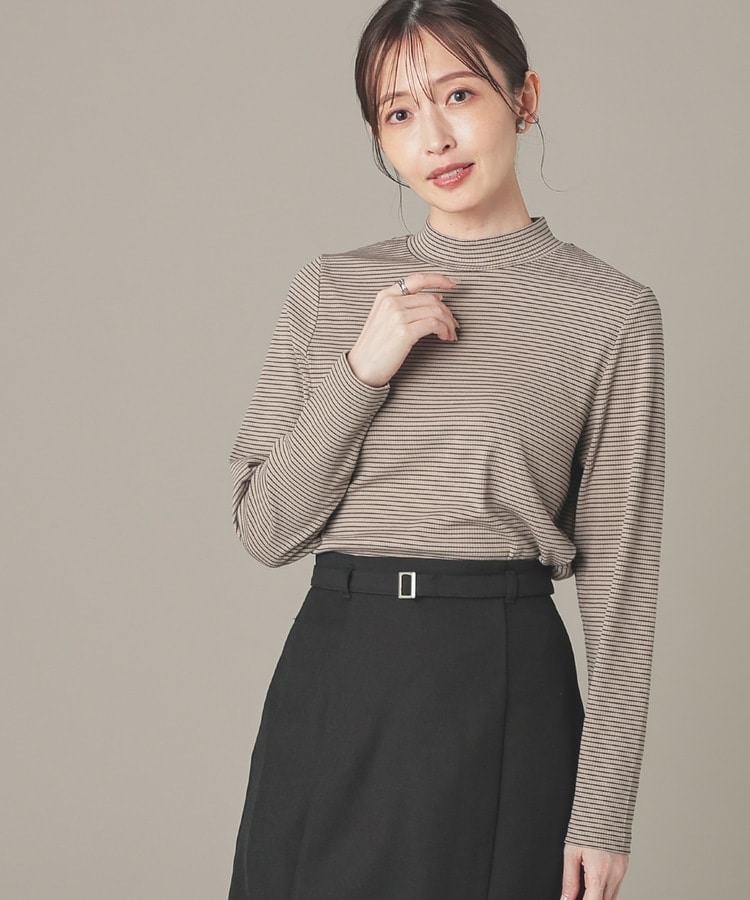 首の窮屈さを軽減した、高すぎないハイネックデザイン。