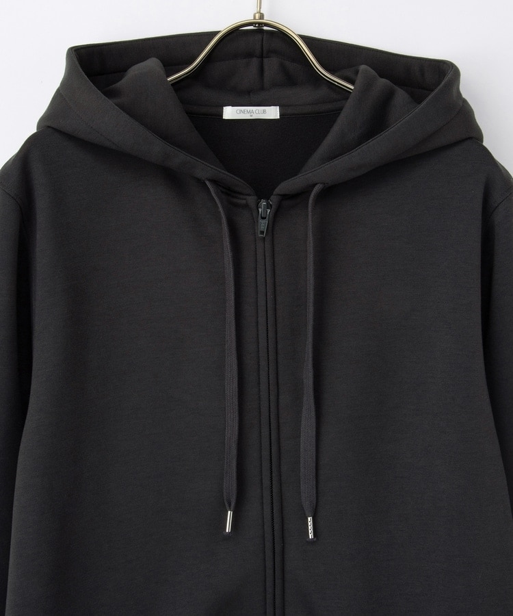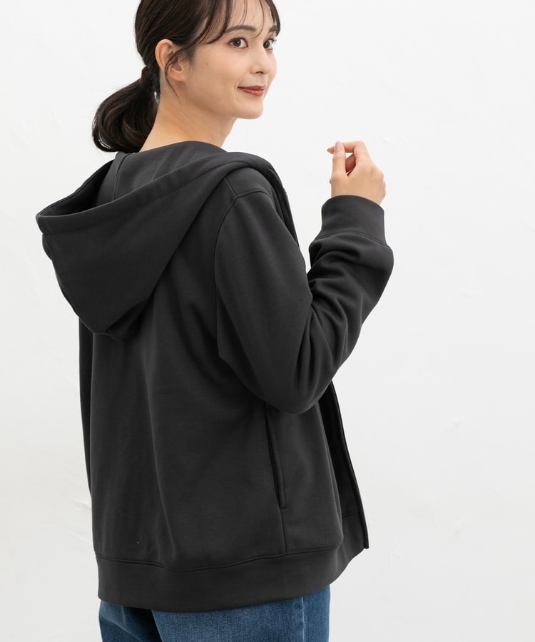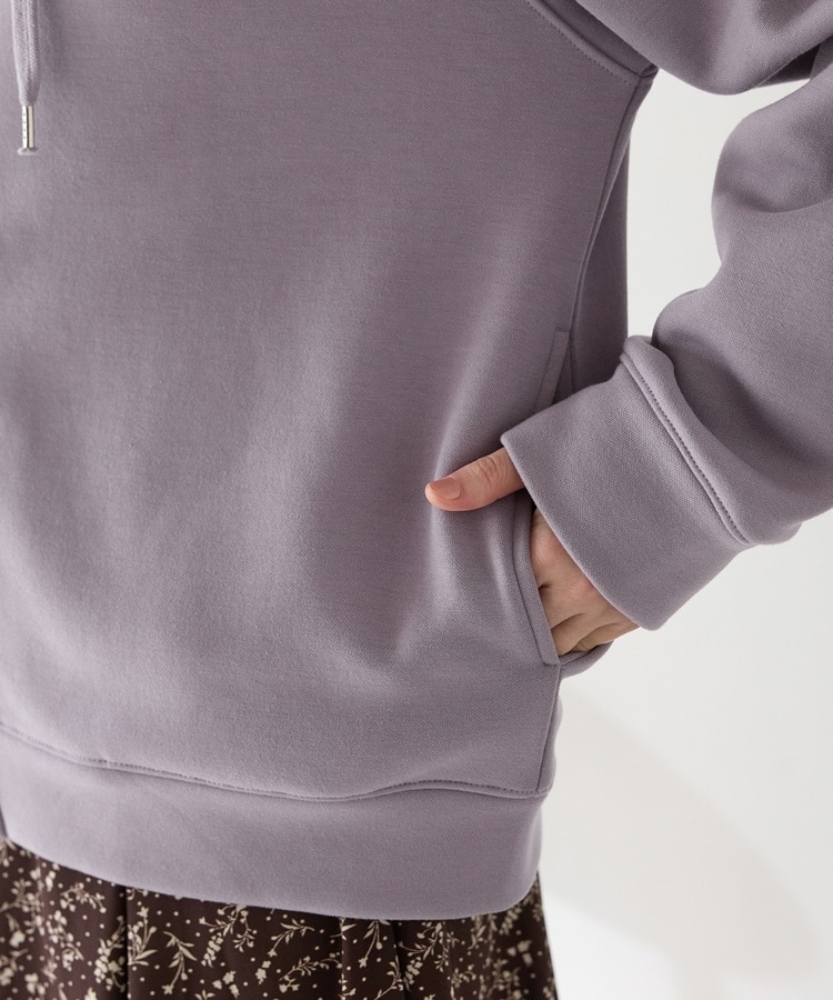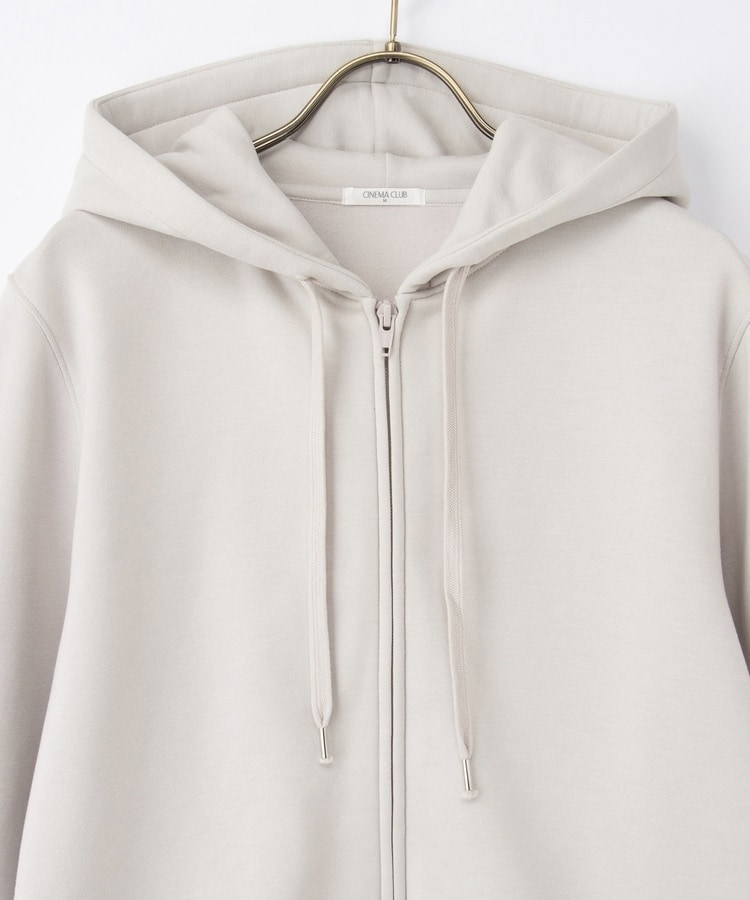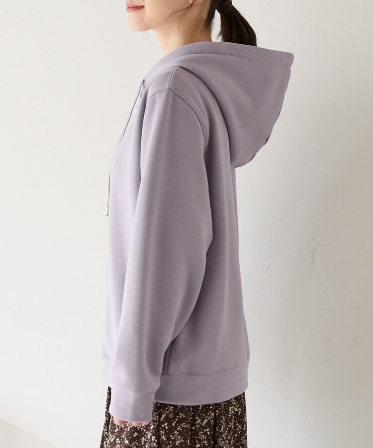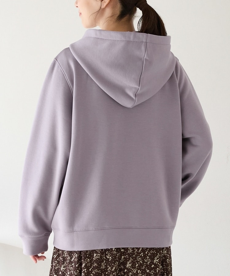 表面は滑らかなレーヨン混のきれいめスウェット素材。