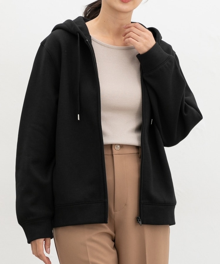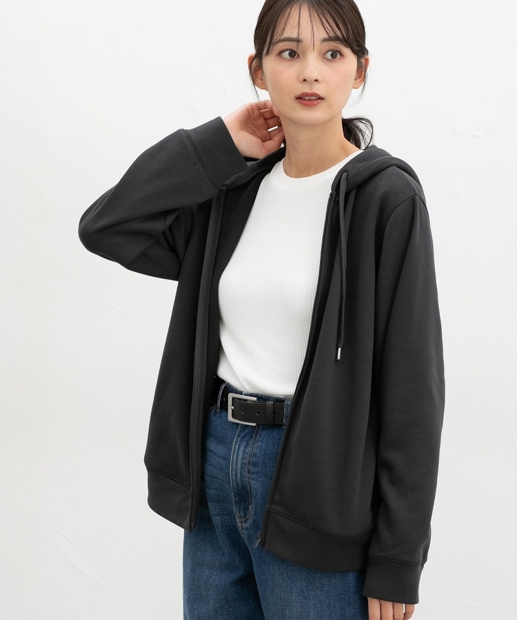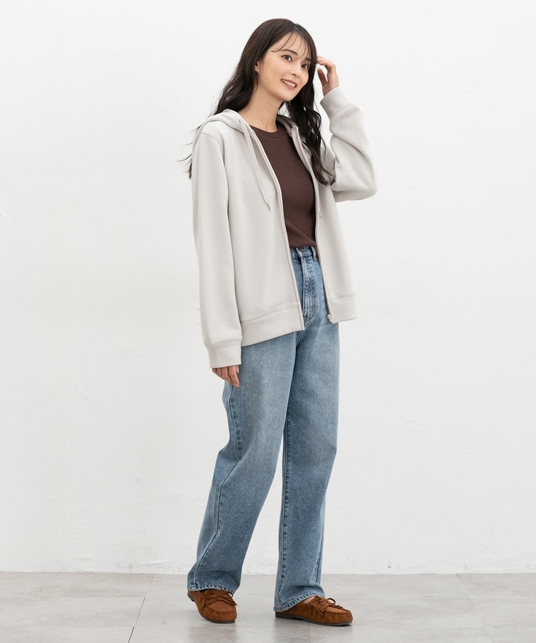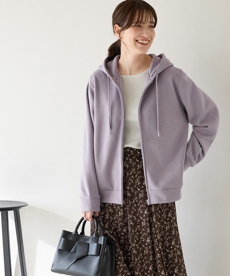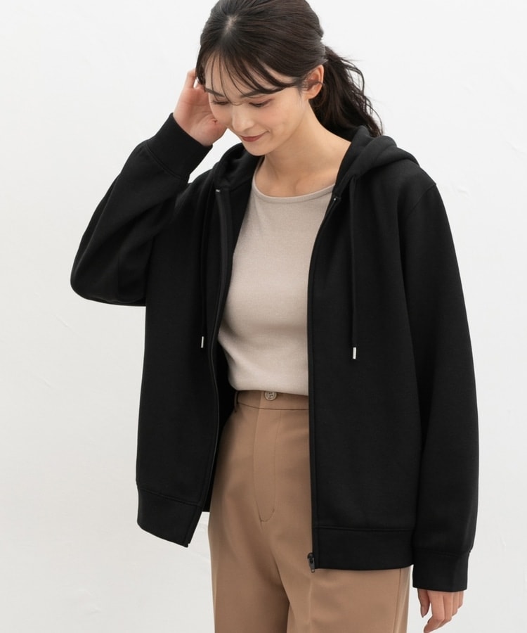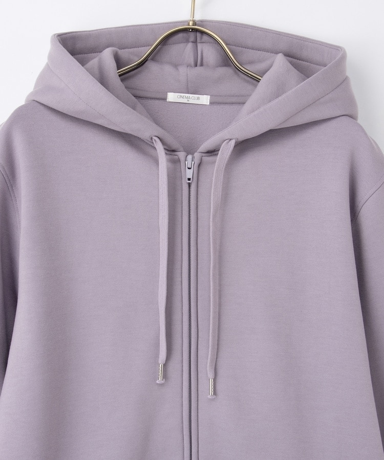 表面は滑らかなレーヨン混のきれいめスウェット素材。