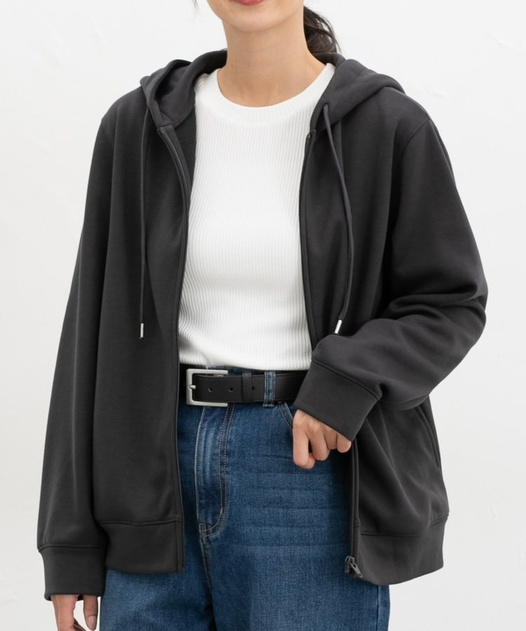 表面は滑らかなレーヨン混のきれいめスウェット素材。