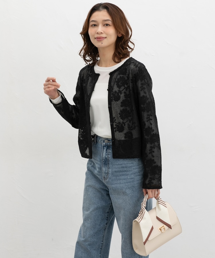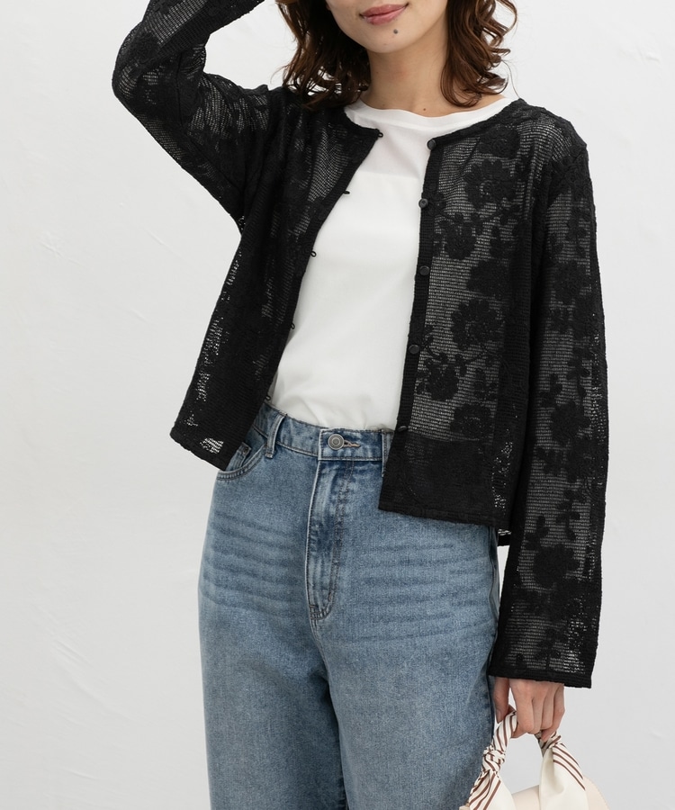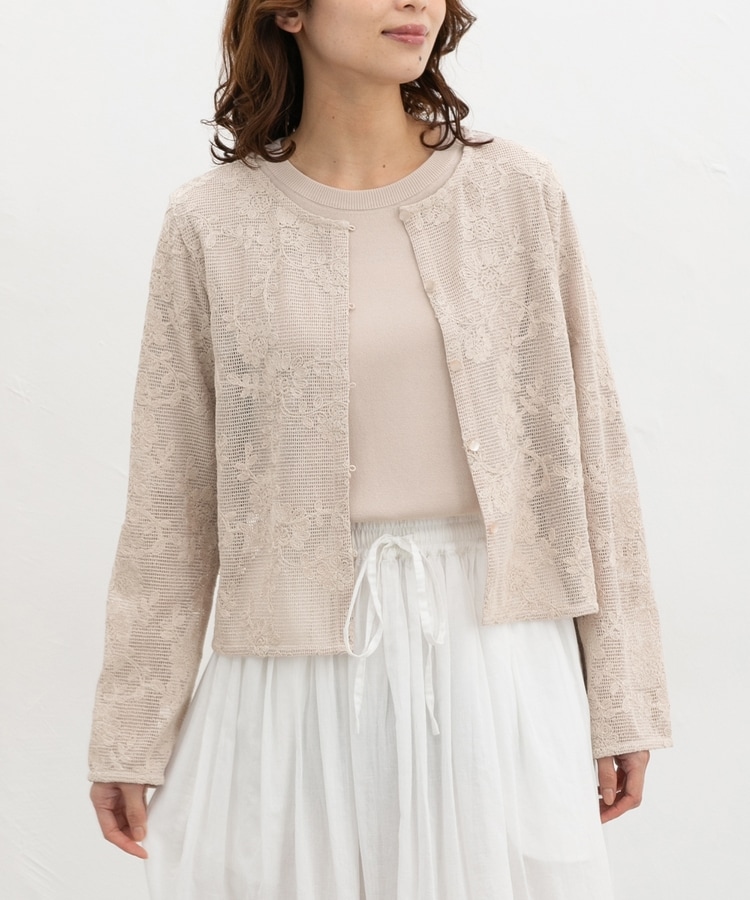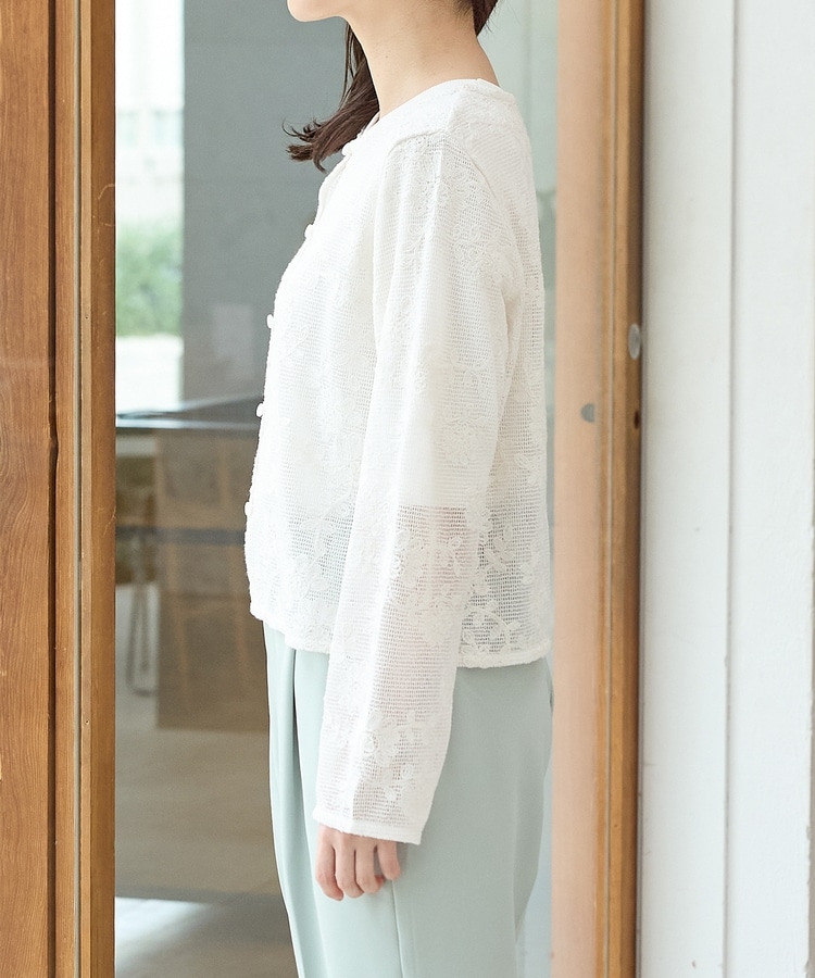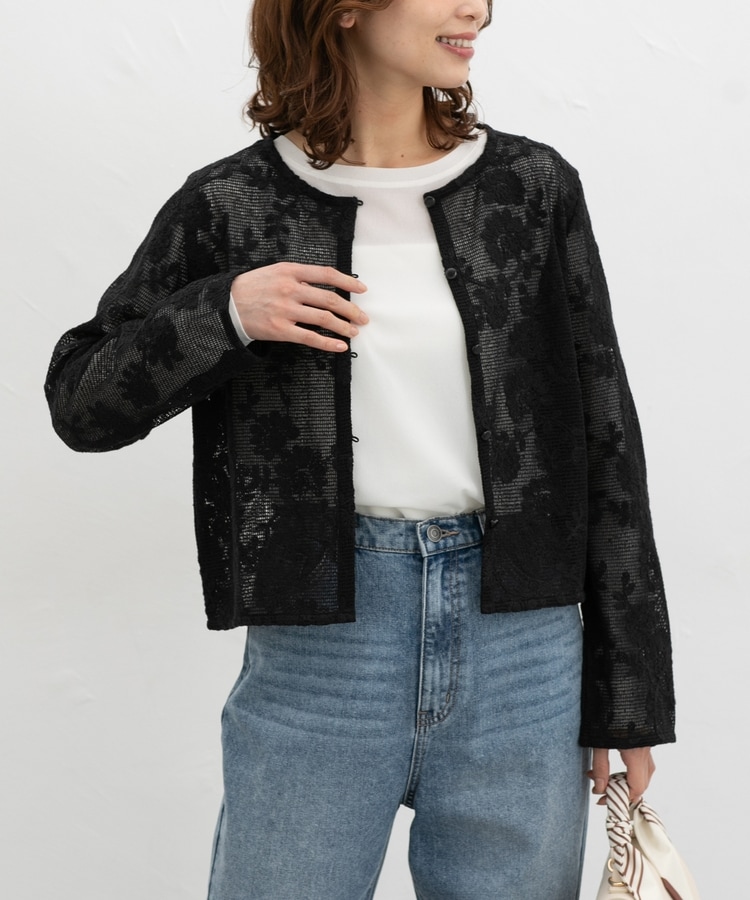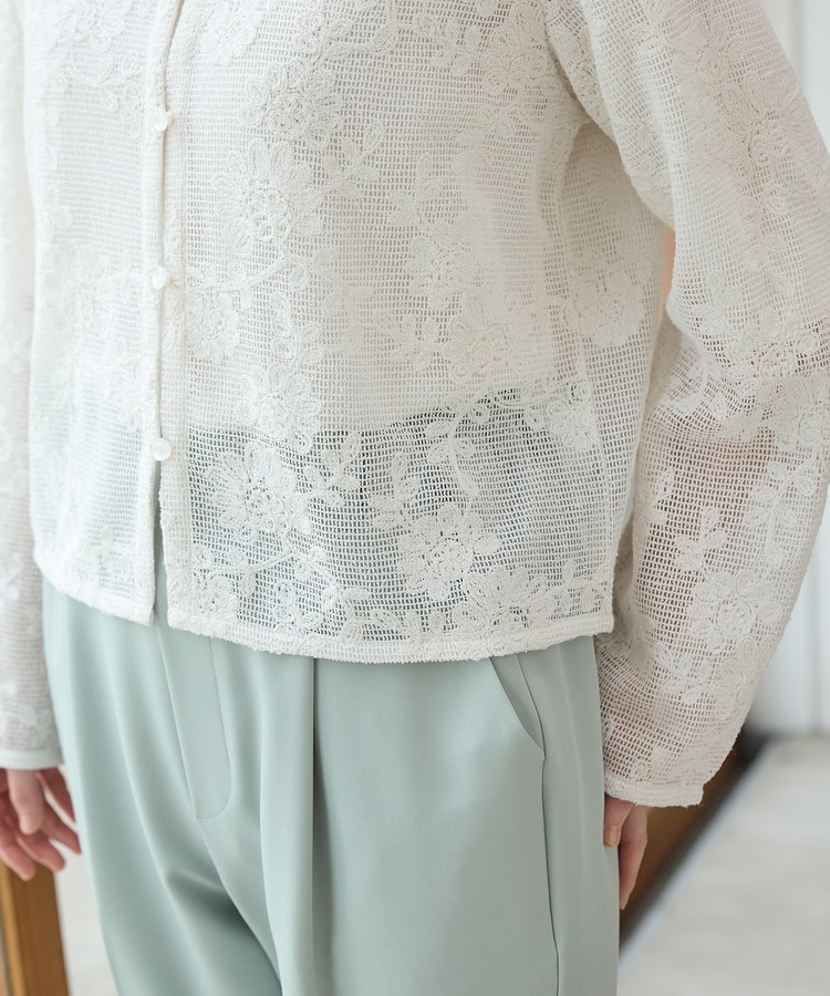 刺繍メッシュカーディガン