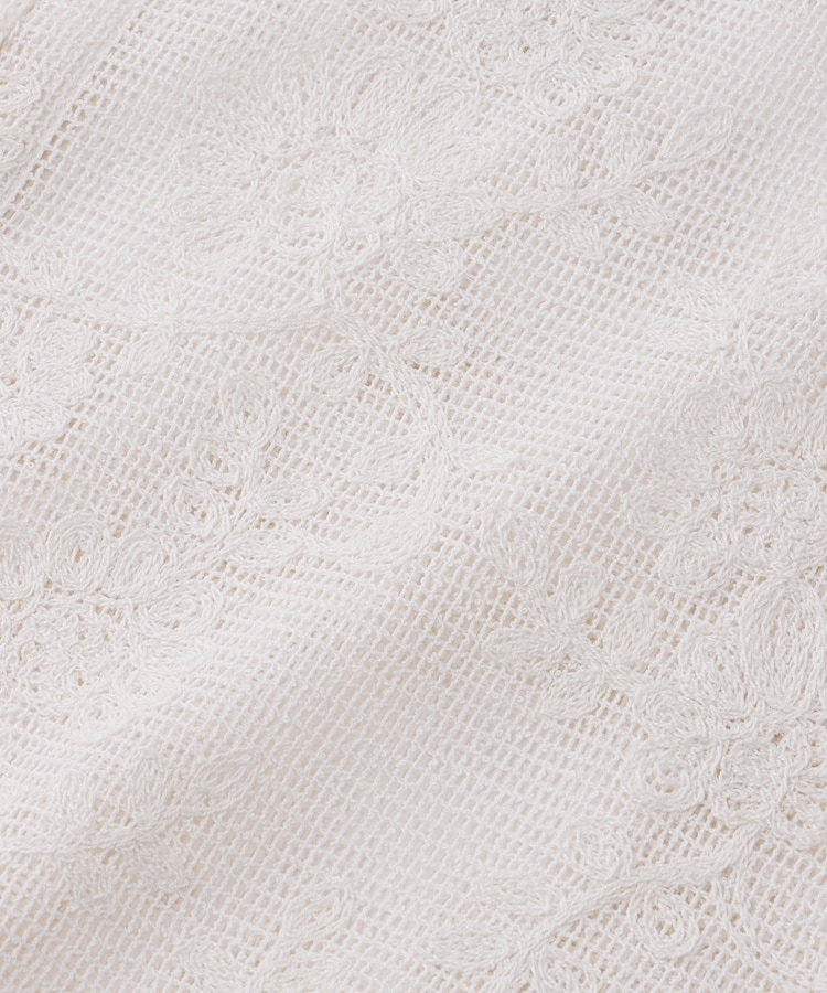 ヘルシーな肌見せが楽しめる程よい透け感と立体感のある花柄刺繍がフェミニンなデザイン。