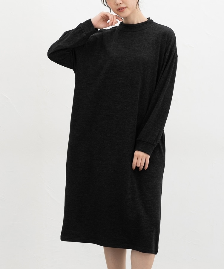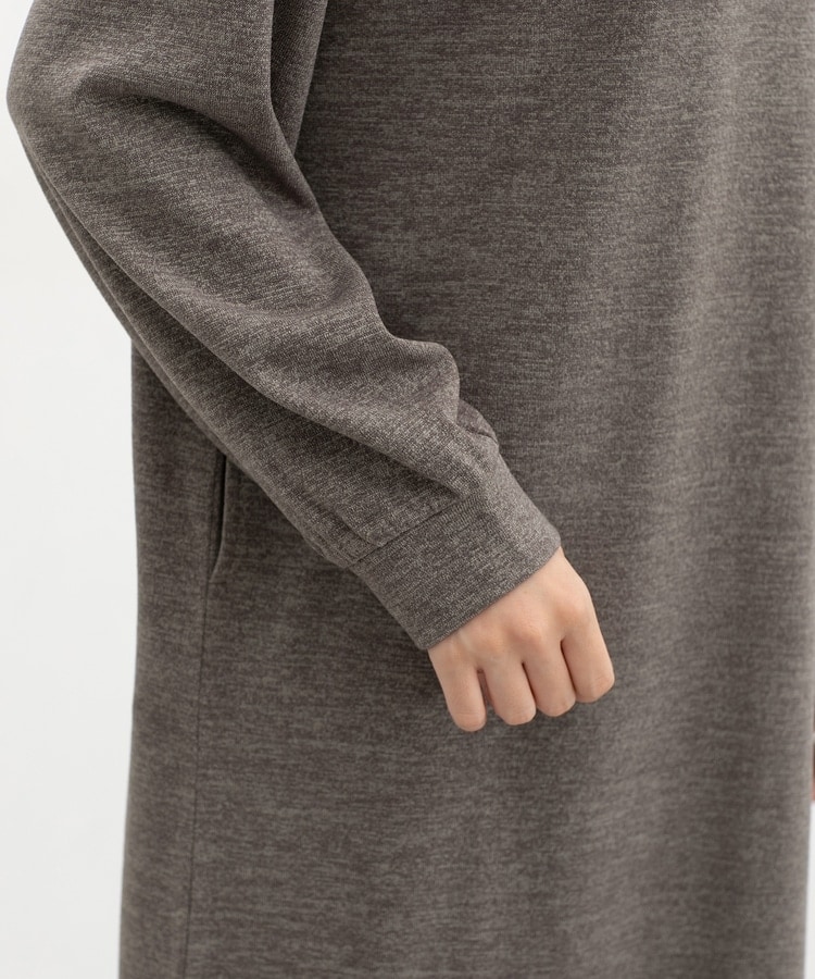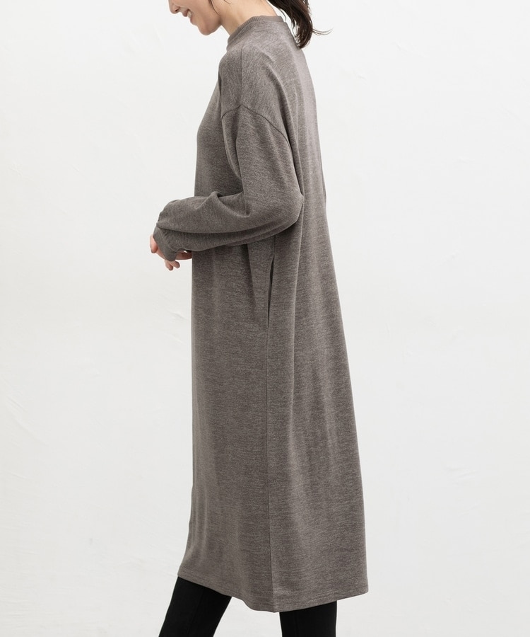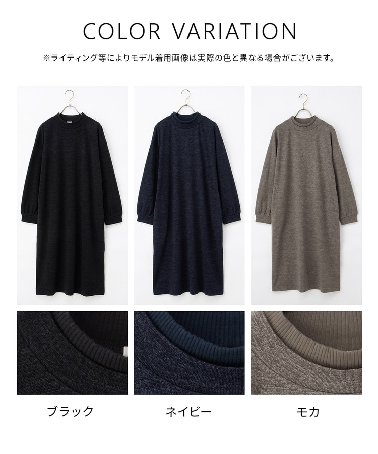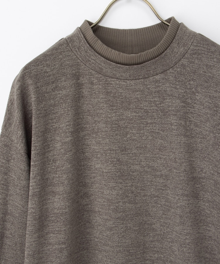 レイヤード風のハイネックがさりげなくお洒落なシンプルデザイン。