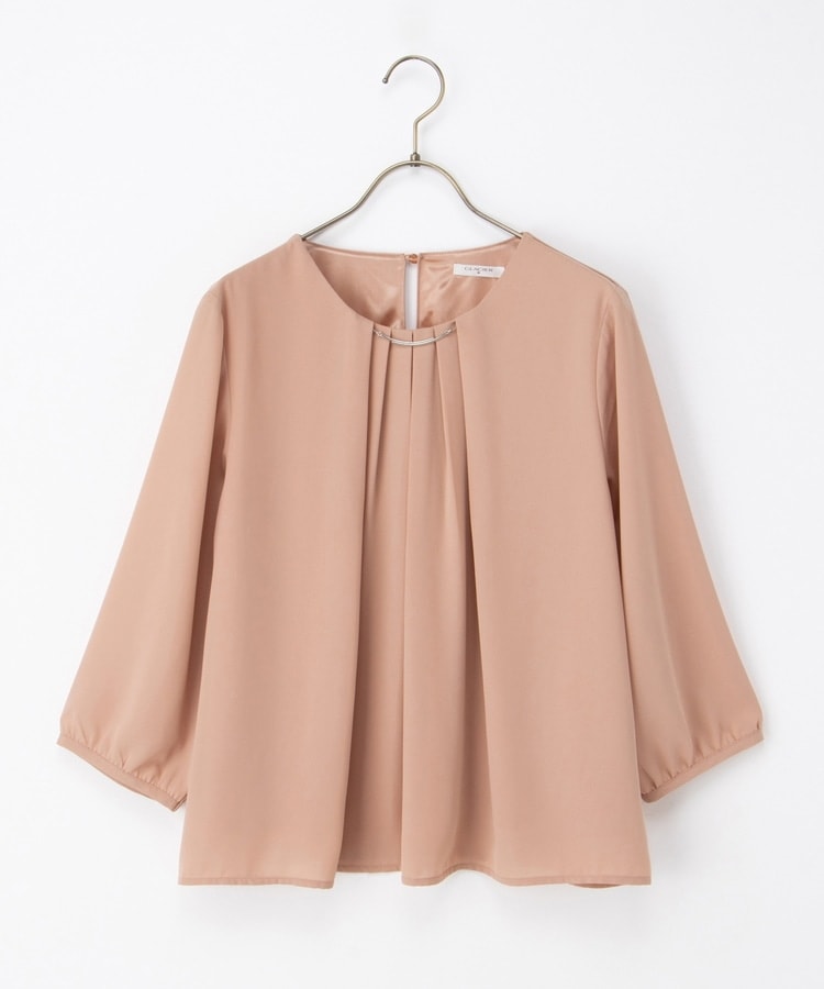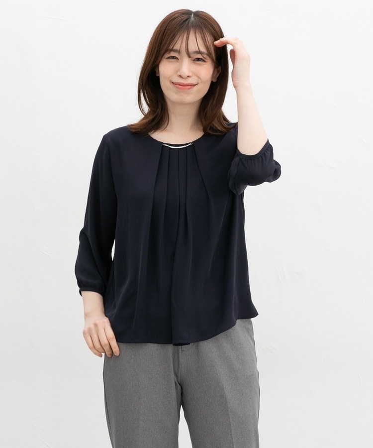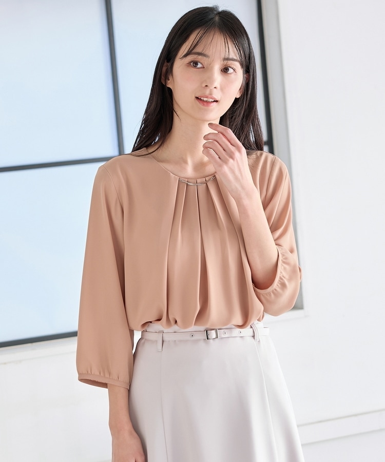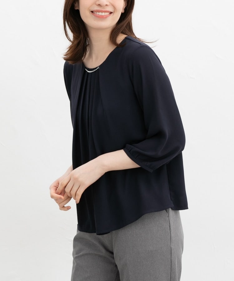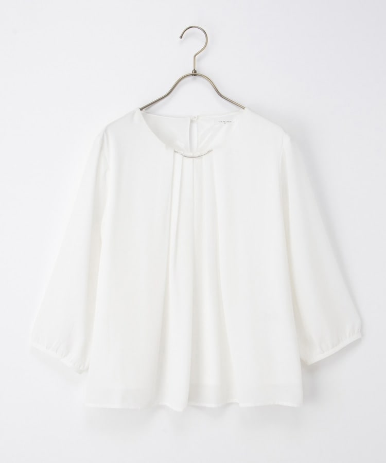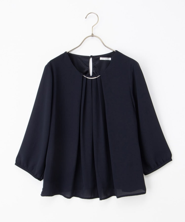 アクセ付7分袖ブラウス