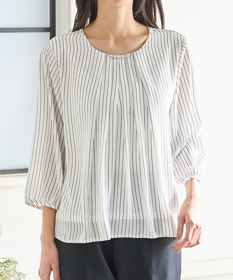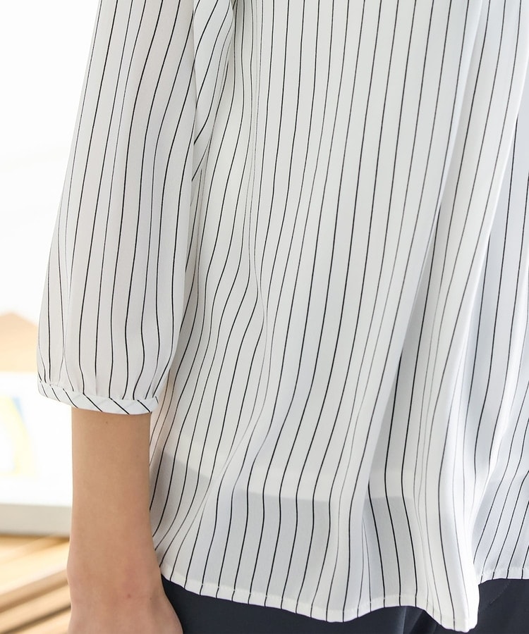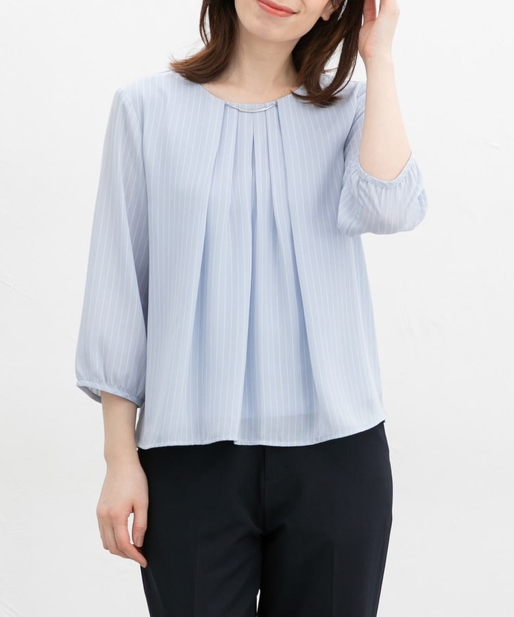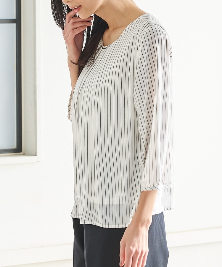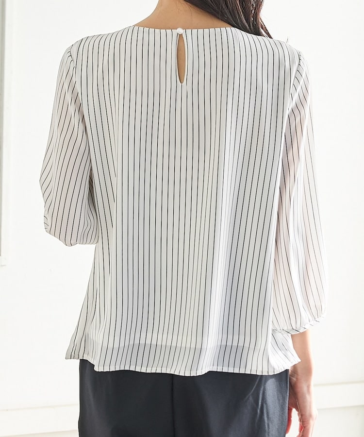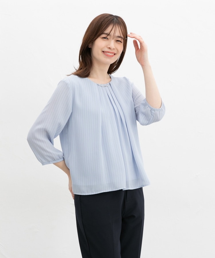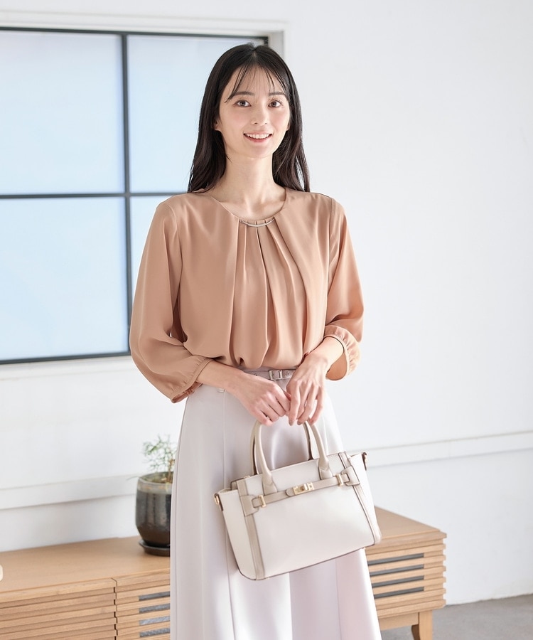 アクセ付7分袖ブラウス